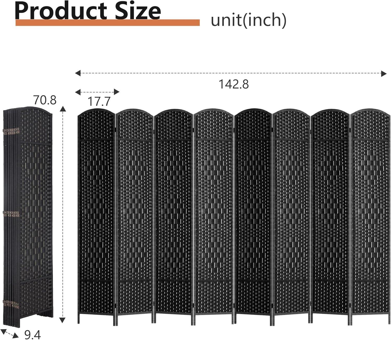 Products Size:The room divider’s fully expanded size is 70.8 * 70.8inches, the single piece size is 70.8 * 17.72inches, and the thickness of each screen is 0.79inch. When the room wall divider is completely folded, the thickness is 3.15inches.