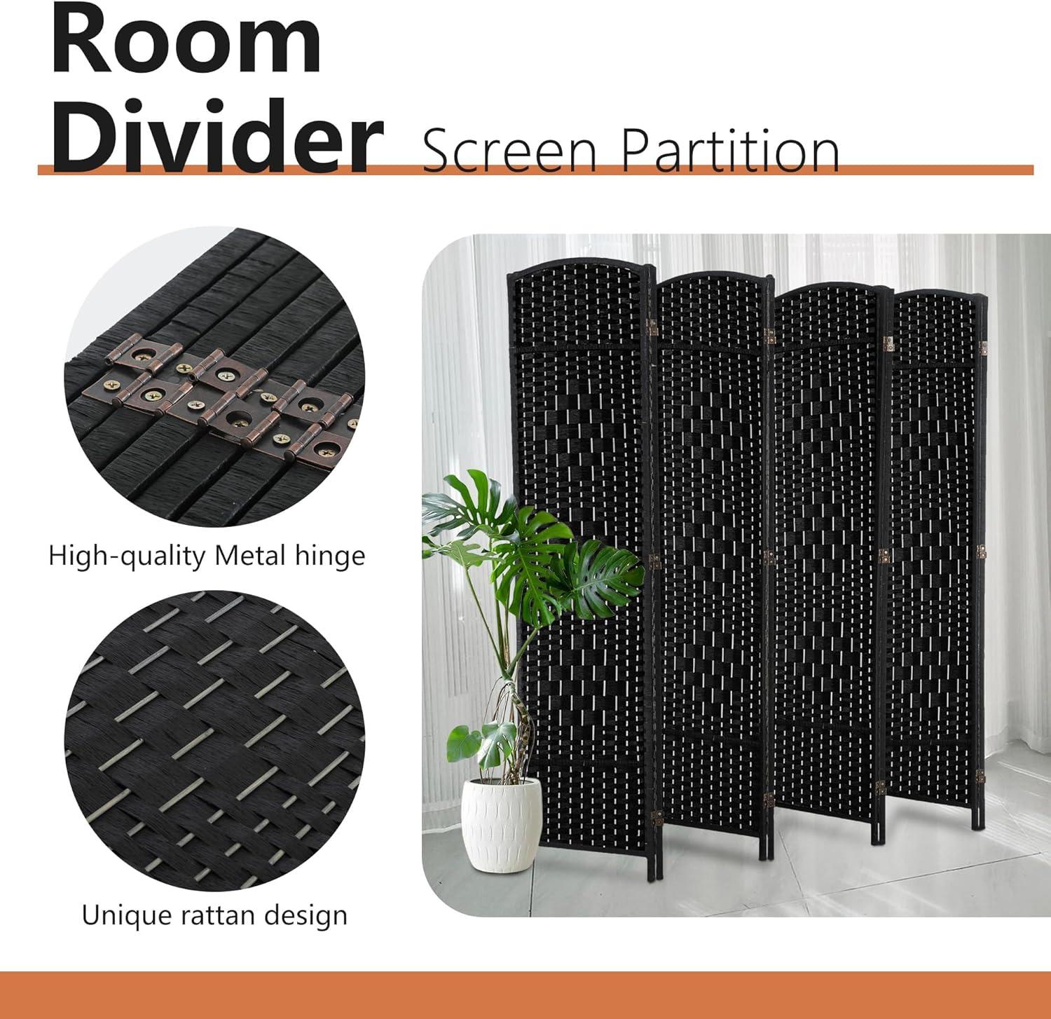 4 Panel Room Divider Folding Privacy Divider 6 Ft Indoor Wall Divider Portable Partition Wood Screen, Black(Coal Black)