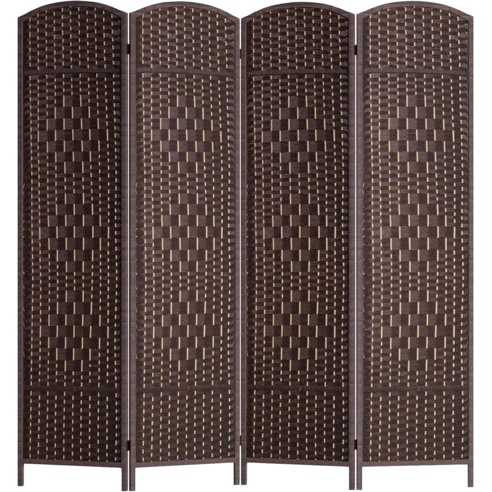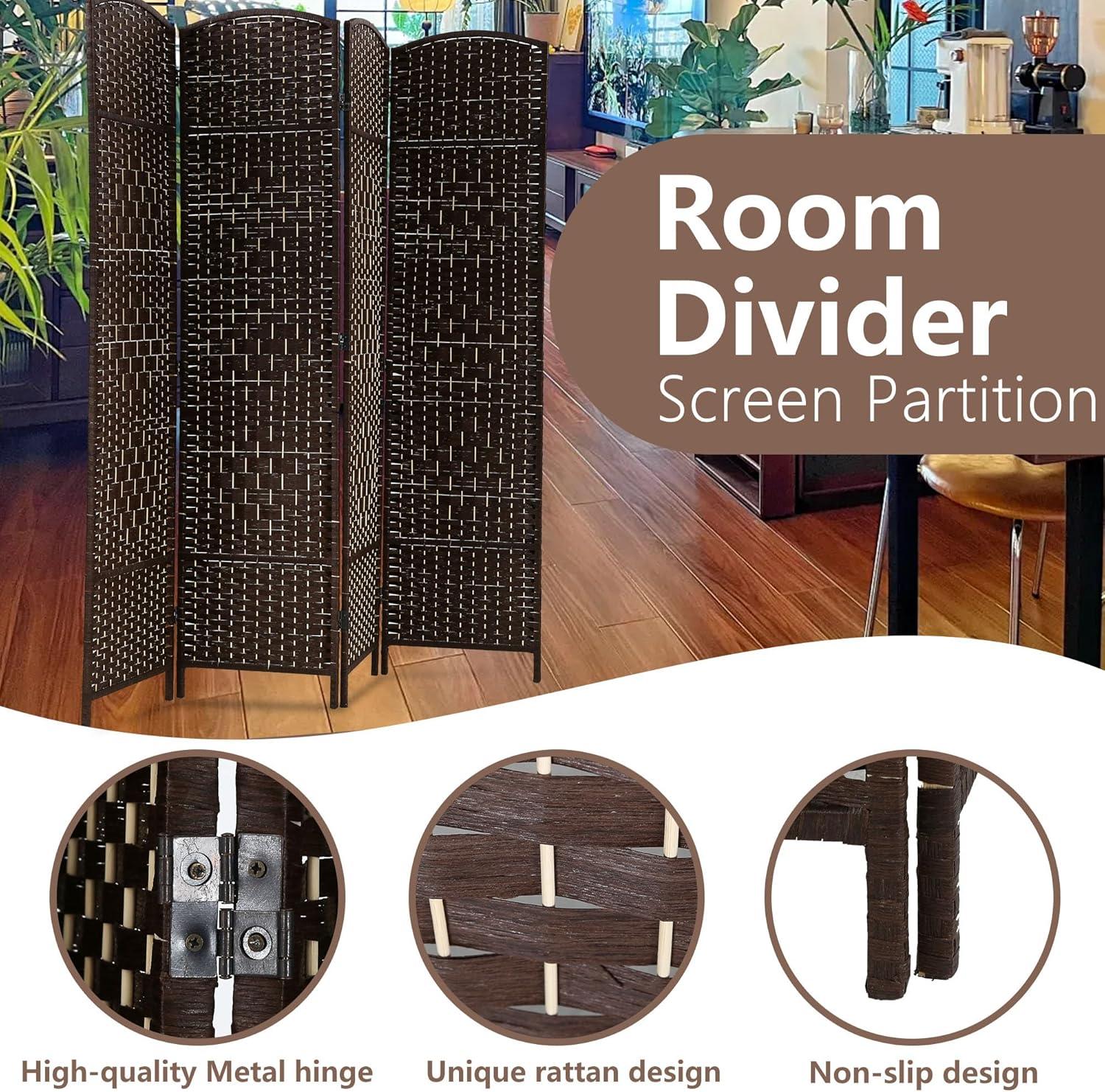 4 Panel Room Divider Folding Privacy Divider 6 Ft Indoor Wall Divider Portable Partition Wood Screen, Black(Dark Brown)