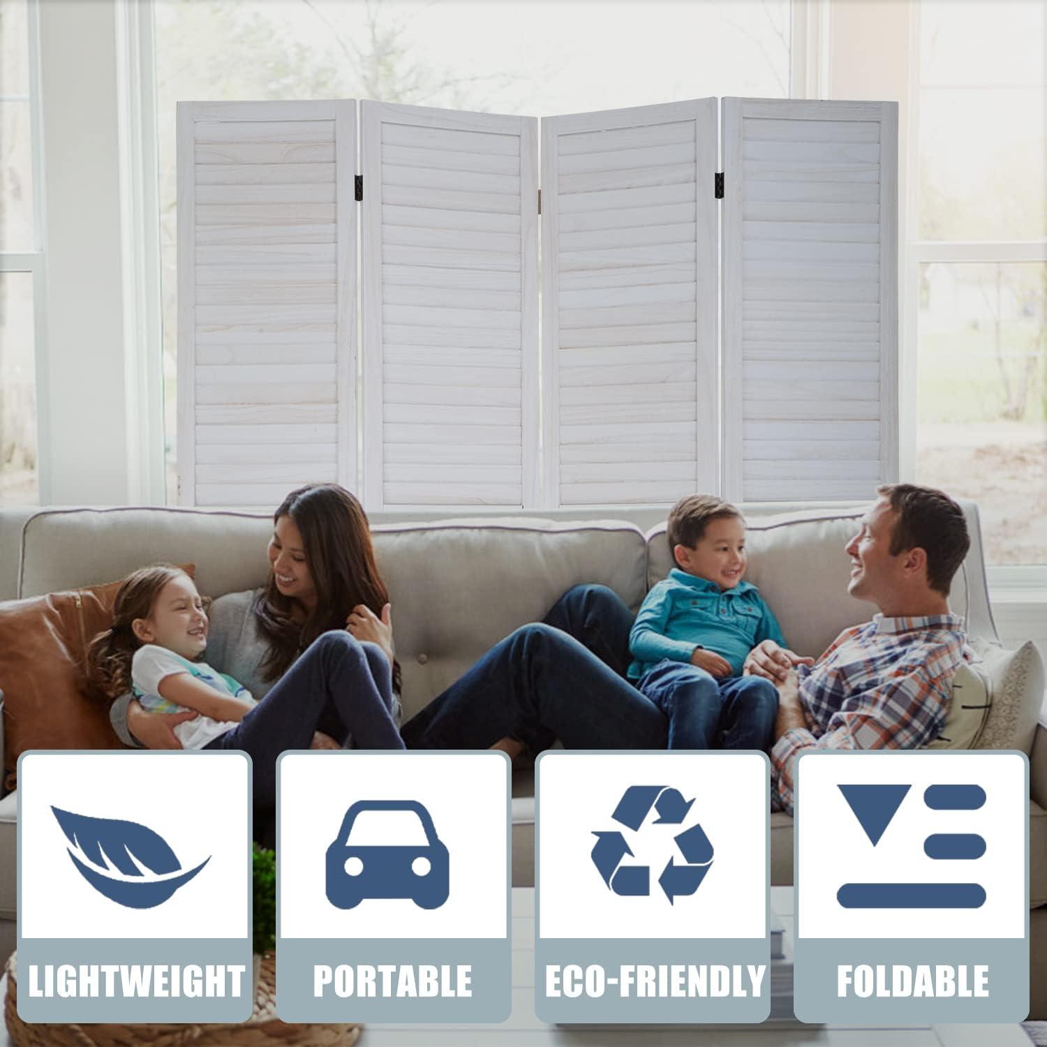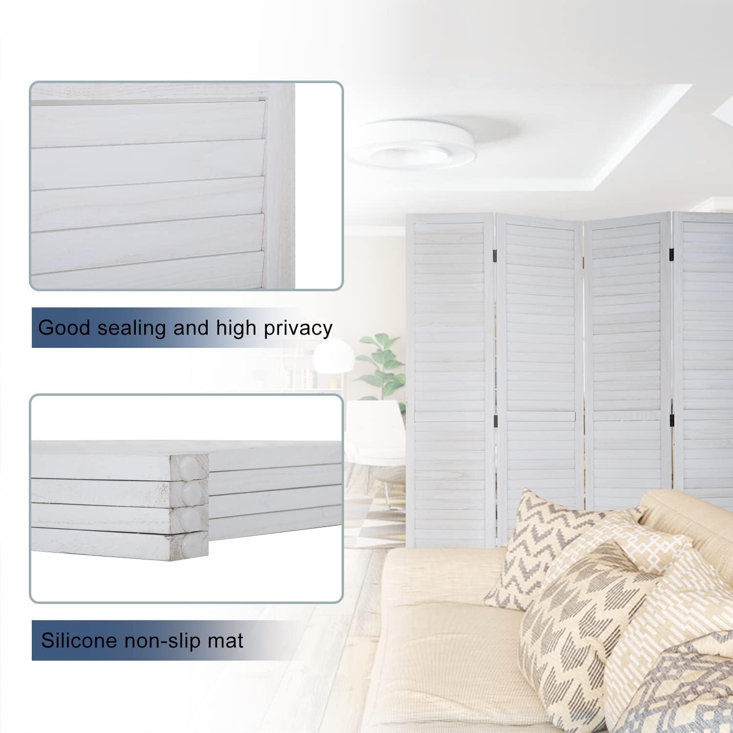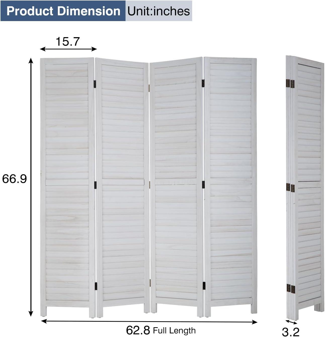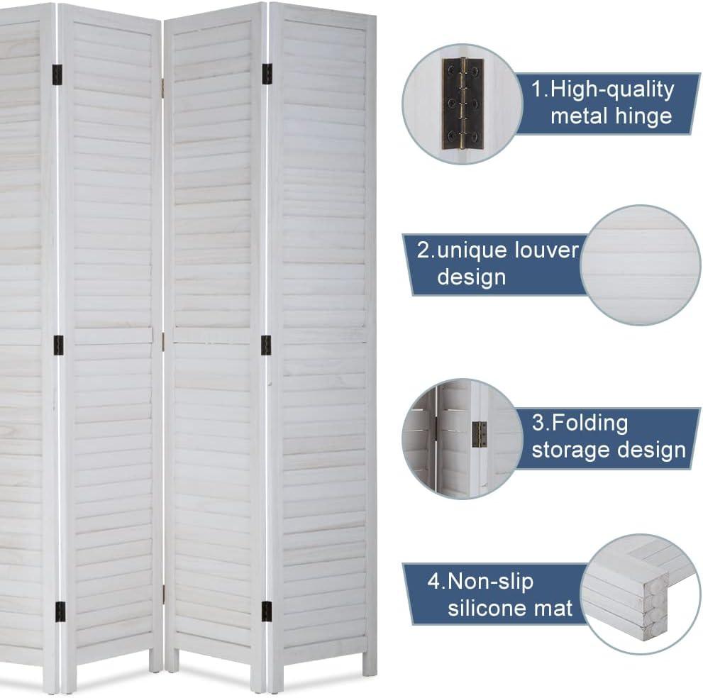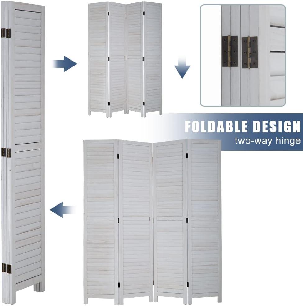 4 Panel Wood Room Divider 5.75 Ft Tall Privacy Wall Divider 68.9" x 15.75" Each Panel Folding Wood Screen for Home Office Bedroom Restaurant (Brown)(White)