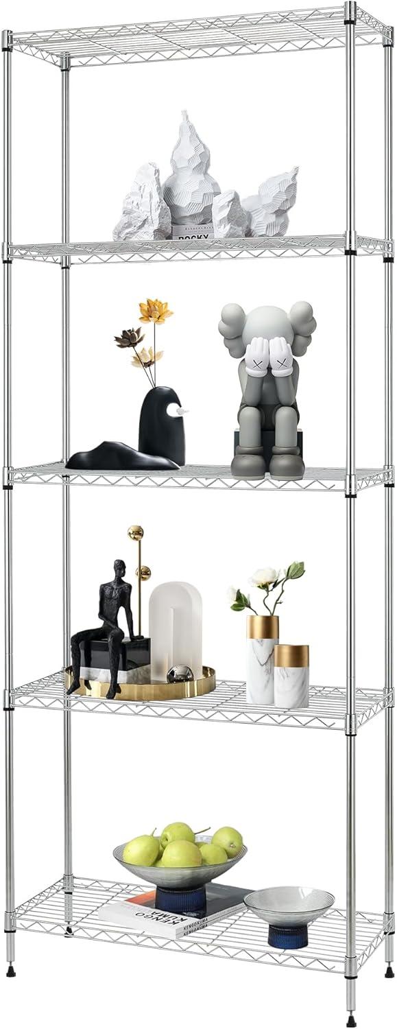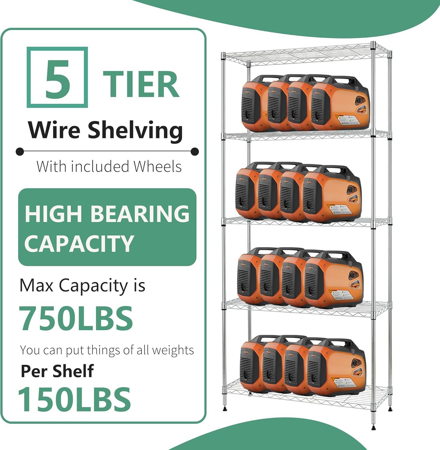 ✔【Large Space】The 5-tier design (with a big size of 36 x 14 x 72 inch) can easily help you to make a neat kitchen. The wire shelf between each layer is adjustable, enabling you to store items of various sizes with ease. This shelving unit provides ample space to organize tools, household items, or office supplies.