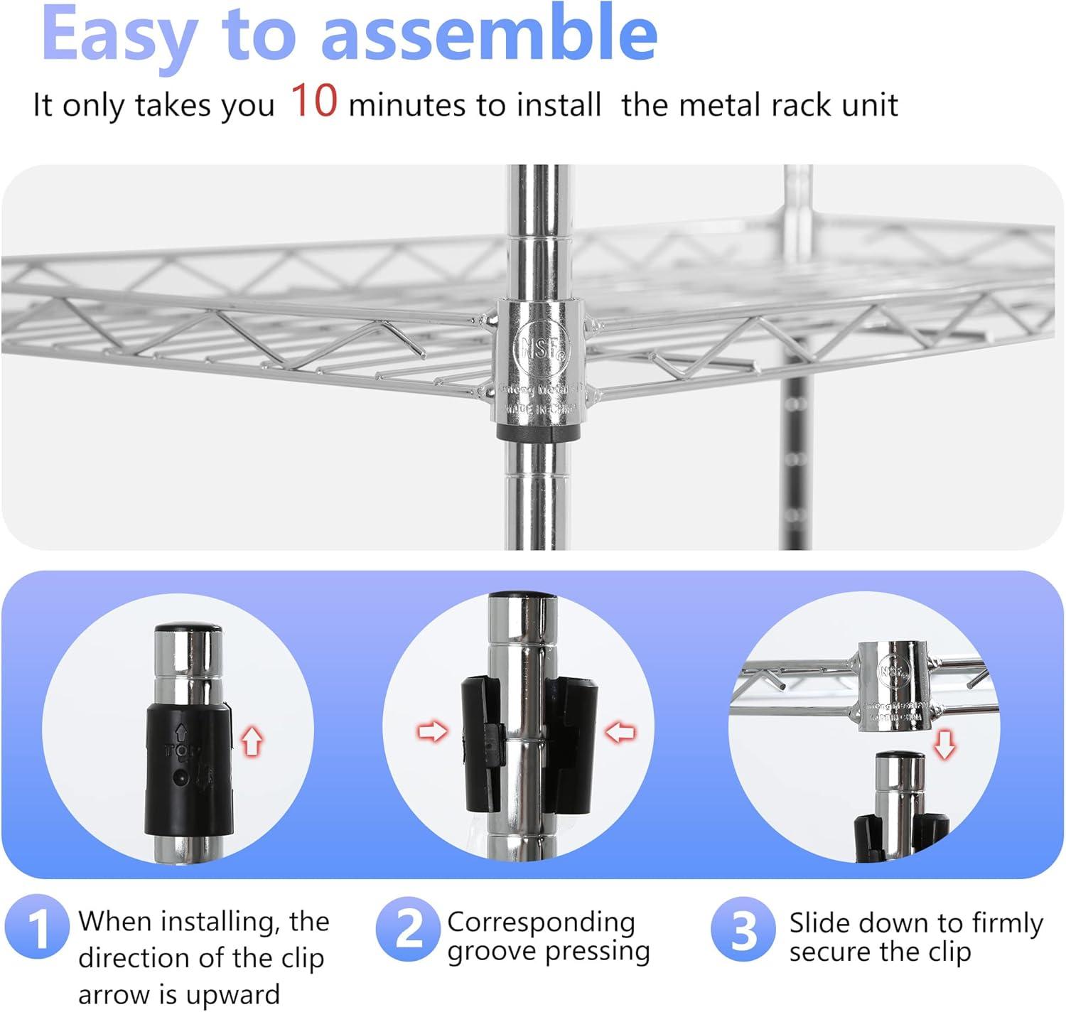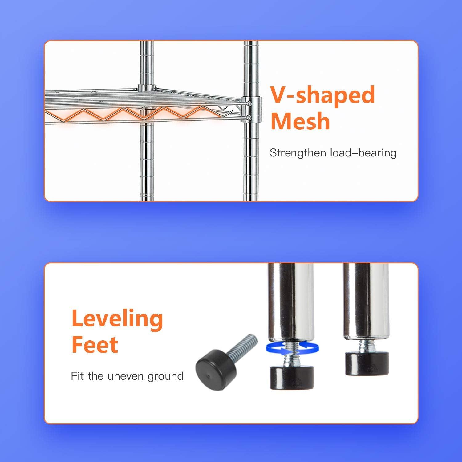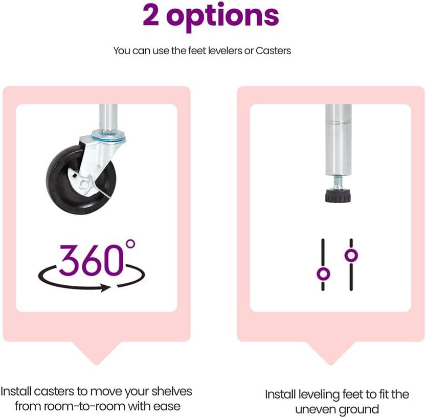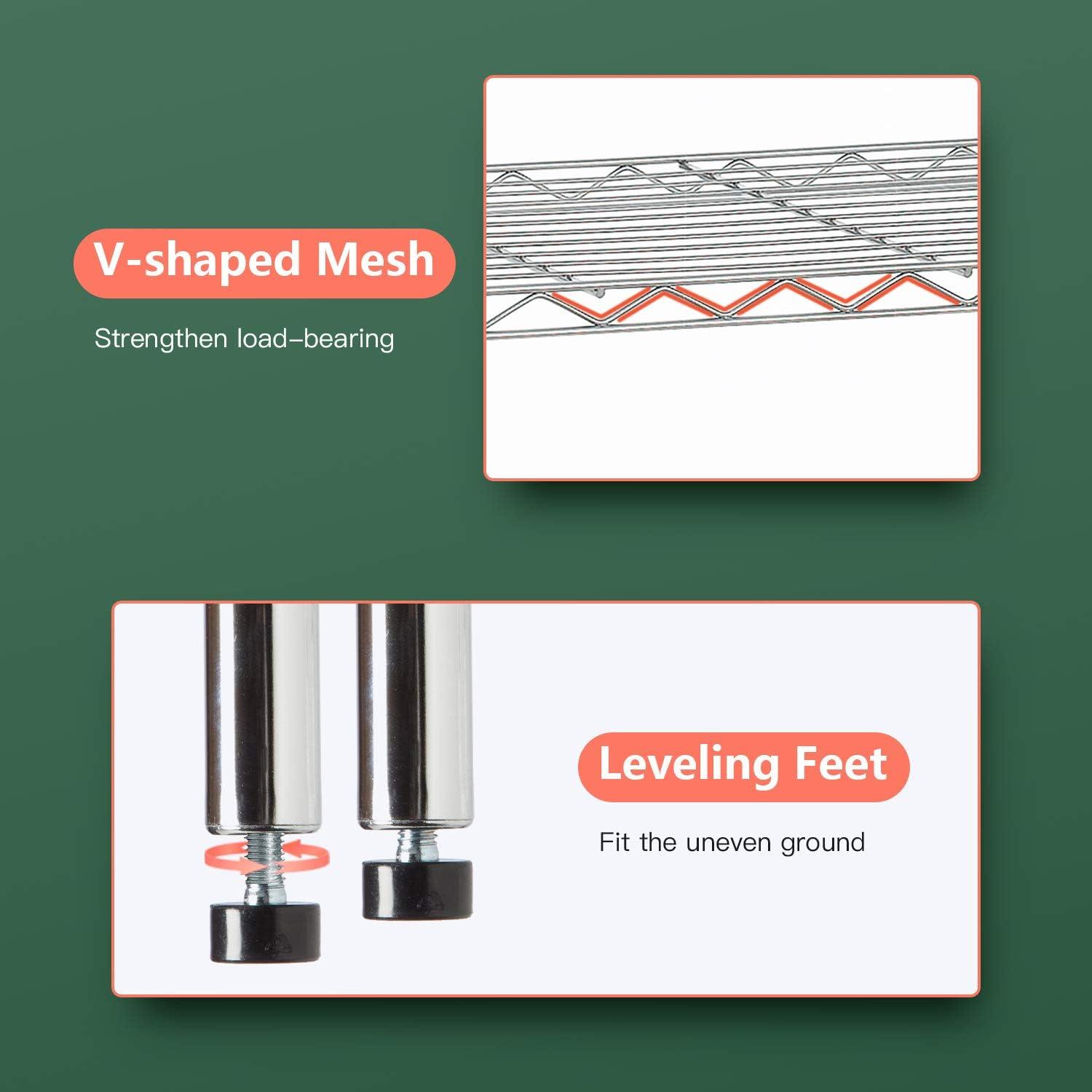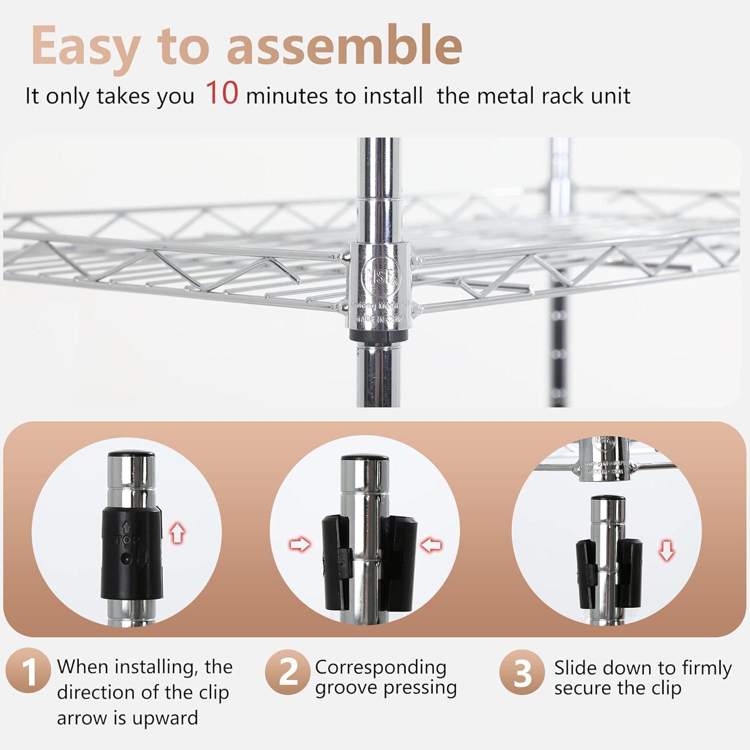 ✔【EASY TO ASSEMBLE】: The storage shelves is easy to assemble. This wire shelf structure is very simple, No tools required to assemble it. The wire shelving unit is simple to assemble, You only need to spend 15min to install.