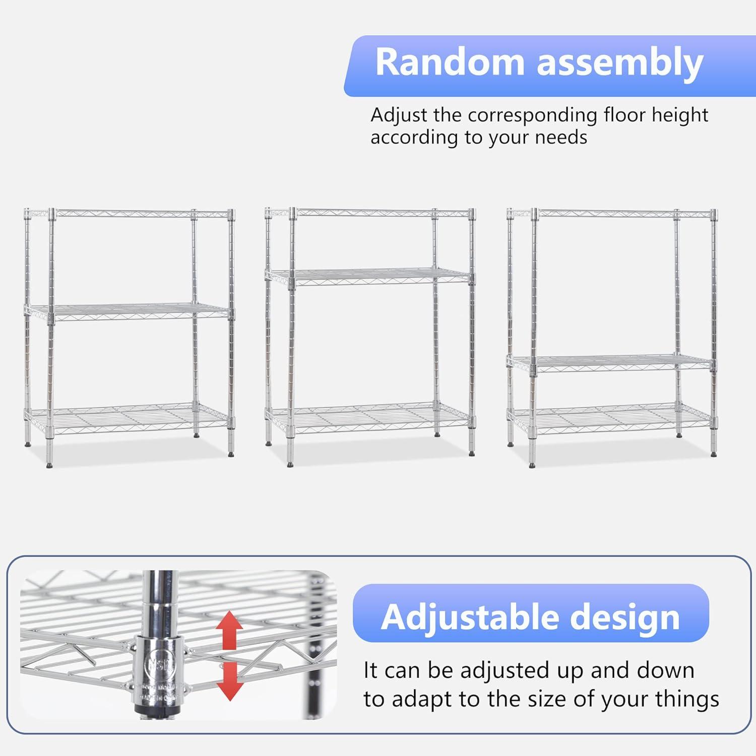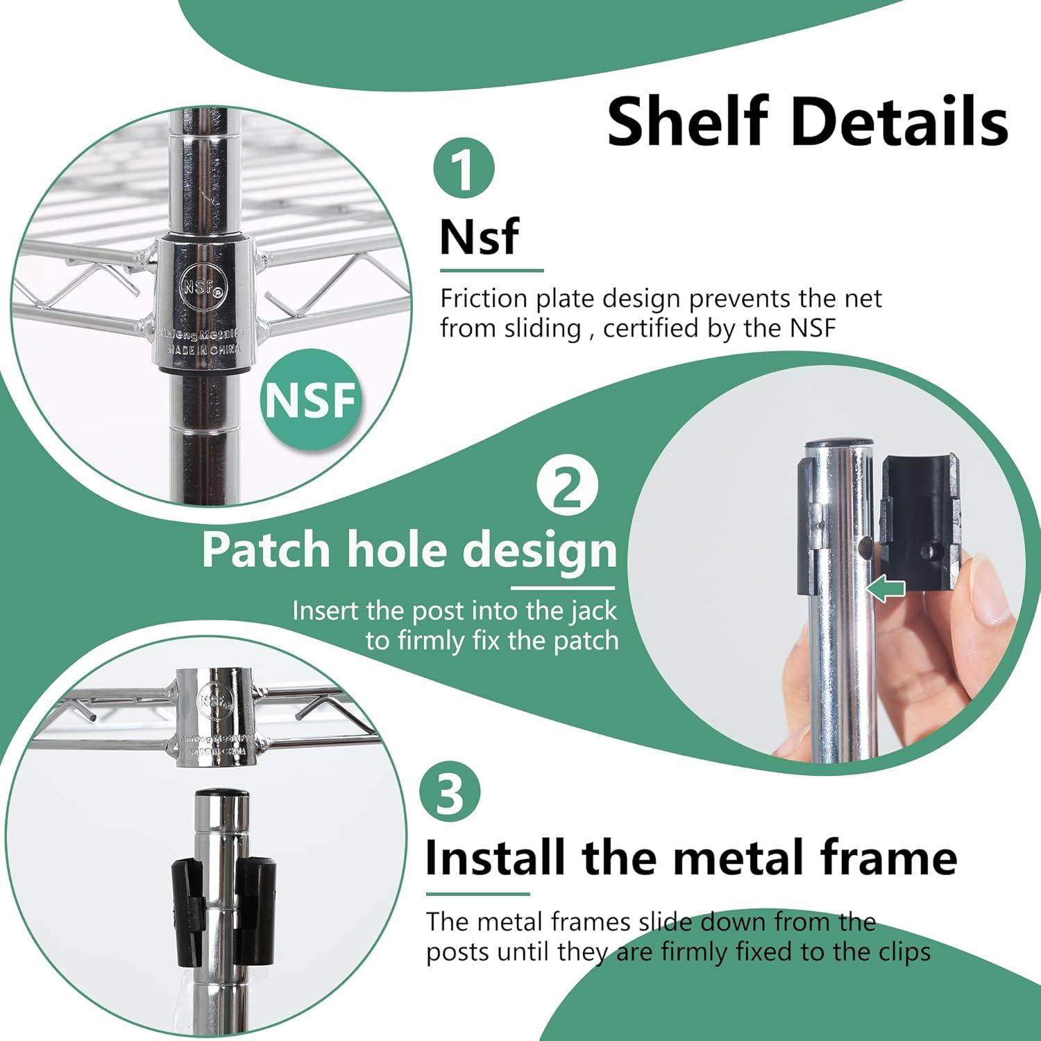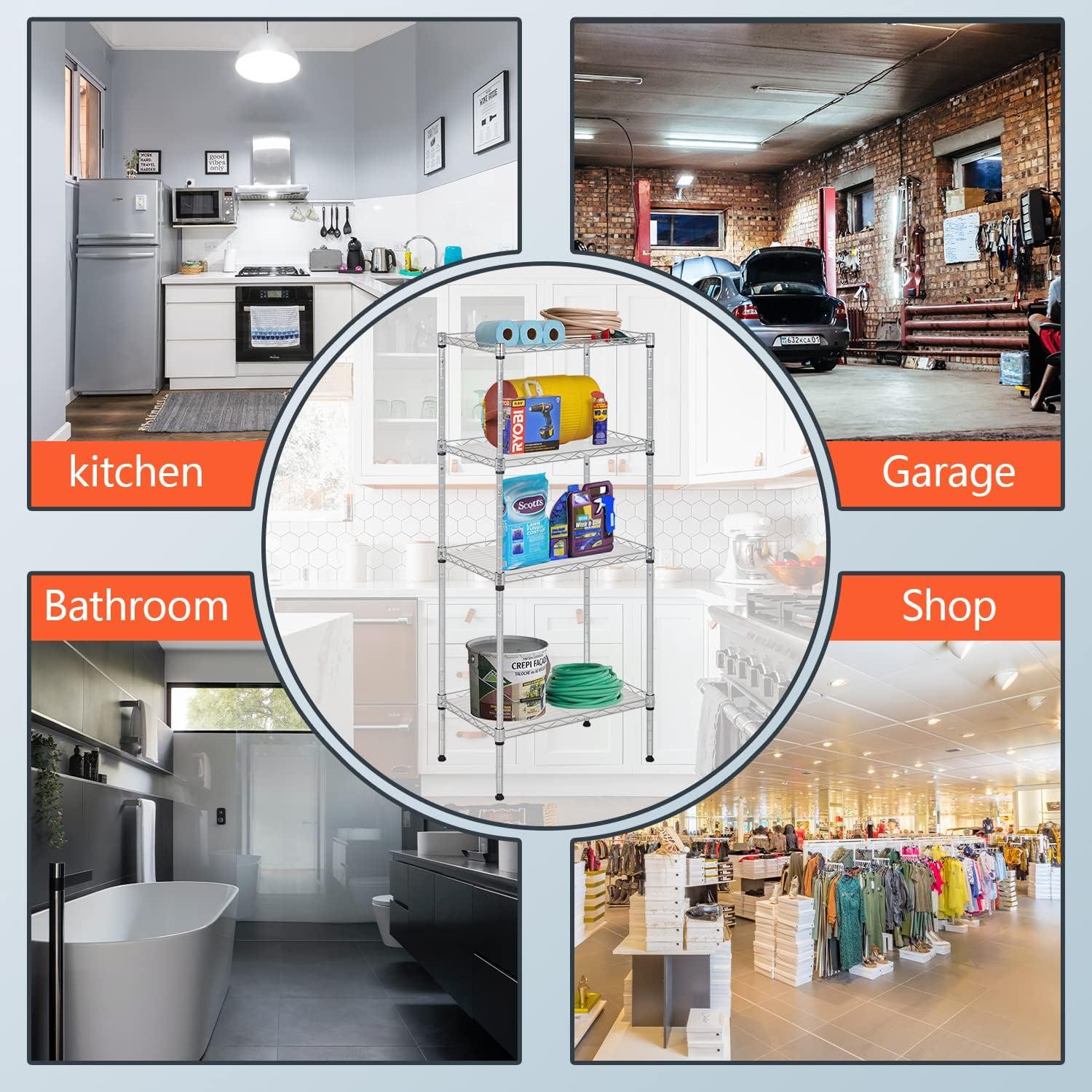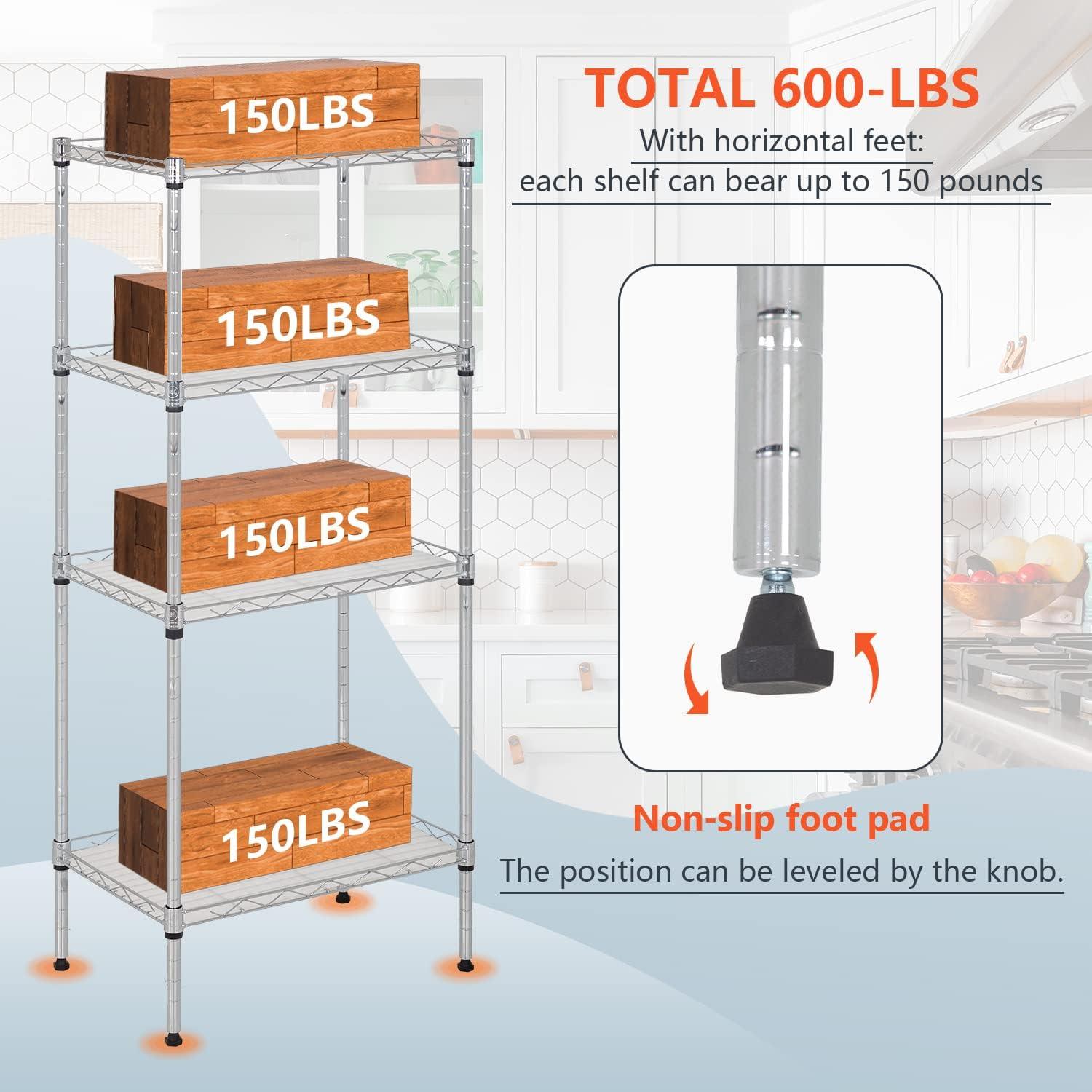 ✔【EASY TO ASSEMBLE】: The storage shelves is easy to assemble. This wire shelf structure is very simple, No tools required to assemble it. The wire shelving unit is simple to assemble, You only need to spend 15min to install.