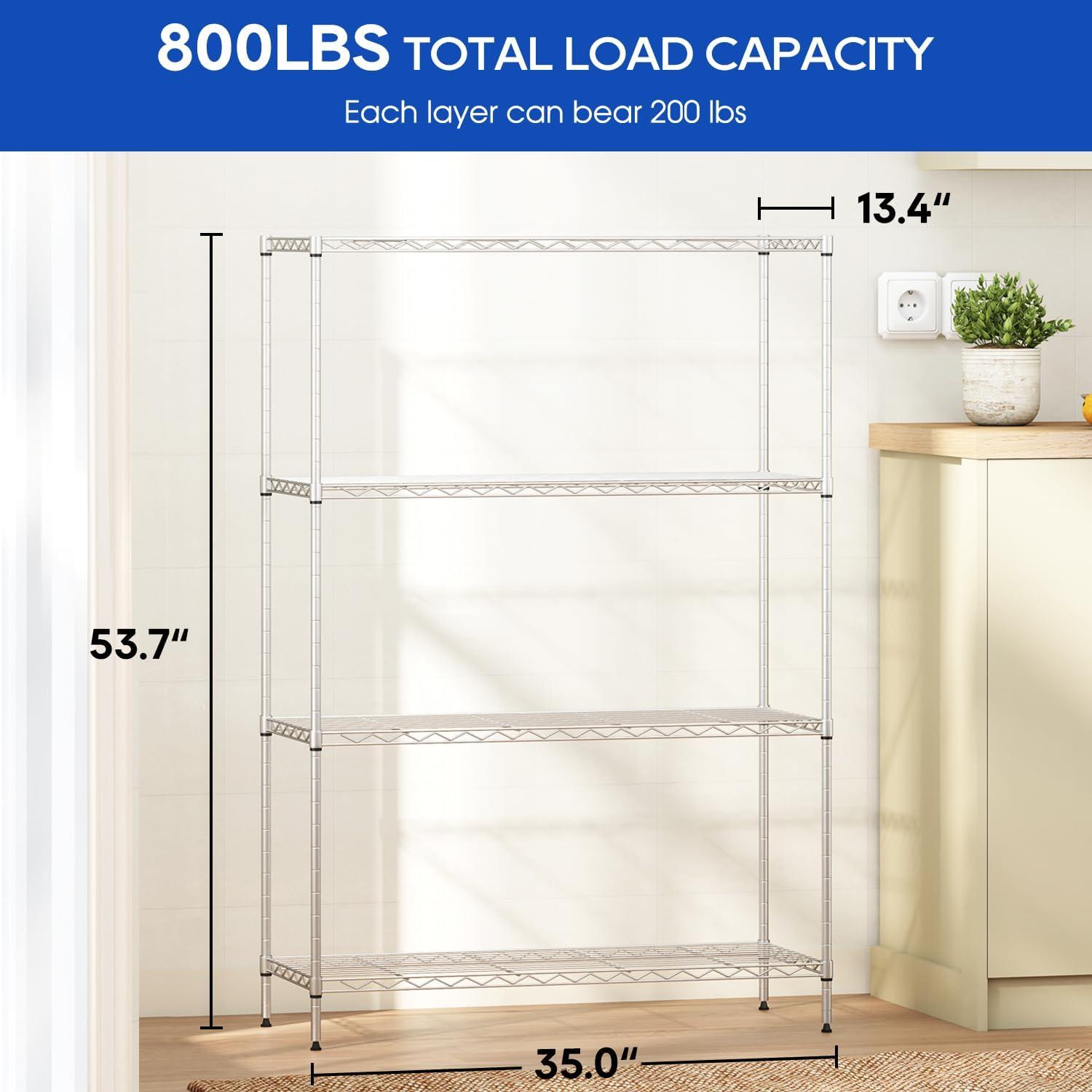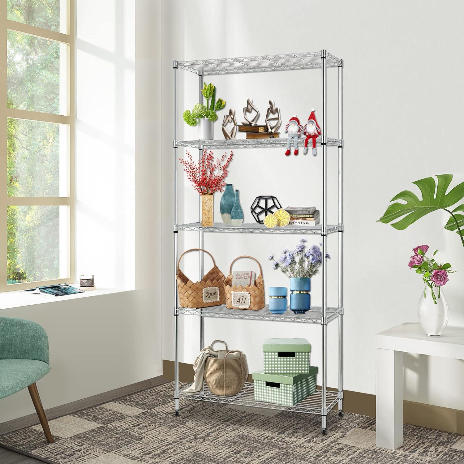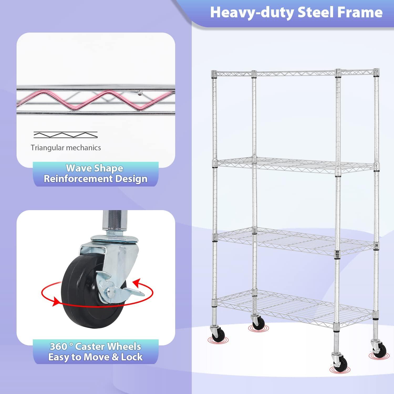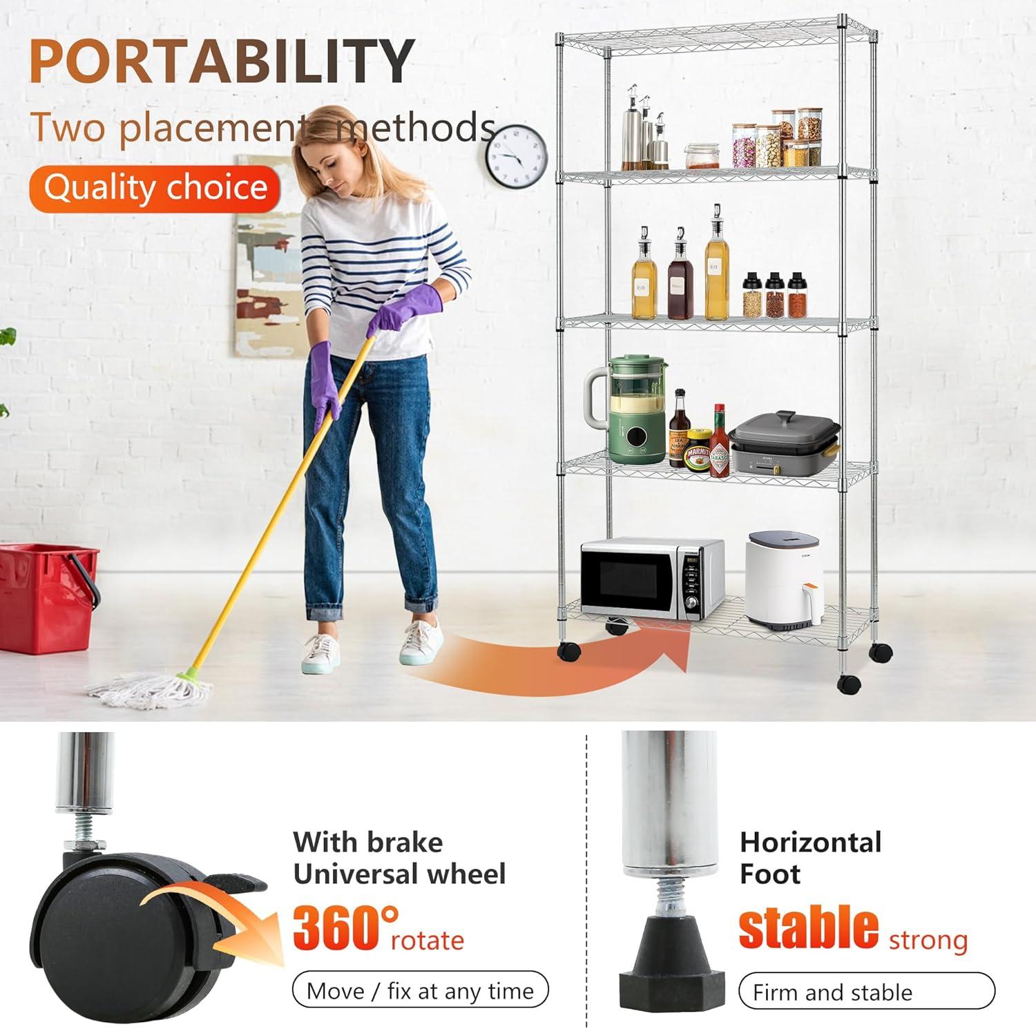 ✔【EASY TO ASSEMBLE】: The storage shelves is easy to assemble. This wire shelf structure is very simple, No tools required to assemble it. The wire shelving unit is simple to assemble, You only need to spend 15min to install.