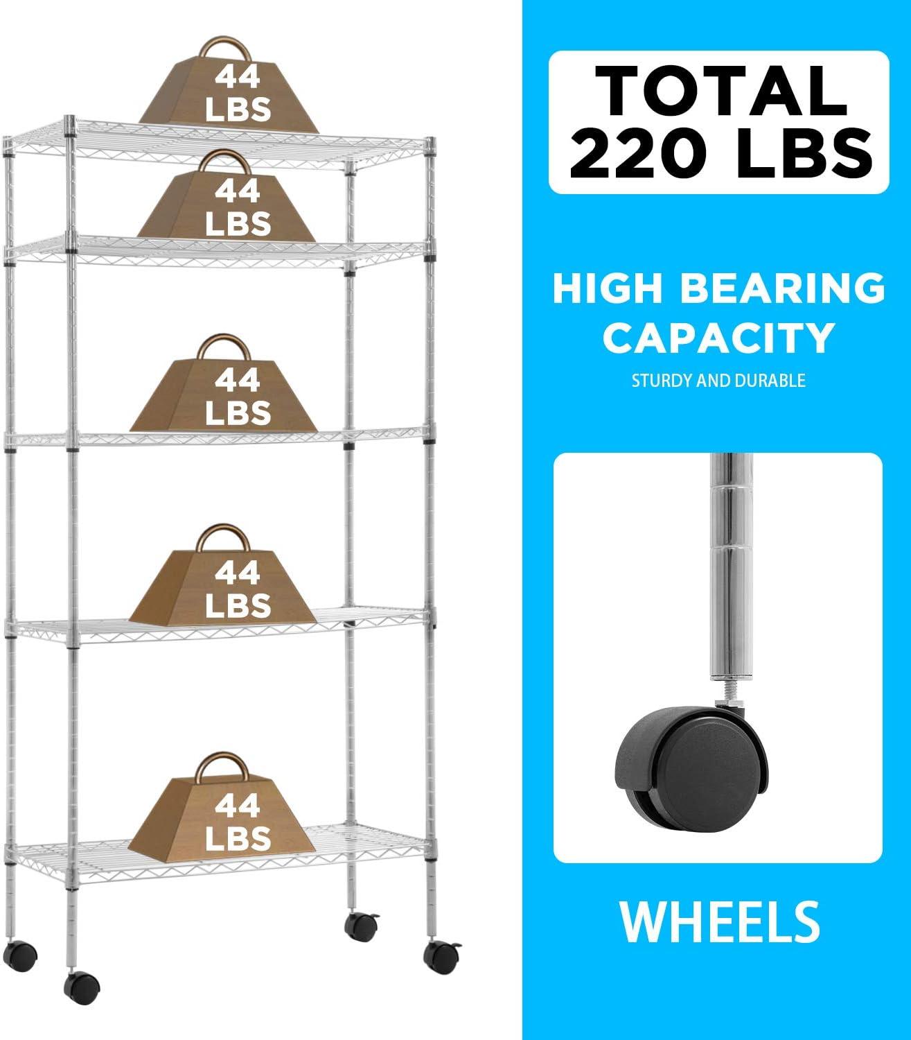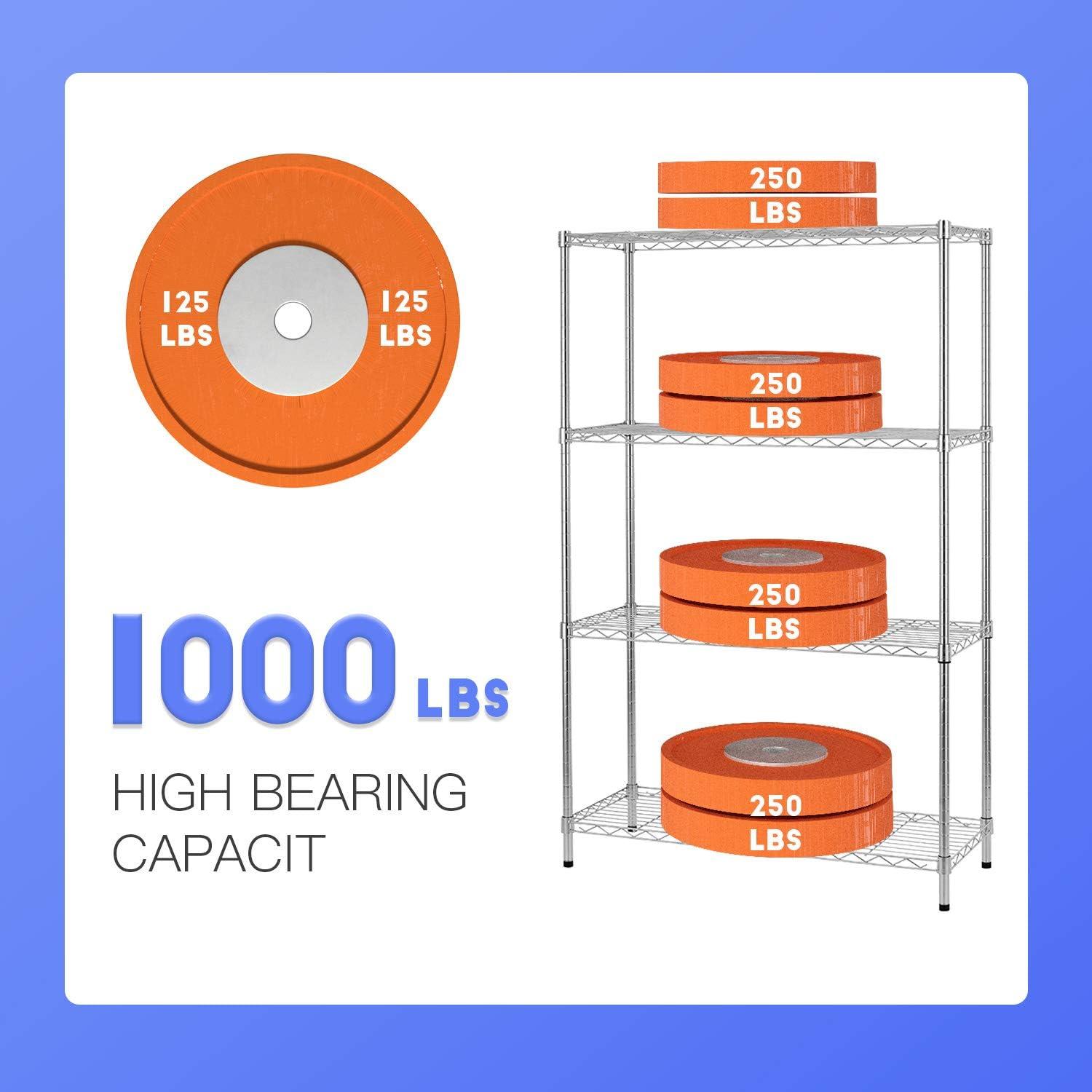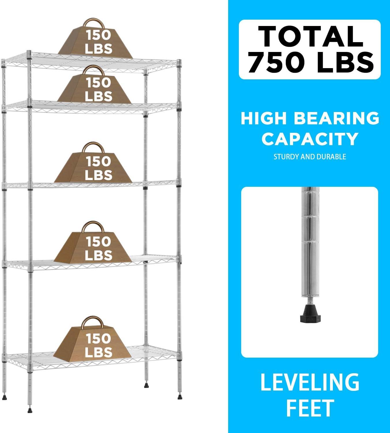 Capacity: 250 lbs (Per layer with feet levelers) Total 1250lbs;