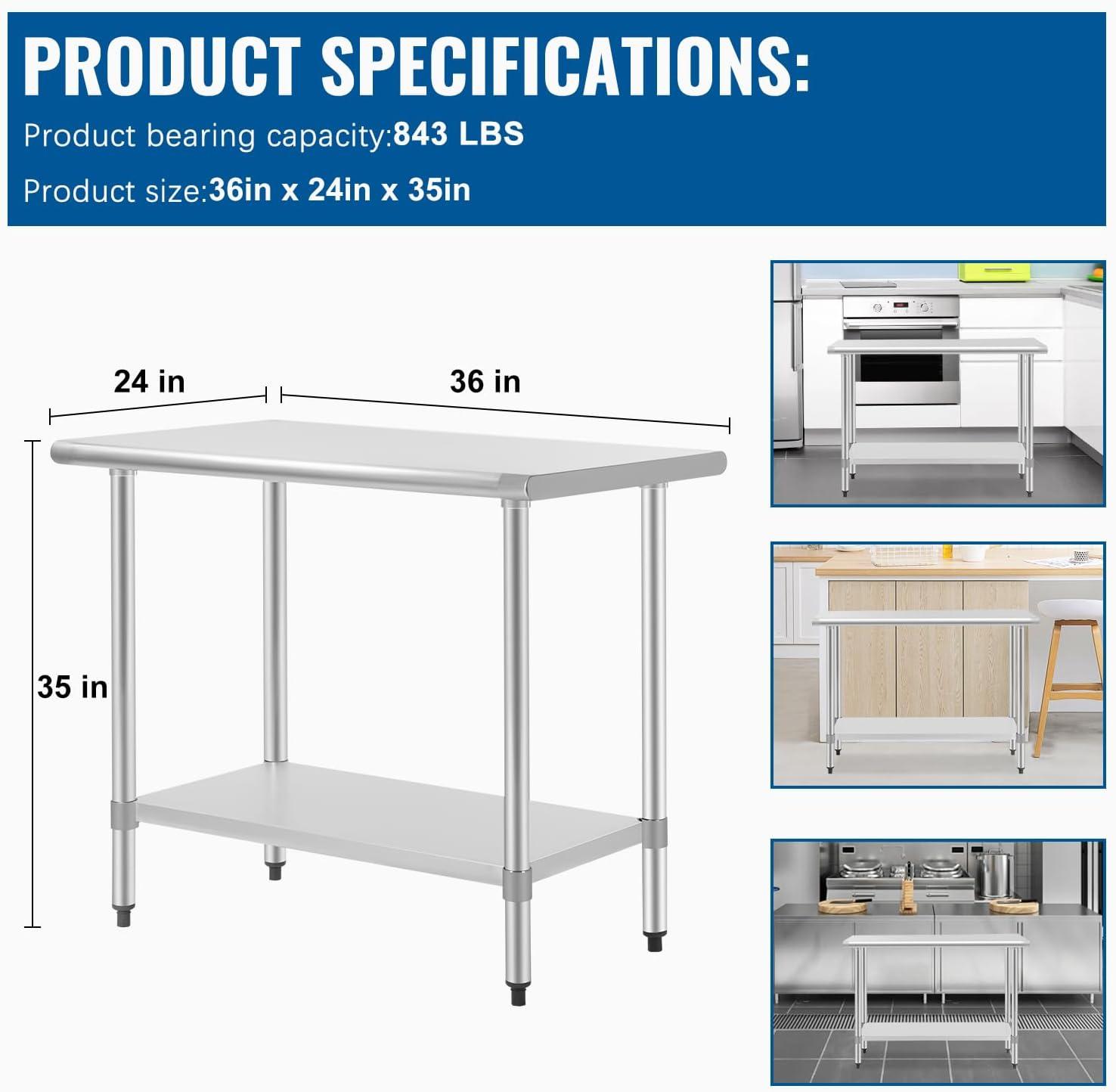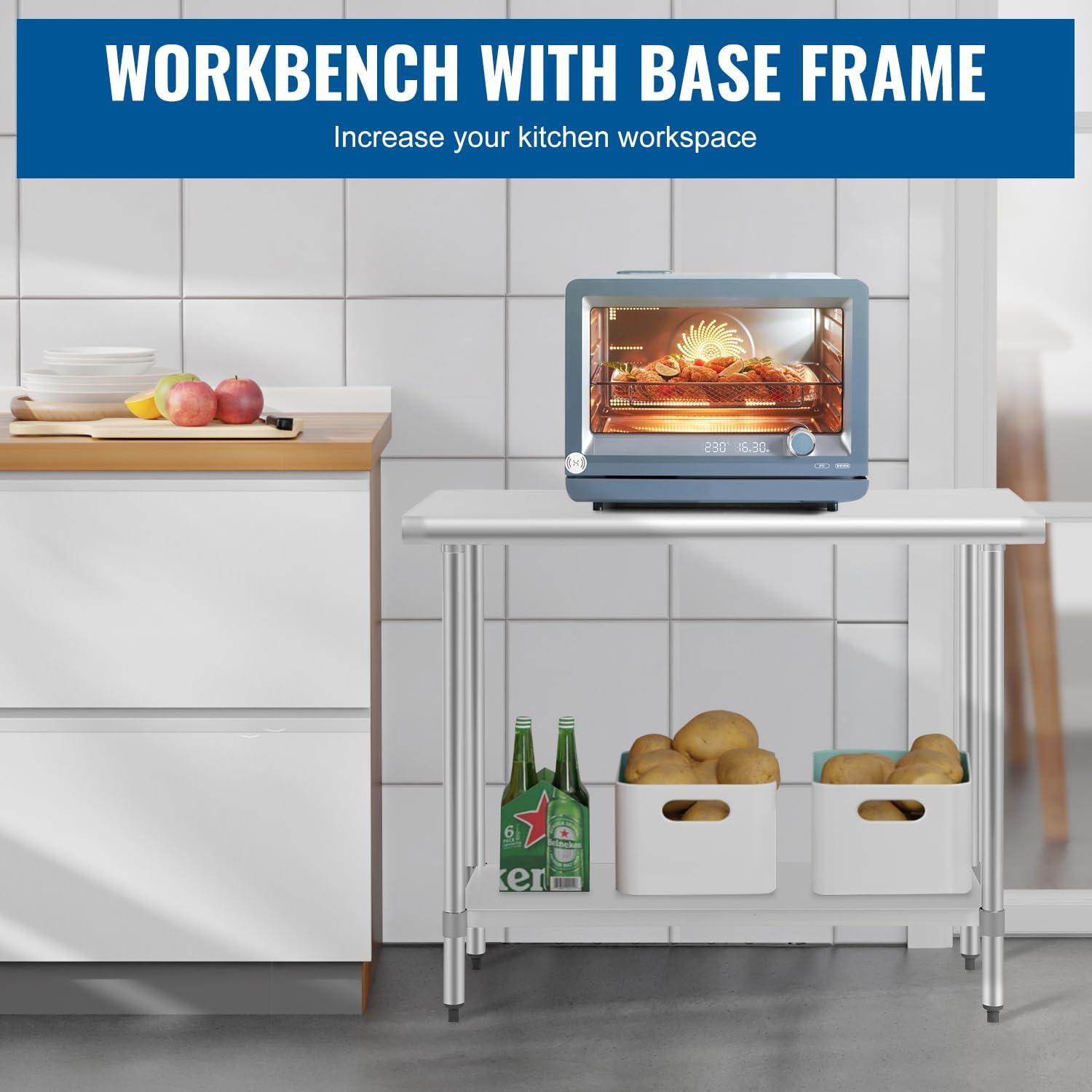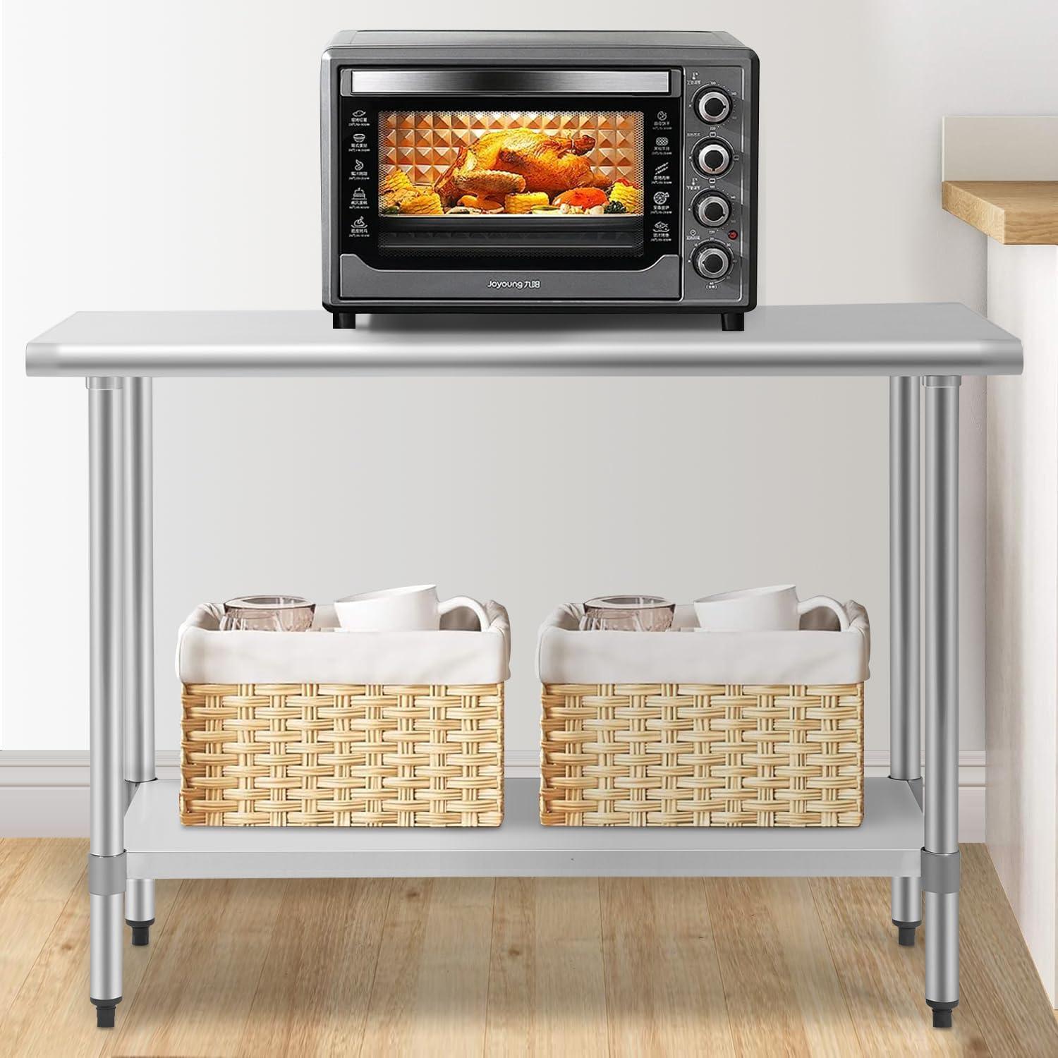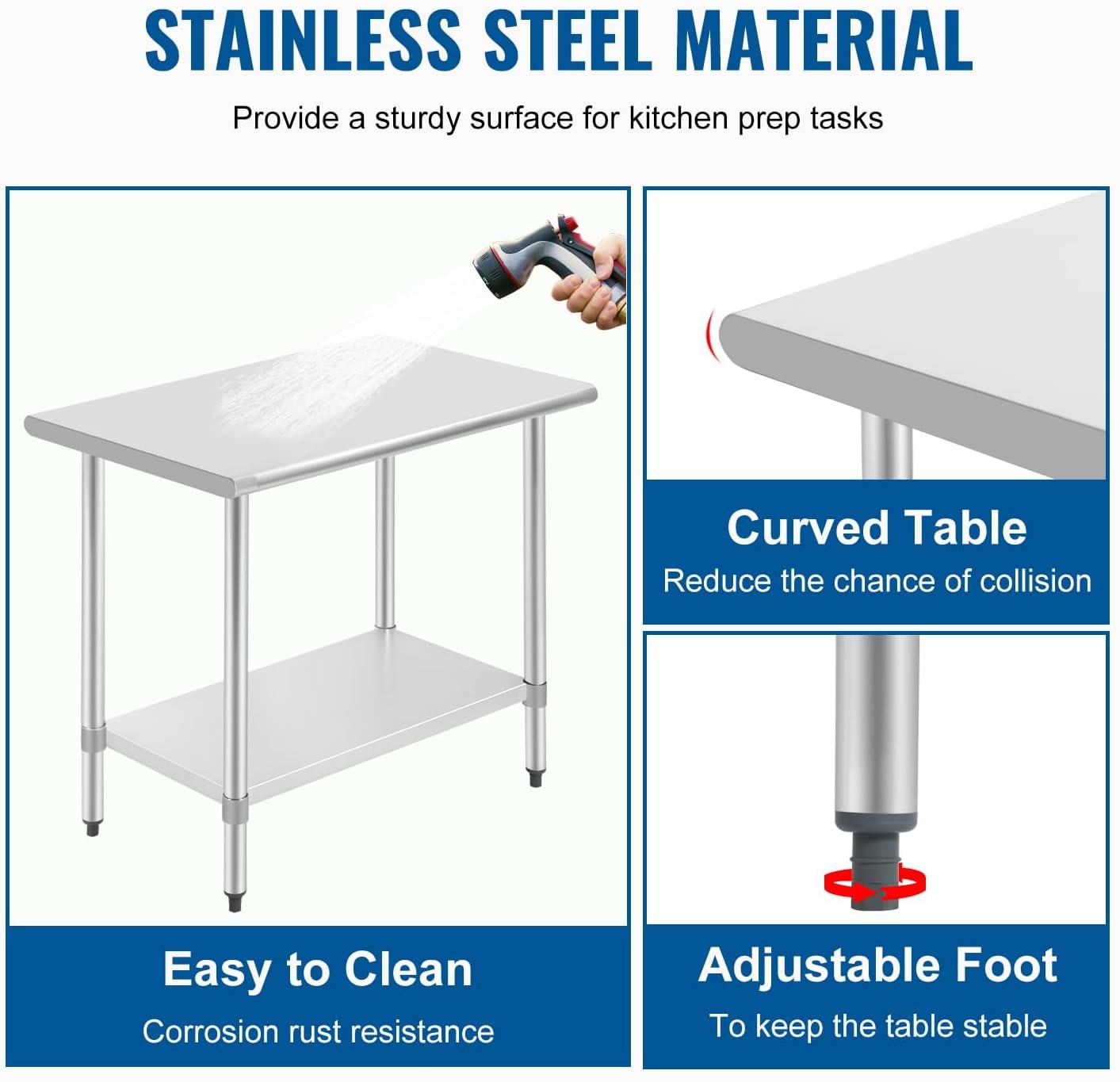 ♠『Anti-rust&Strong』 Our kitchen work table is made of high quality stainless steel, anti-rust, and not easy to wear and tear, you can directly cut vegetables and other food on the stainless steel work table. But we still want to remind you that after use, we need to clean up the metal work table to avoid unnecessary damage.Please note that our base plate is galvanized.kitchen work table stainless steel work table metal work table.