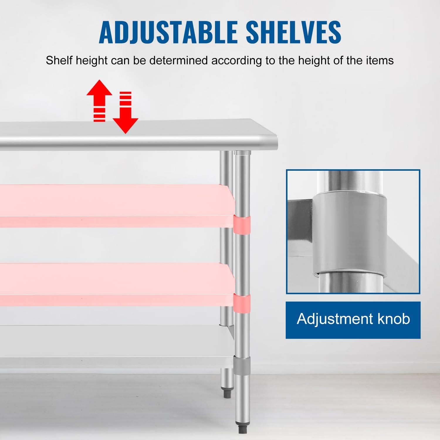 ♠『Multipurpose Use』 If you think that your kitchen work table is only suitable for kitchen, you are wrong. It is a good choice to put it in garage as a repair bench and in children's room as his experimental bench. Of course, before you choose to buy the metal work table, you need to confirm whether the size is suitable for your place of use. If there are any problems with the stainless steel work table, please contact us immediately.kitchen work table metal work table stainless steel work table