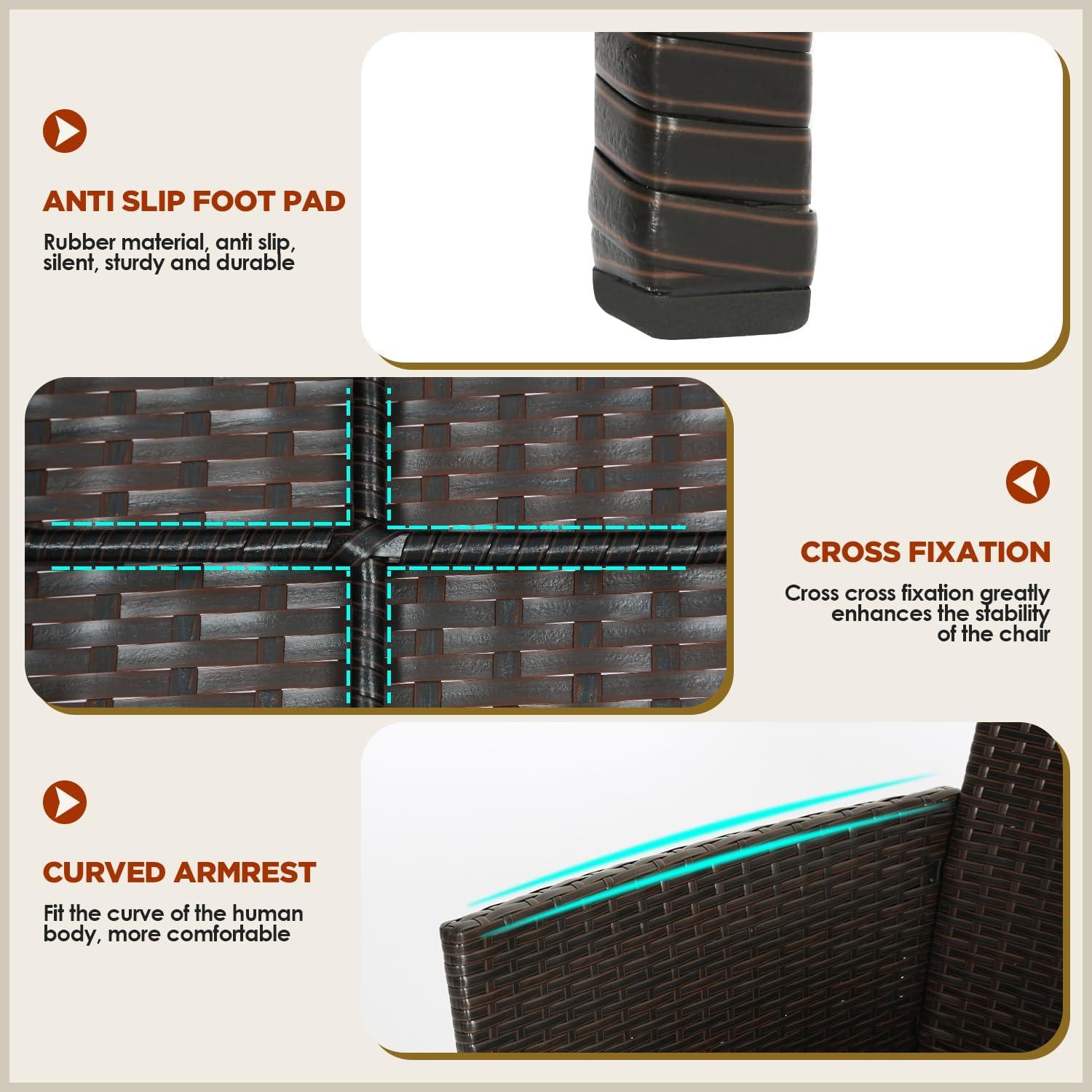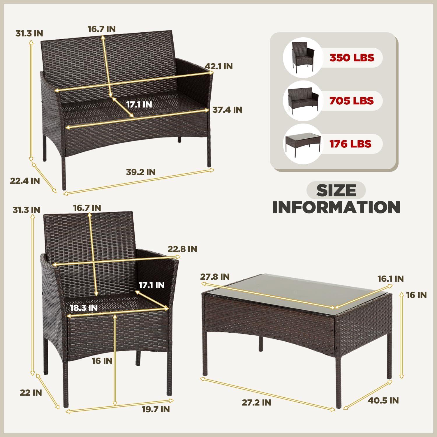 FDW | 4-Piece Patio Furniture Set | Gray & Khakhi | Outdoor Wicker Furniture with Coffee Table | Modern Rattan Chairs Conversation Set | Outdoor Seating | Weather-Resistant | for Porch, Garden, Lawn(Brown and Red)