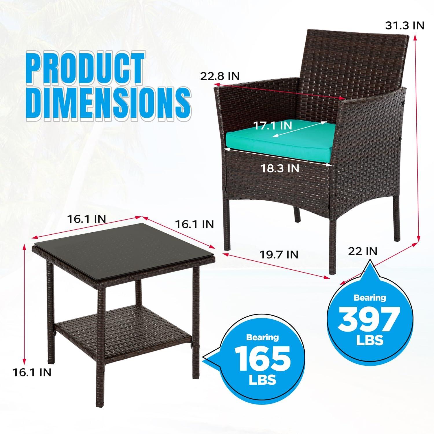 COMFORTABLE & STYLISH DESIGN: This patio set has thick, high-density rebound sponge cushions for cozy seating. Its simple, stylish look suits patios, balconies, poolside, or gardens.