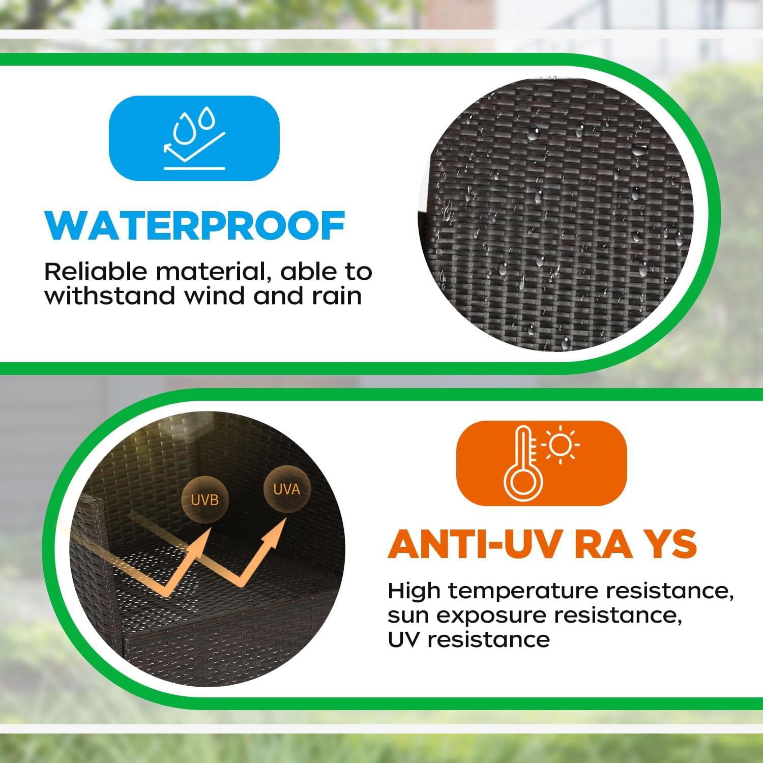 SPACE-SAVING & VERSATILE: This patio conversation set fits small patios, balconies, and gardens. Compact and practical, this design saves space while providing easy storage for outdoor essentials.