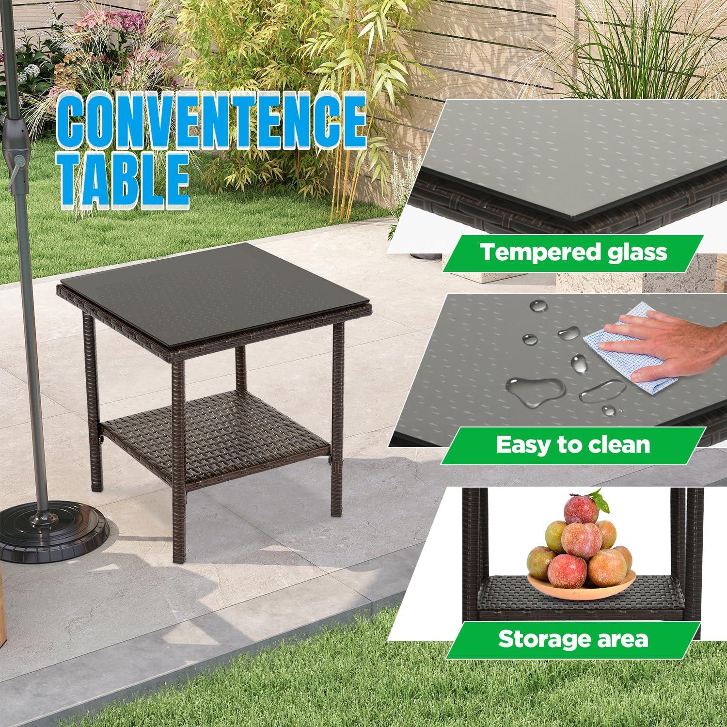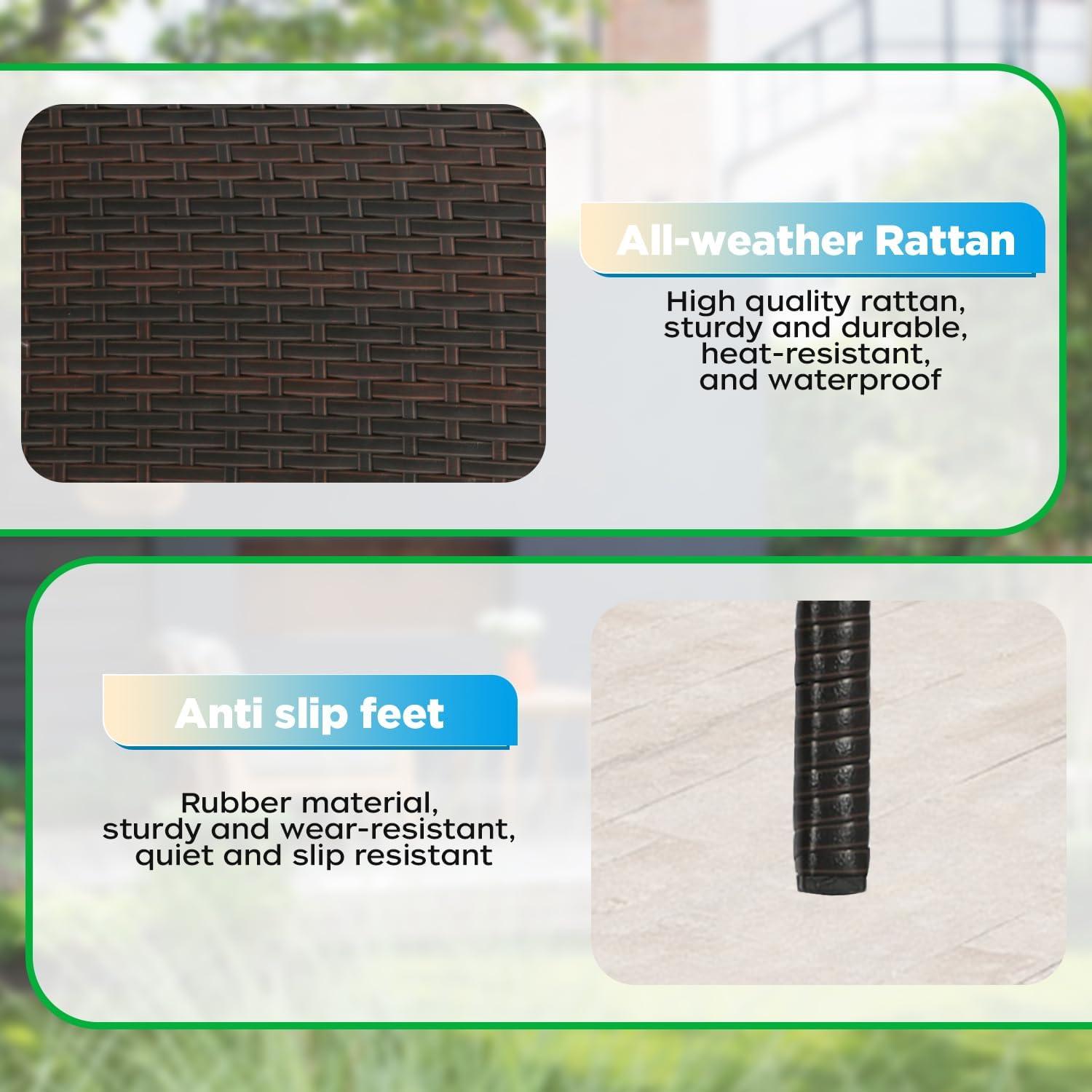 MODERN STYLE: The patio set includes a table made of high-quality tempered glass for drinks, food, or décor. This sleek rattan design brings modern elegance and style to your outdoor furniture space.