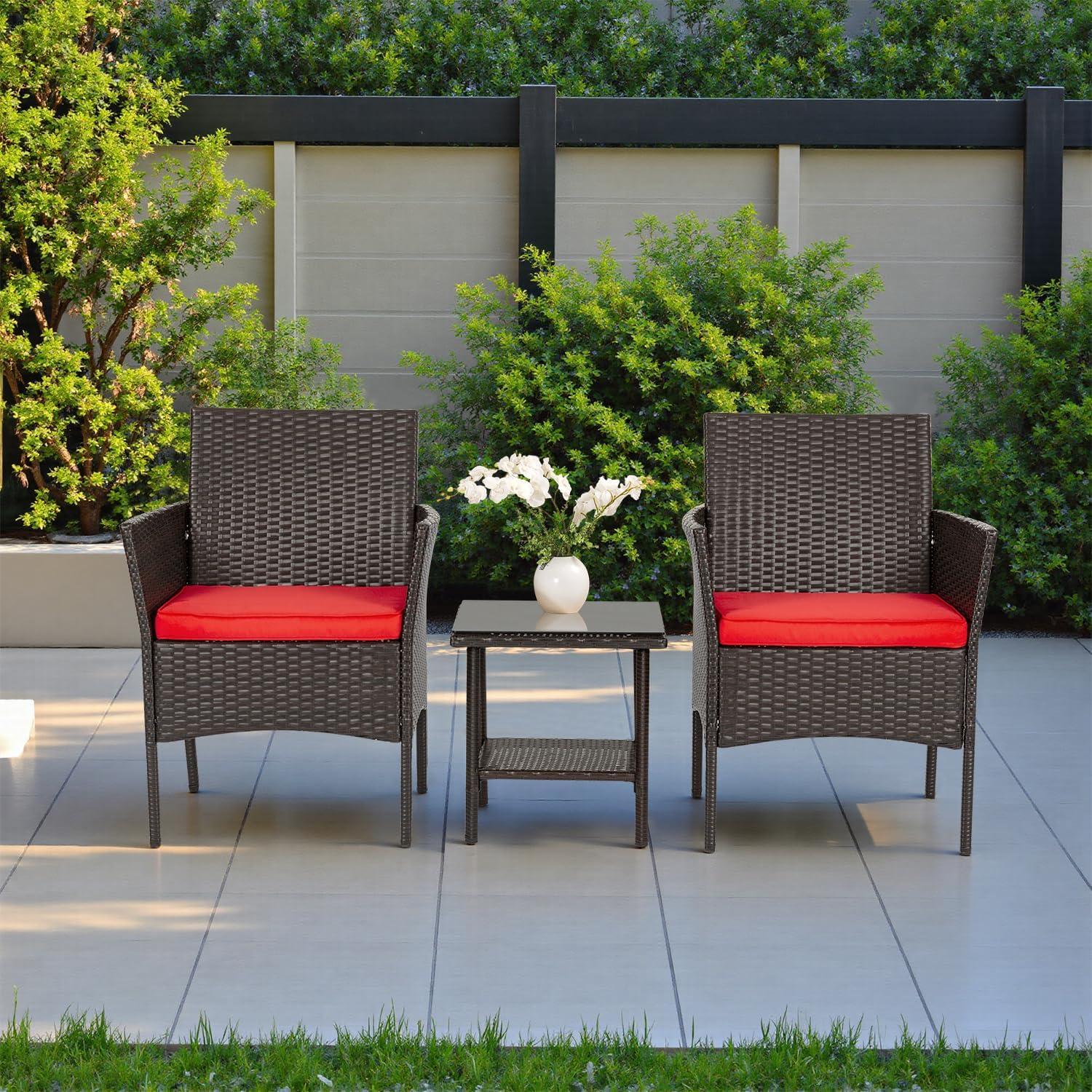 SPACE-SAVING & VERSATILE: This patio conversation set fits small patios, balconies, and gardens. Compact and practical, this design saves space while providing easy storage for outdoor essentials.