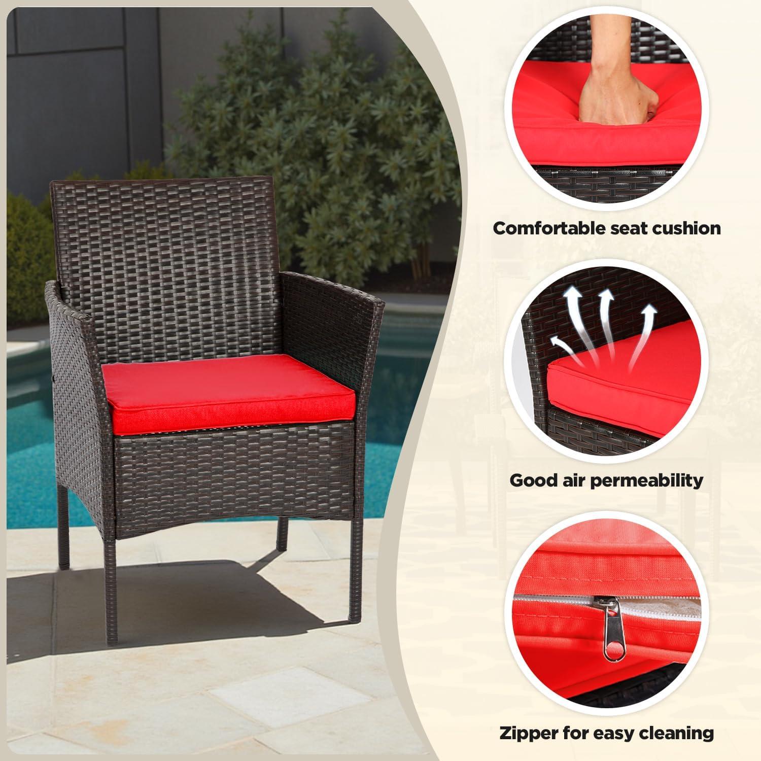 FDW | 4-Piece Patio Furniture Set | Gray & Khakhi | Outdoor Wicker Furniture with Coffee Table | Modern Rattan Chairs Conversation Set | Outdoor Seating | Weather-Resistant | for Porch, Garden, Lawn(Brown and Red)