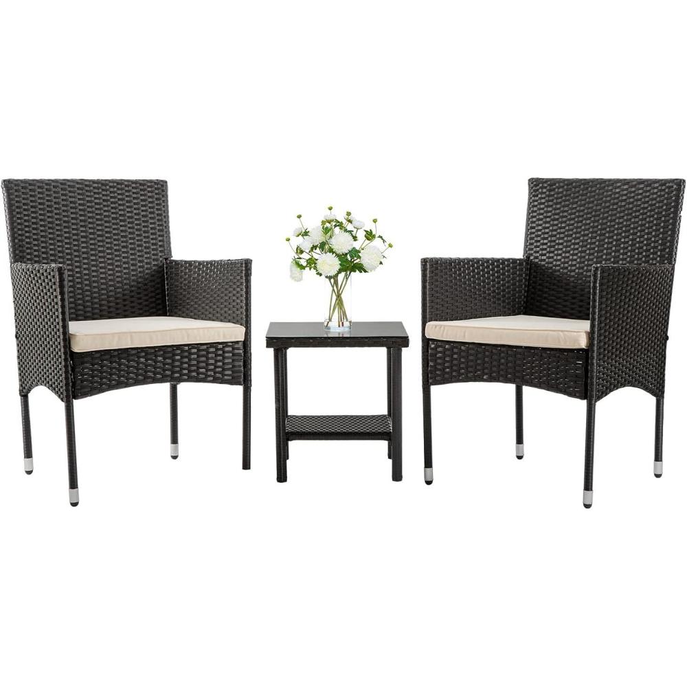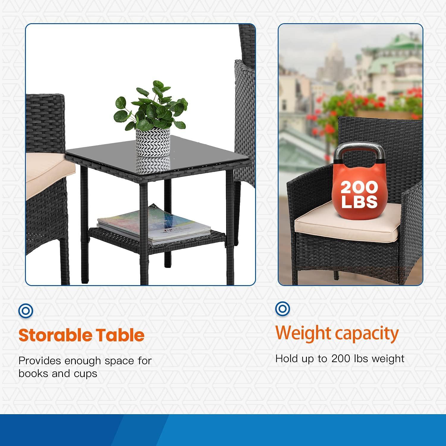 SPACE-SAVING & VERSATILE: This patio conversation set fits small patios, balconies, and gardens. Compact and practical, this design saves space while providing easy storage for outdoor essentials.