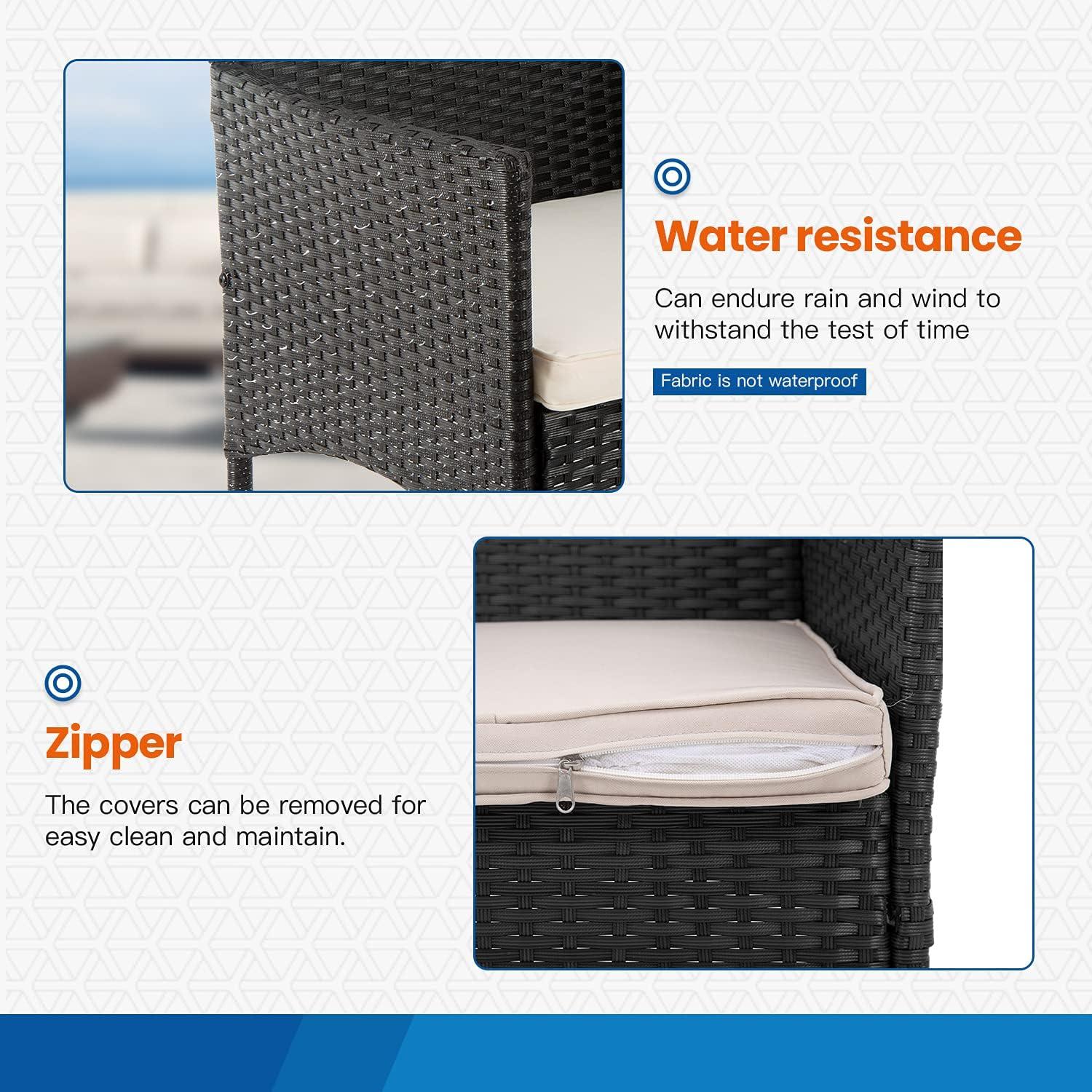 COMFORTABLE & STYLISH DESIGN: This patio set has thick, high-density rebound sponge cushions for cozy seating. Its simple, stylish look suits patios, balconies, poolside, or gardens.