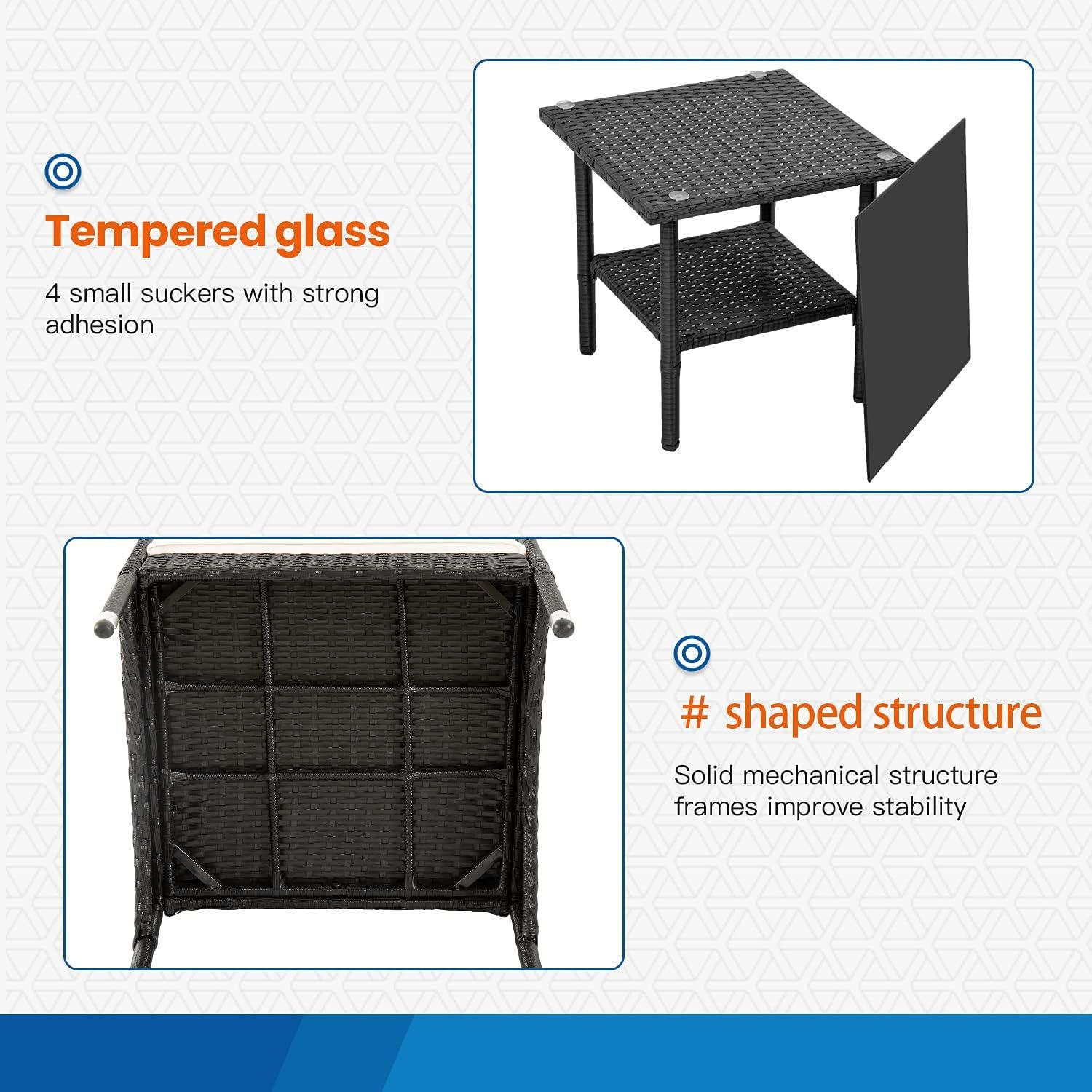 MODERN STYLE: The patio set includes a table made of high-quality tempered glass for drinks, food, or décor. This sleek rattan design brings modern elegance and style to your outdoor furniture space.