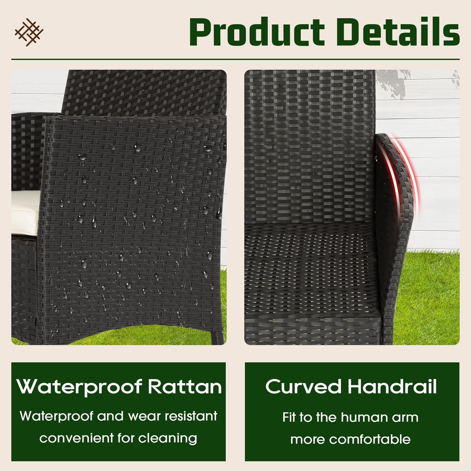 FDW | 4-Piece Patio Furniture Set | Gray & Khakhi | Outdoor Wicker Furniture with Coffee Table | Modern Rattan Chairs Conversation Set | Outdoor Seating | Weather-Resistant | for Porch, Garden, Lawn(Black)