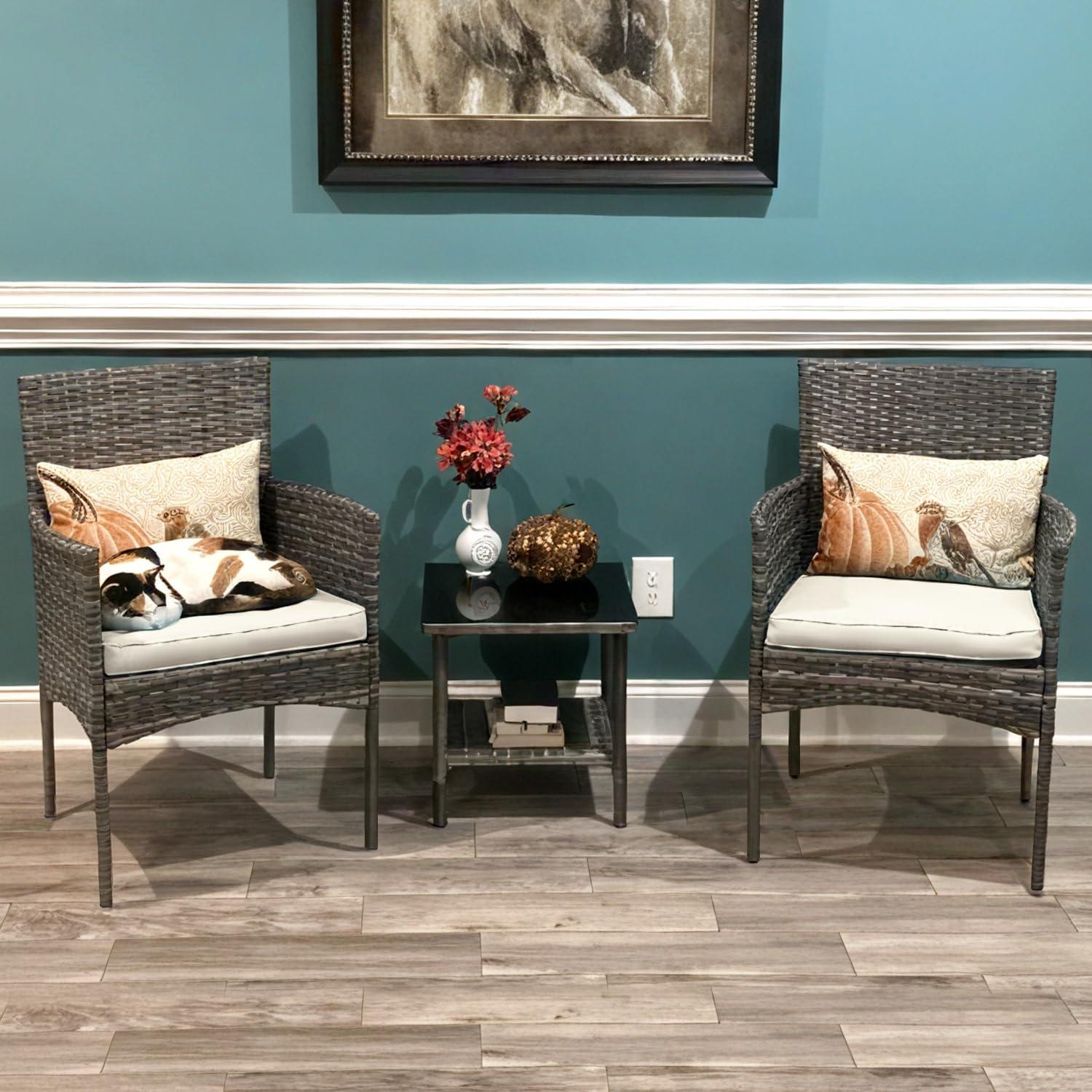 SPACE-SAVING & VERSATILE: This patio conversation set fits small patios, balconies, and gardens. Compact and practical, this design saves space while providing easy storage for outdoor essentials.
