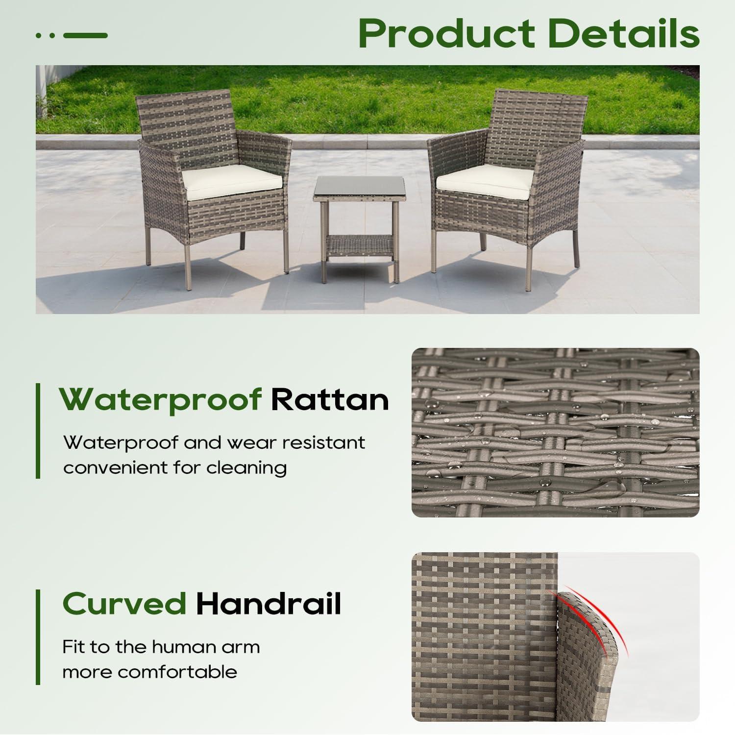 COMFORTABLE & STYLISH DESIGN: This patio set has thick, high-density rebound sponge cushions for cozy seating. Its simple, stylish look suits patios, balconies, poolside, or gardens.