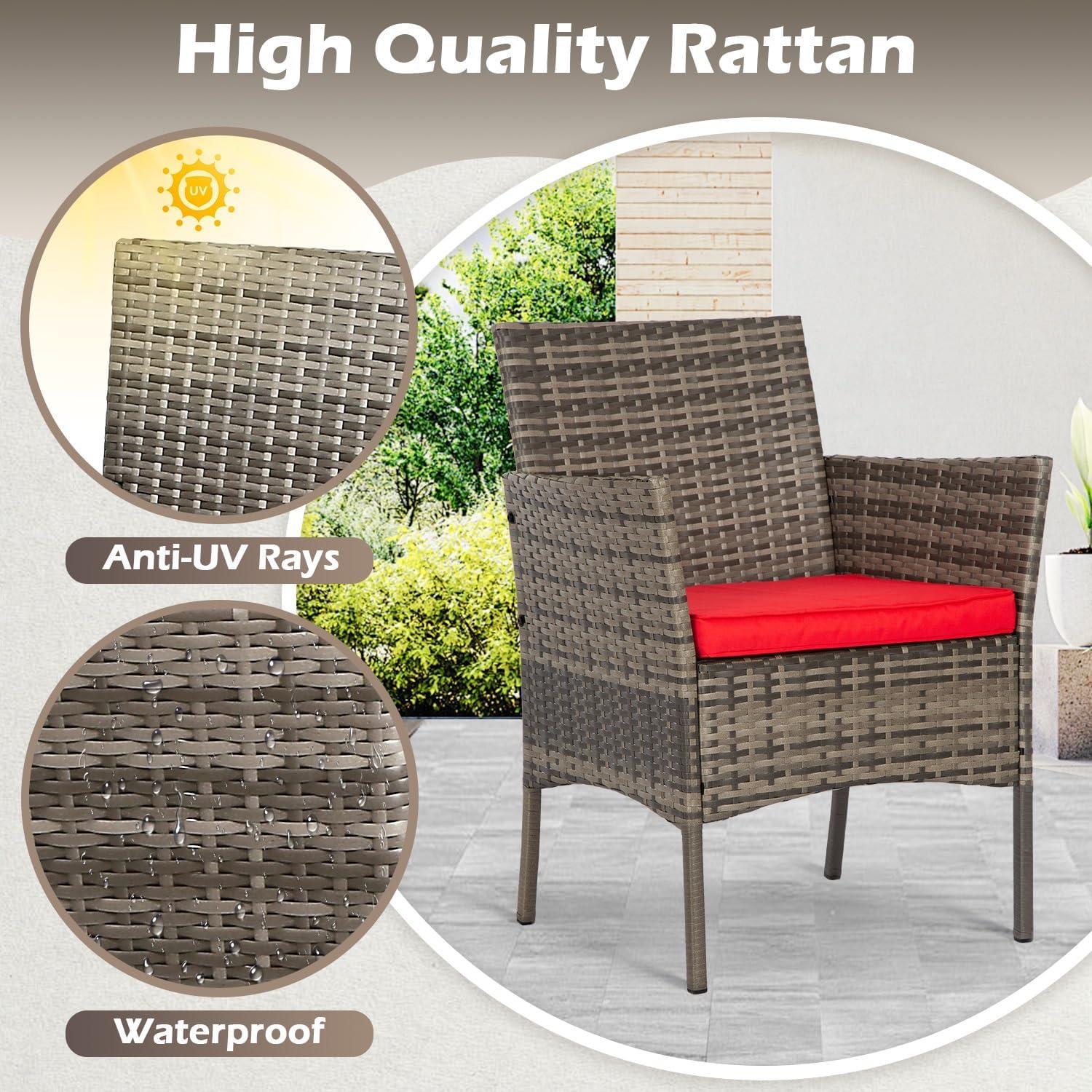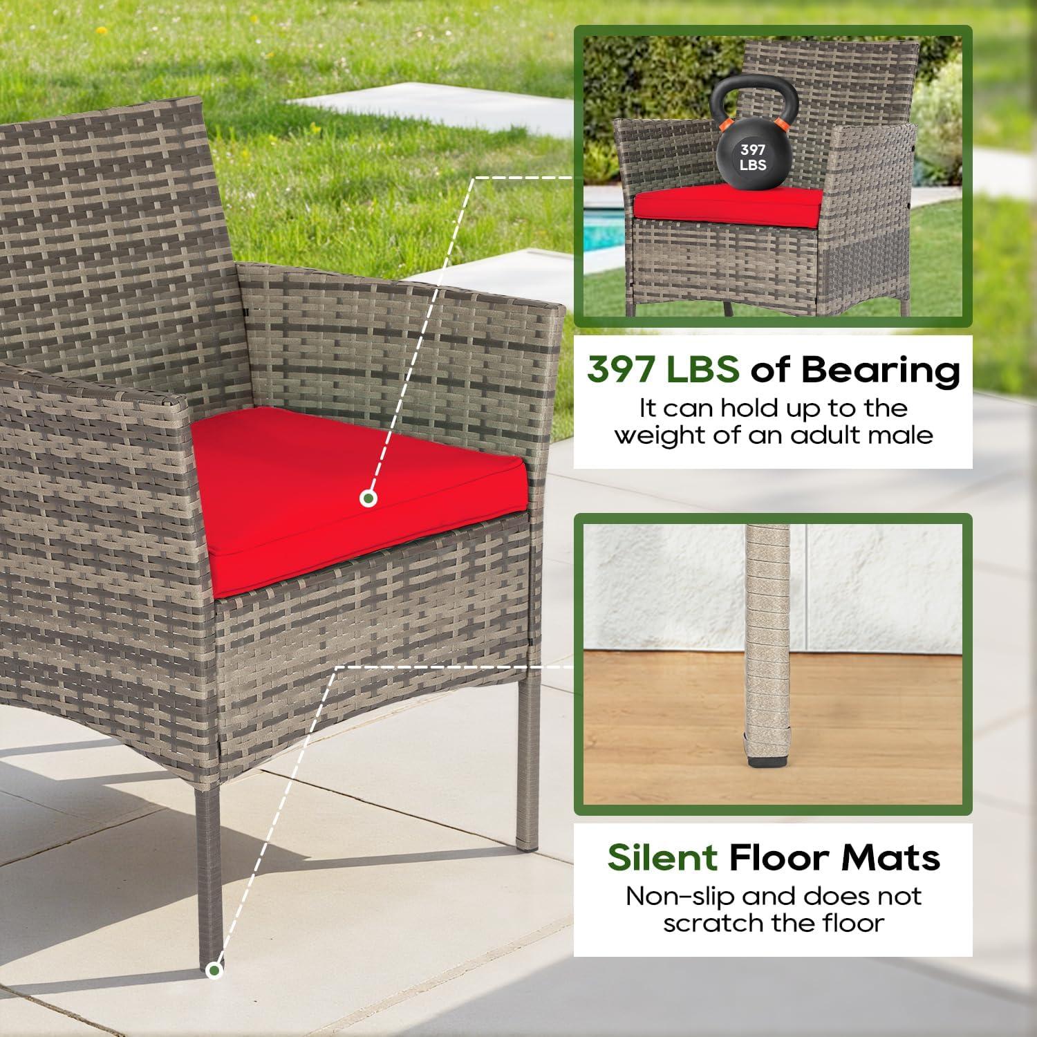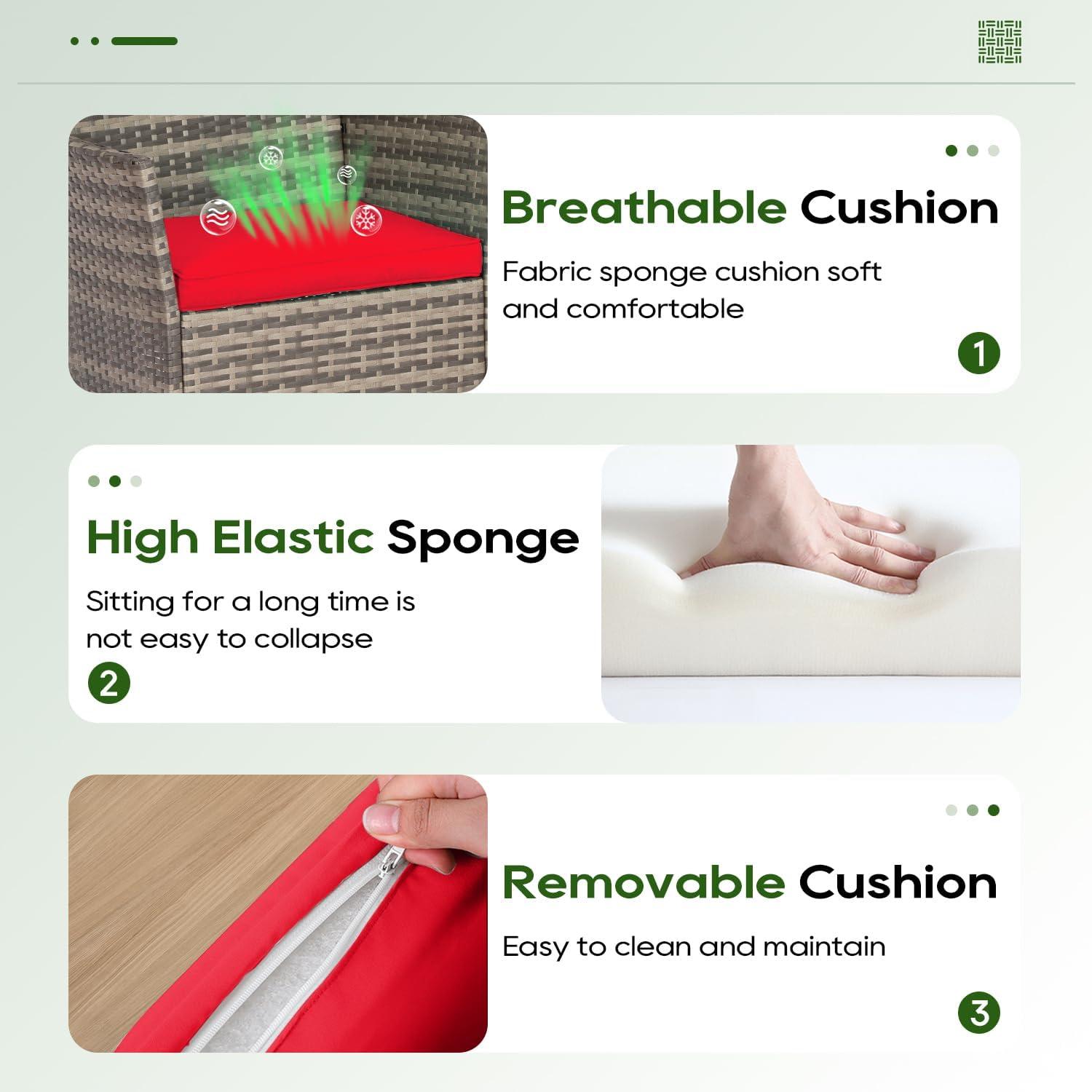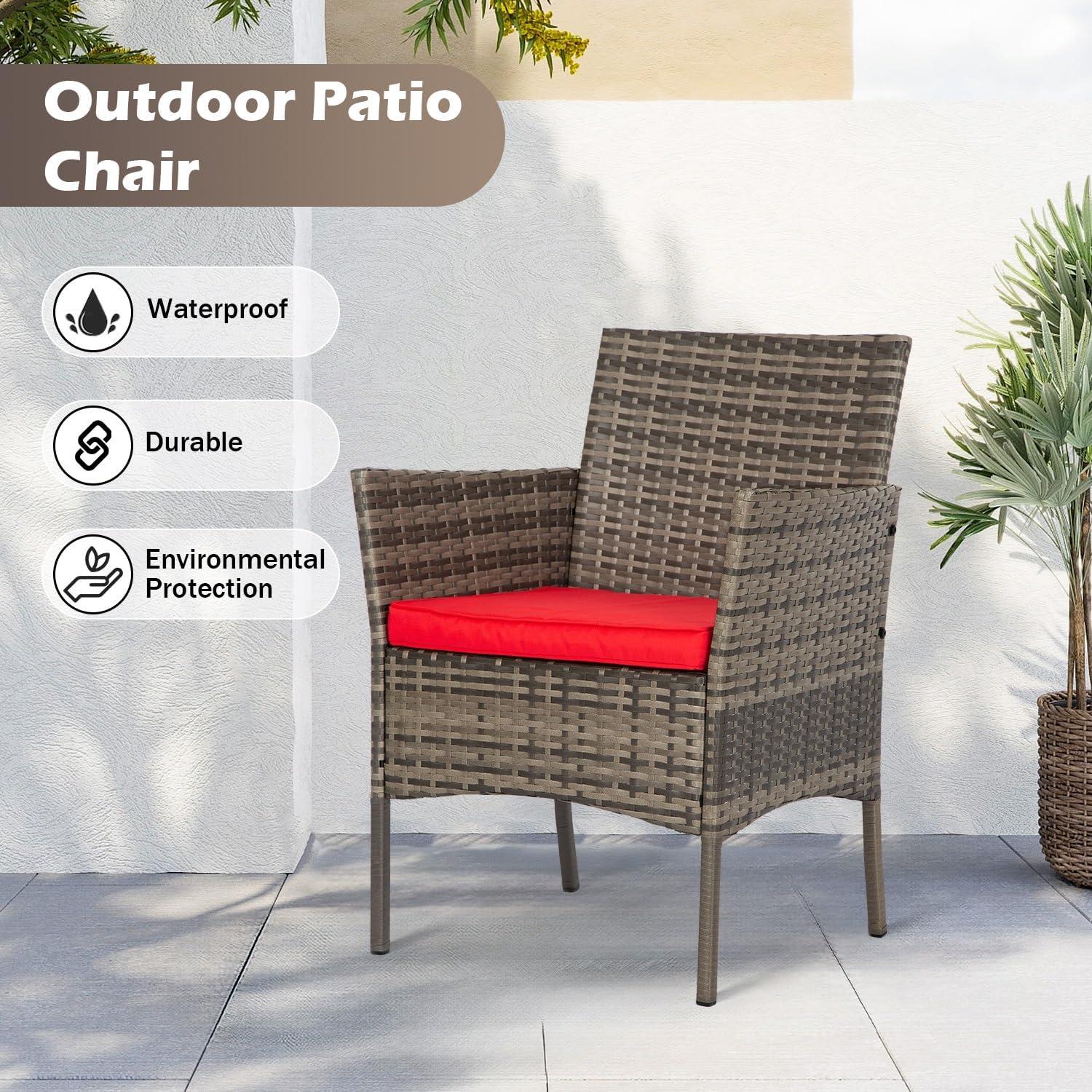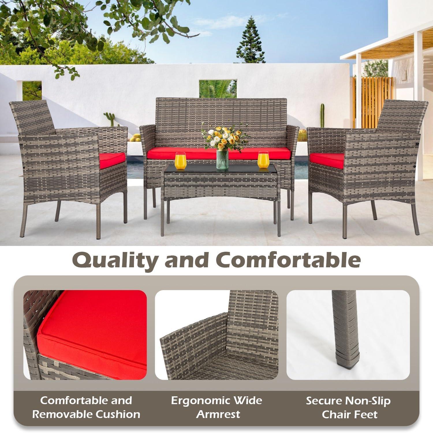 FDW | 4-Piece Patio Furniture Set | Gray & Khakhi | Outdoor Wicker Furniture with Coffee Table | Modern Rattan Chairs Conversation Set | Outdoor Seating | Weather-Resistant | for Porch, Garden, Lawn(Gray and Red)