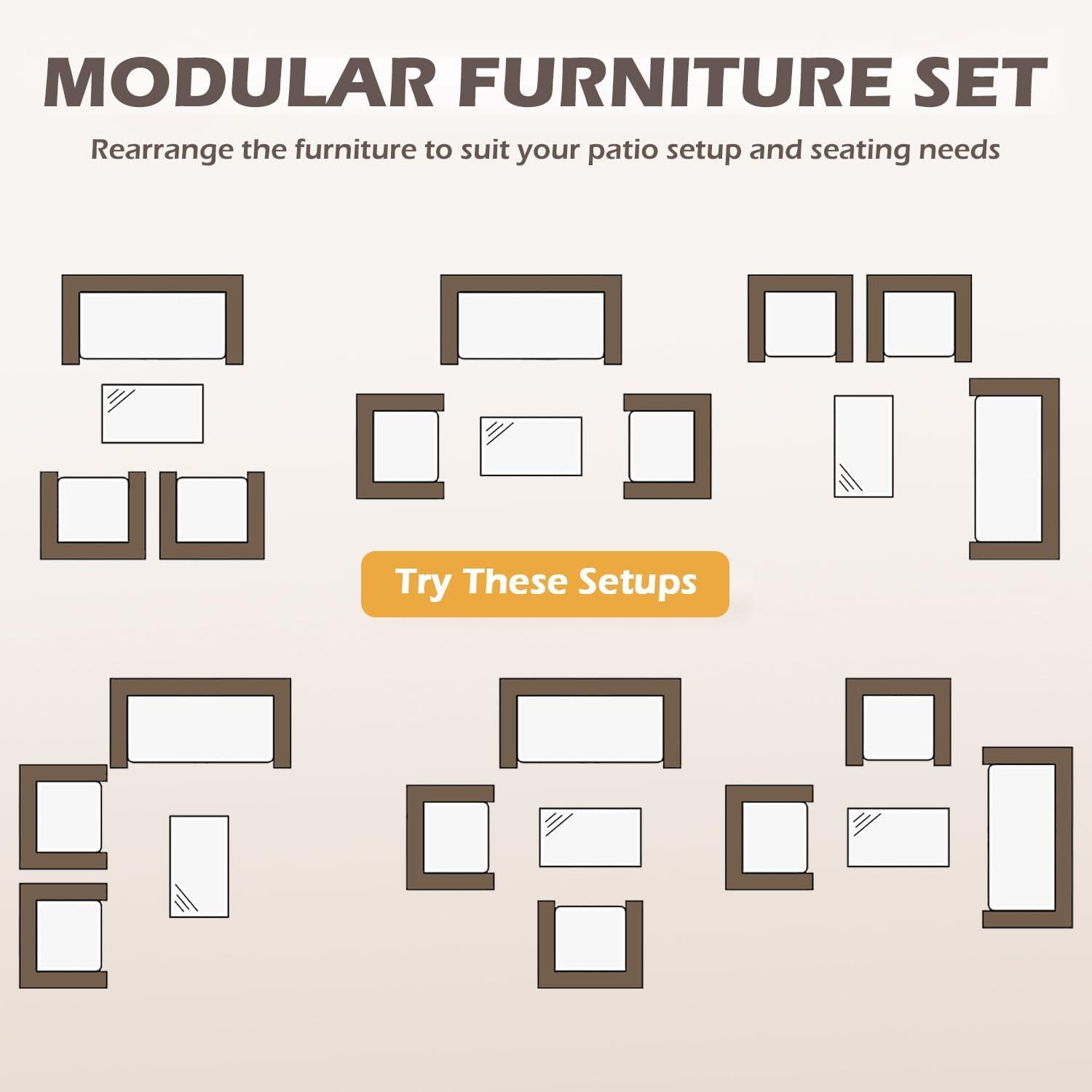 The FDW 4-Piece Patio Furniture Set combines modern style, comfort, and durability, making it a perfect choice for patios, balconies, gardens, porches, and poolside settings. This set includes two single chairs, one double loveseat, and a coffee table with a sleek tempered glass top—ideal for drinks, snacks, or decorative items. Crafted with hand-woven, all-weather PE rattan over a powder-coated steel frame, it offers excellent durability, rust resistance, and lightweight strength. The seats come with thick, high-density rebound sponge cushions that provide comfort and support for extended lounging. Removable cushion covers with smooth zippers allow for effortless cleaning and maintenance. Designed to maximize space, the compact layout suits smaller outdoor areas without compromising seating. The set ships in one box with all hardware and tools included for quick assembly. Follow the step-by-step instructions—align the holes, tighten screws evenly, and enjoy a secure, stylish outdoor setup built to last.