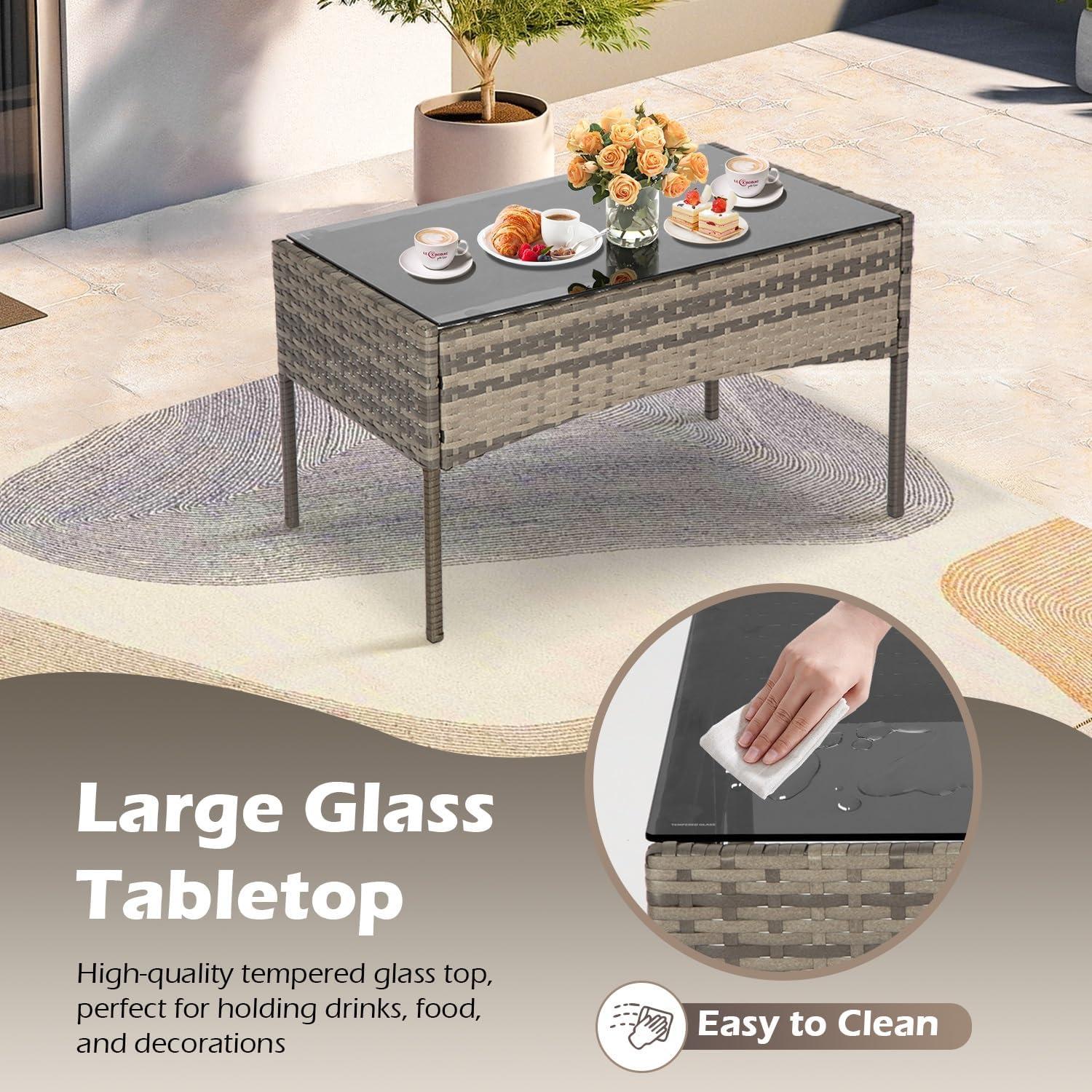 DURABLE & WEATHER-RESISTANT: This 4-piece patio set features a rust-resistant steel frame and all-weather PE rattan for long-lasting durability. Includes a stylish, easy-to-clean glass-top table.