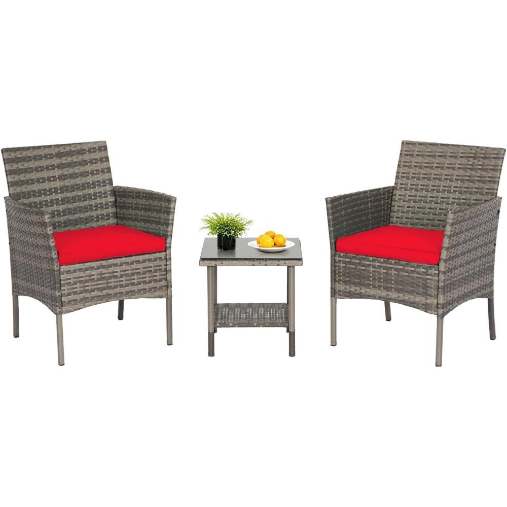 imageFDW  4Piece Patio Furniture Set  Gray ampamp Khakhi  Outdoor Wicker Furniture with Coffee Table  Modern Rattan Chairs Conversation Set  Outdoor Seating  WeatherResistant  for Porch Garden LawnGray and Red