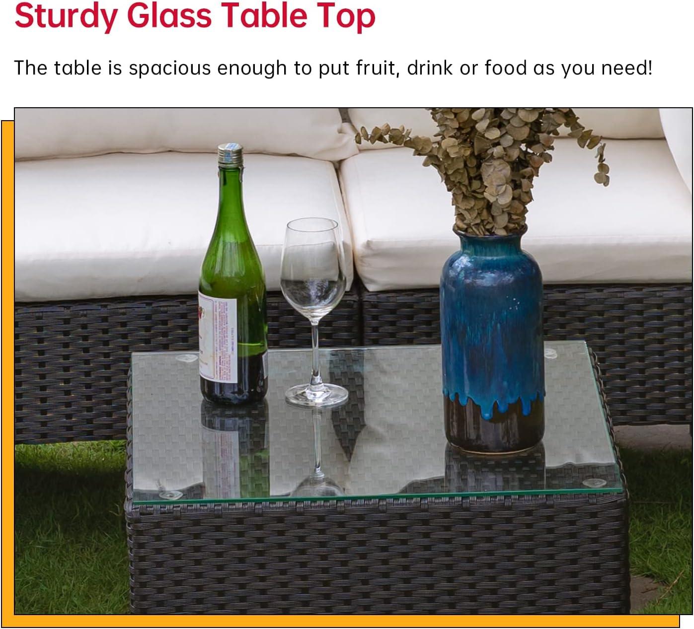 MODERN STYLE: The patio set includes a table made of high-quality tempered glass for drinks, food, or décor. This sleek rattan design brings modern elegance and style to your outdoor furniture space.