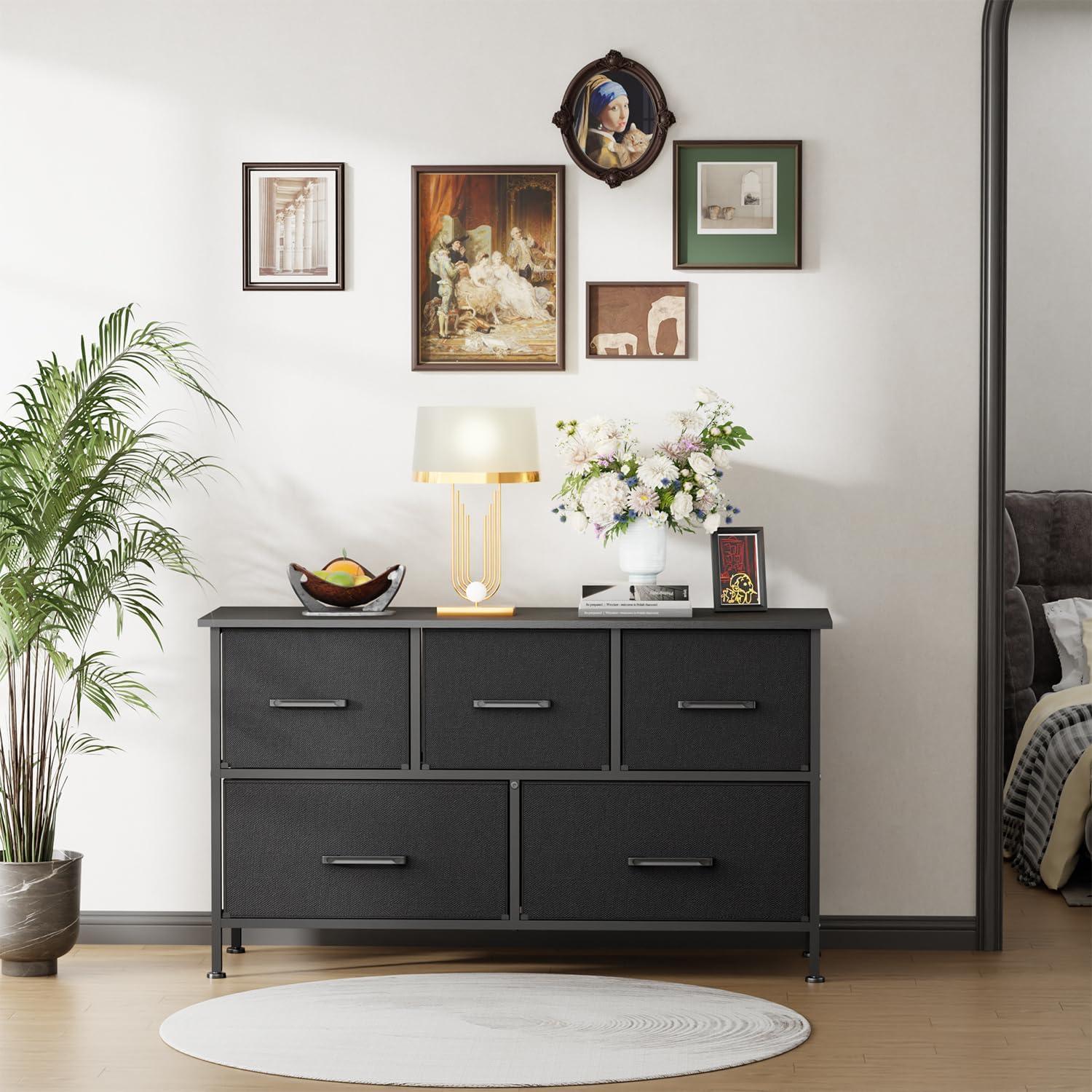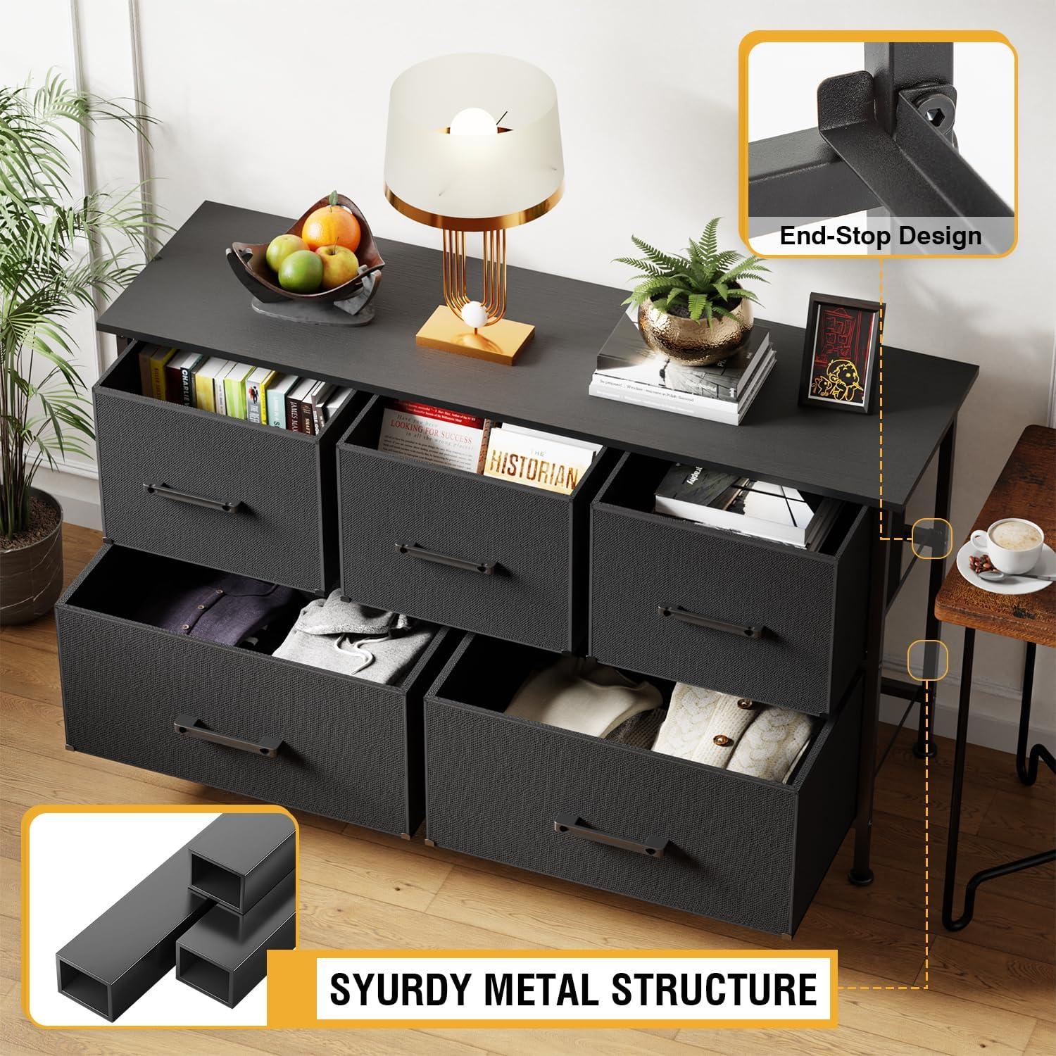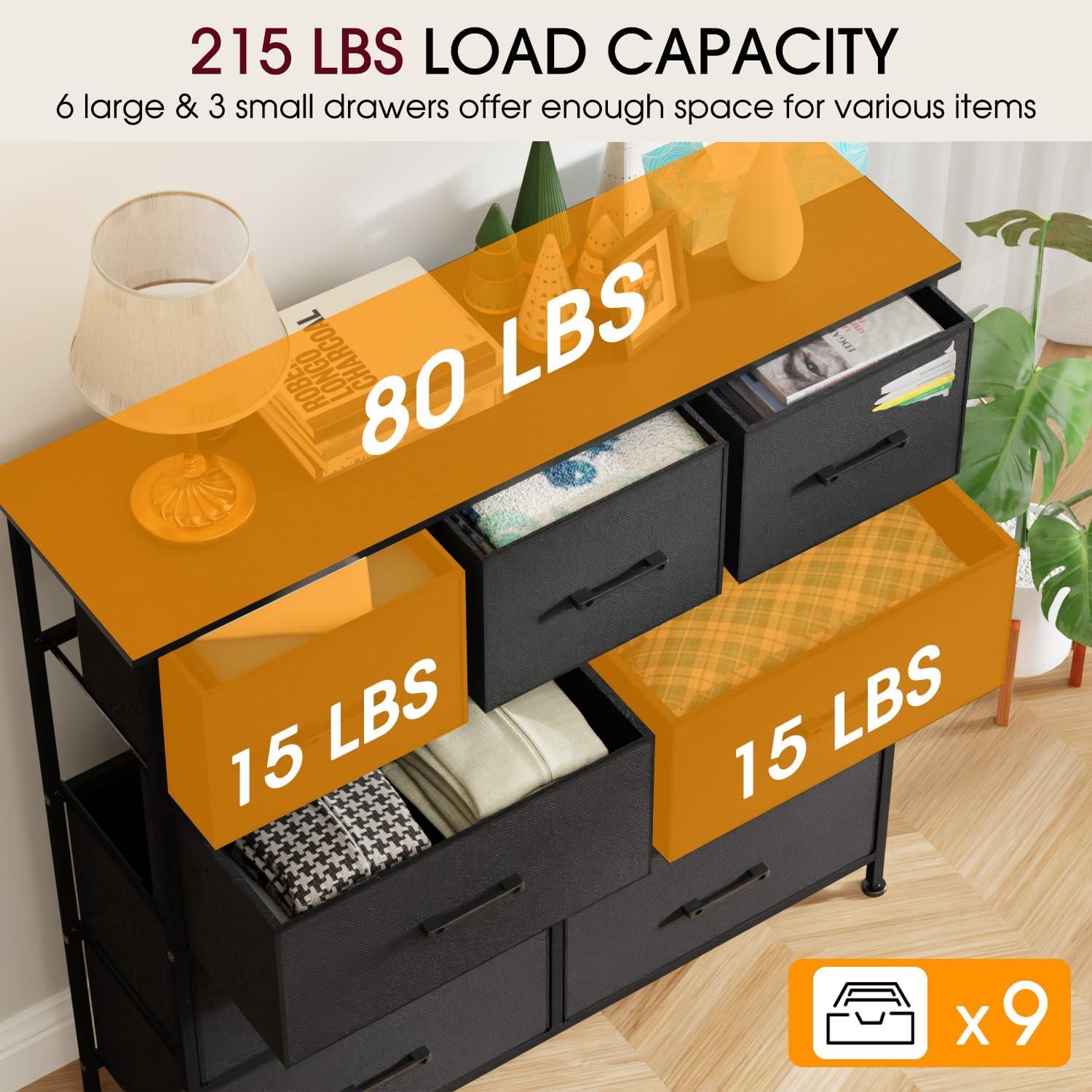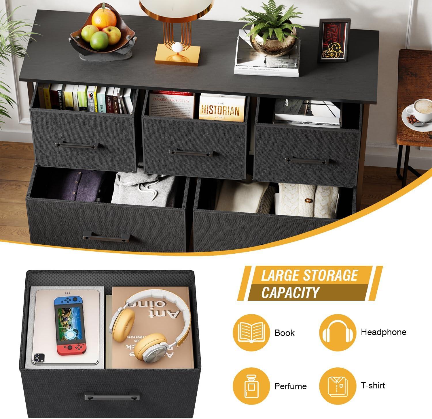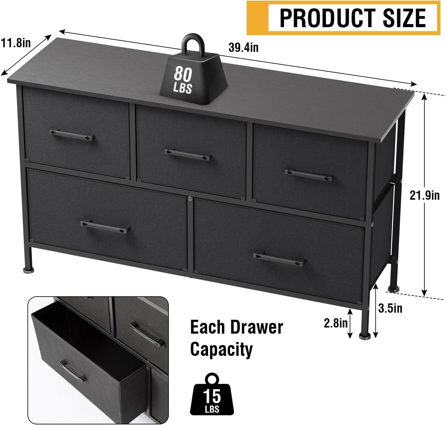 Space-Saving Solution:This full-size dresser with fabric bins is ideal for organizing clothes, magazines, or children's toys while optimizing space. Its wooden top supports up to 80 lbs, making it a sturdy alternative for a TV stand.
