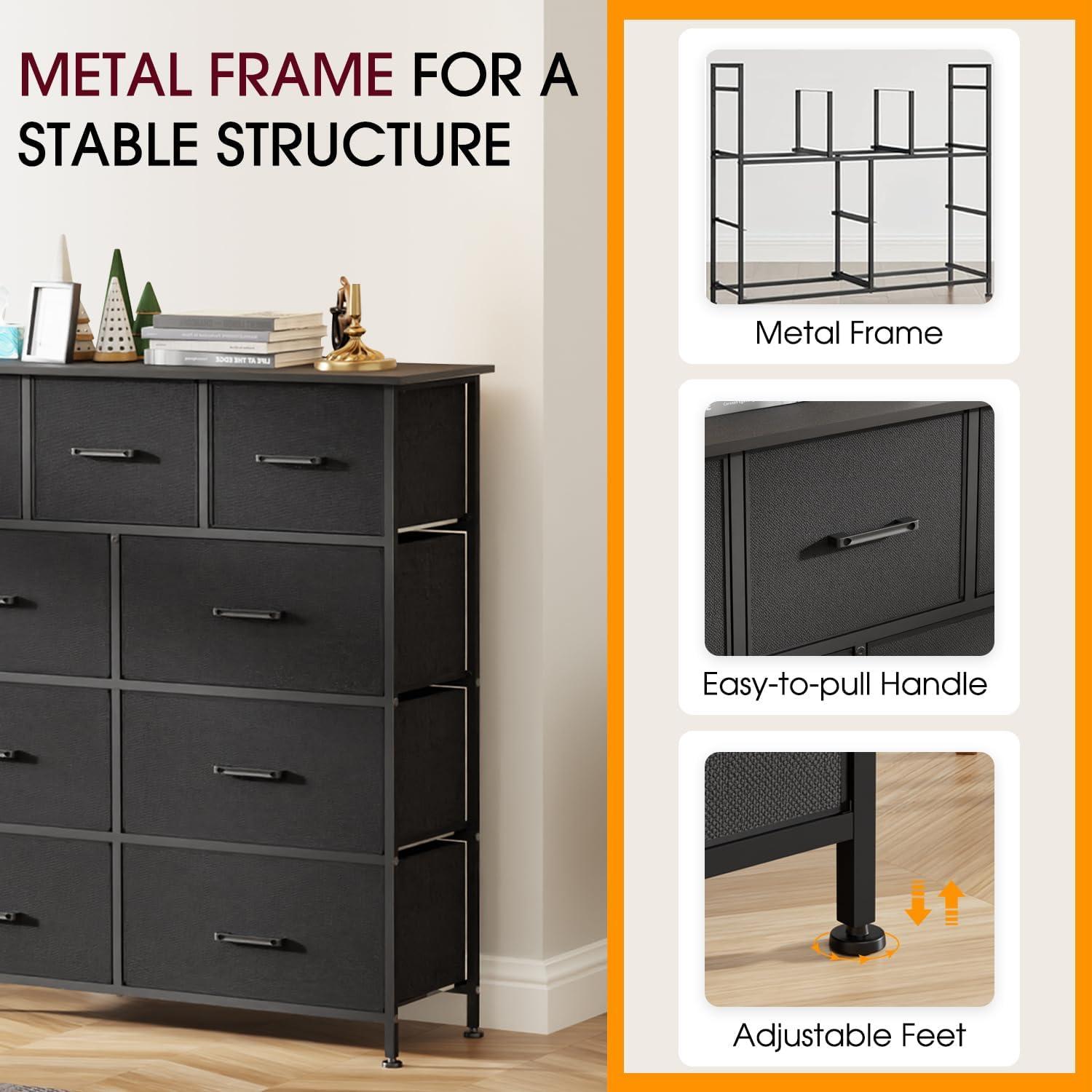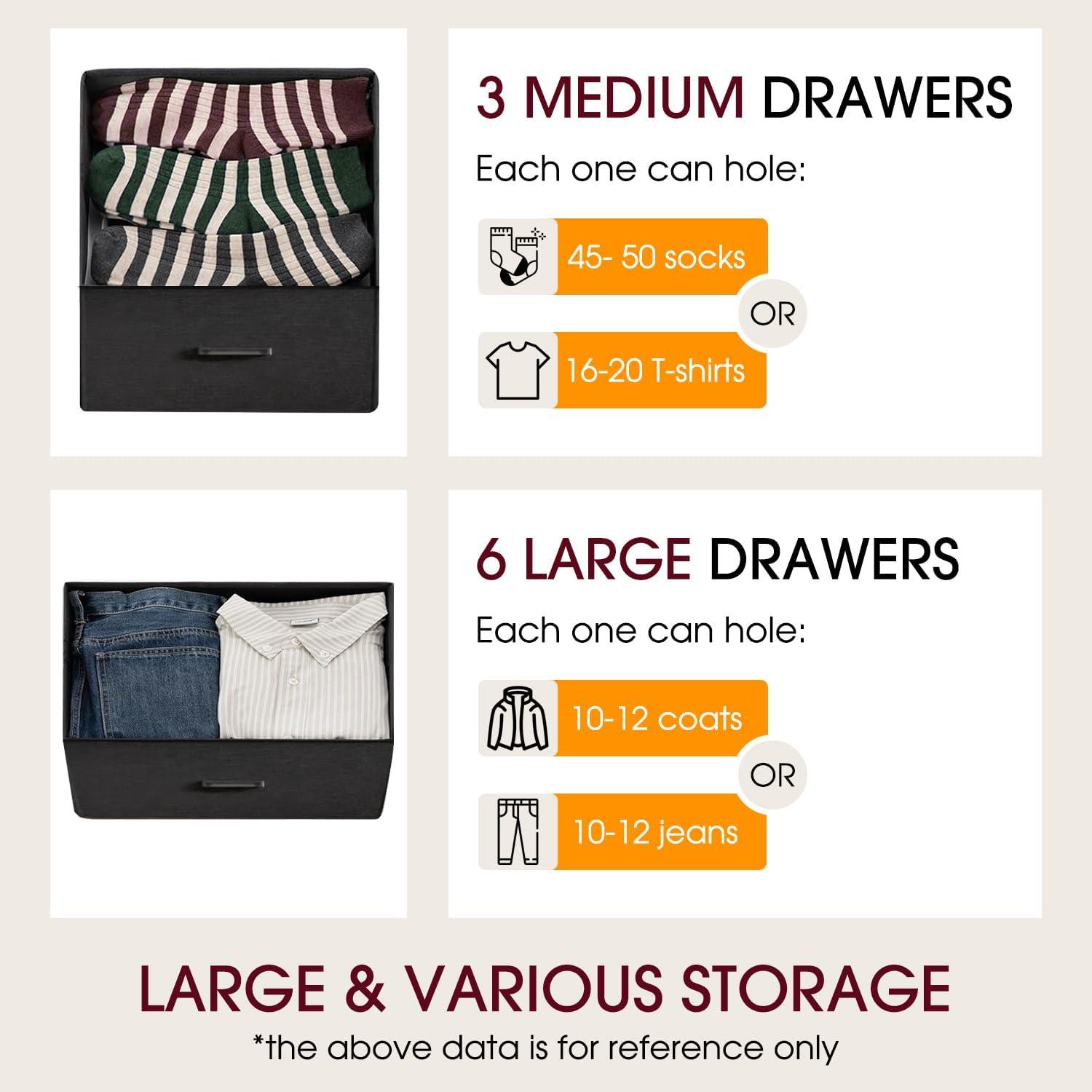Sturdy and Safe: Built with a reinforced metal frame for durability, the closet dresser includes 4 adjustable feet to protect your floors and ensure stability, even on uneven surfaces. The anti-tilt feature allows you to secure the dresser to the wall, providing added safety to prevent tipping accidents.