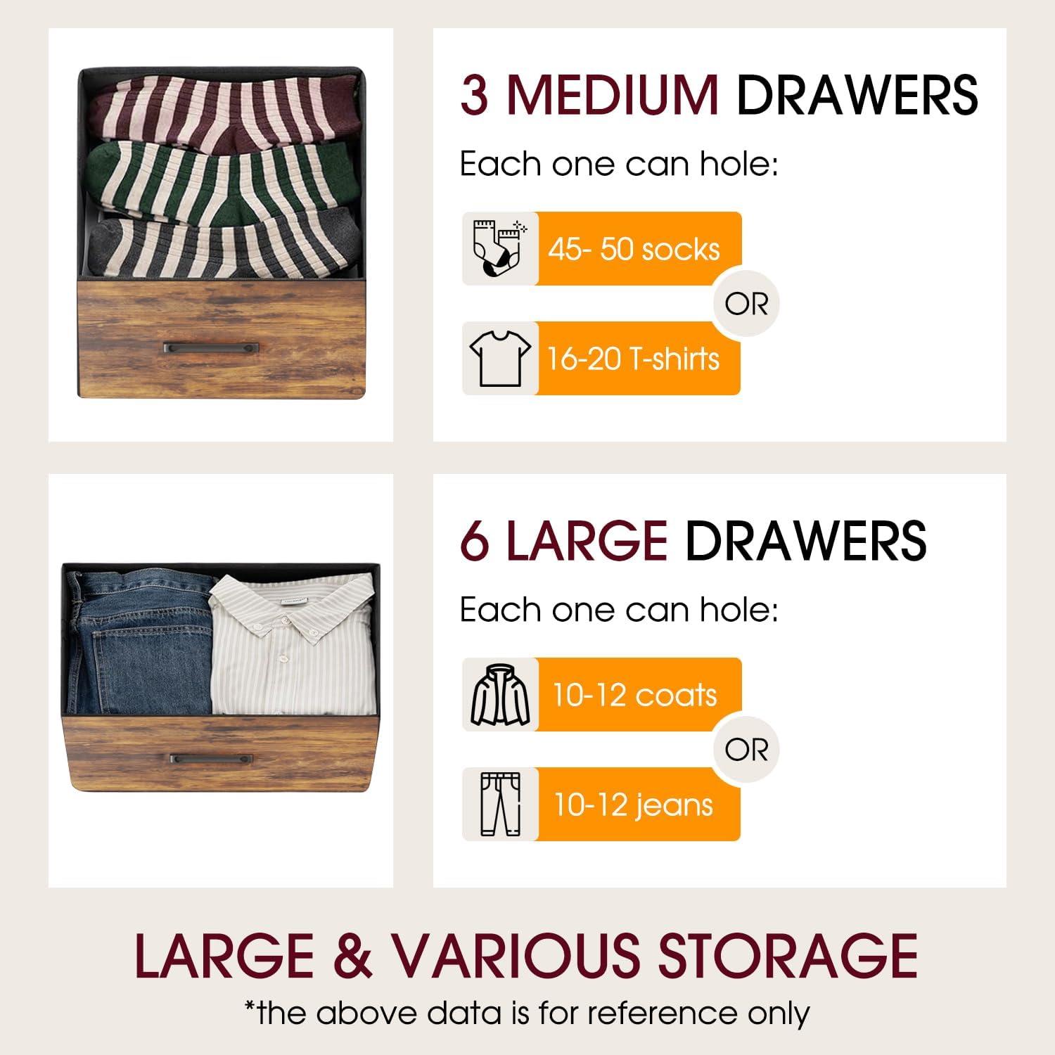 Sturdy and Safe: Built with a reinforced metal frame for durability, the closet dresser includes 4 adjustable feet to protect your floors and ensure stability, even on uneven surfaces. The anti-tilt feature allows you to secure the dresser to the wall, providing added safety to prevent tipping accidents.