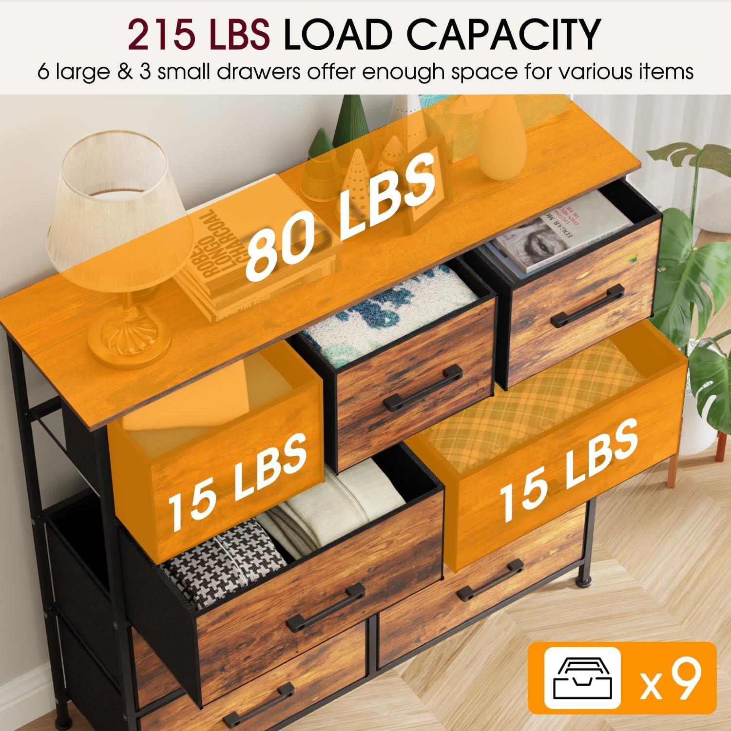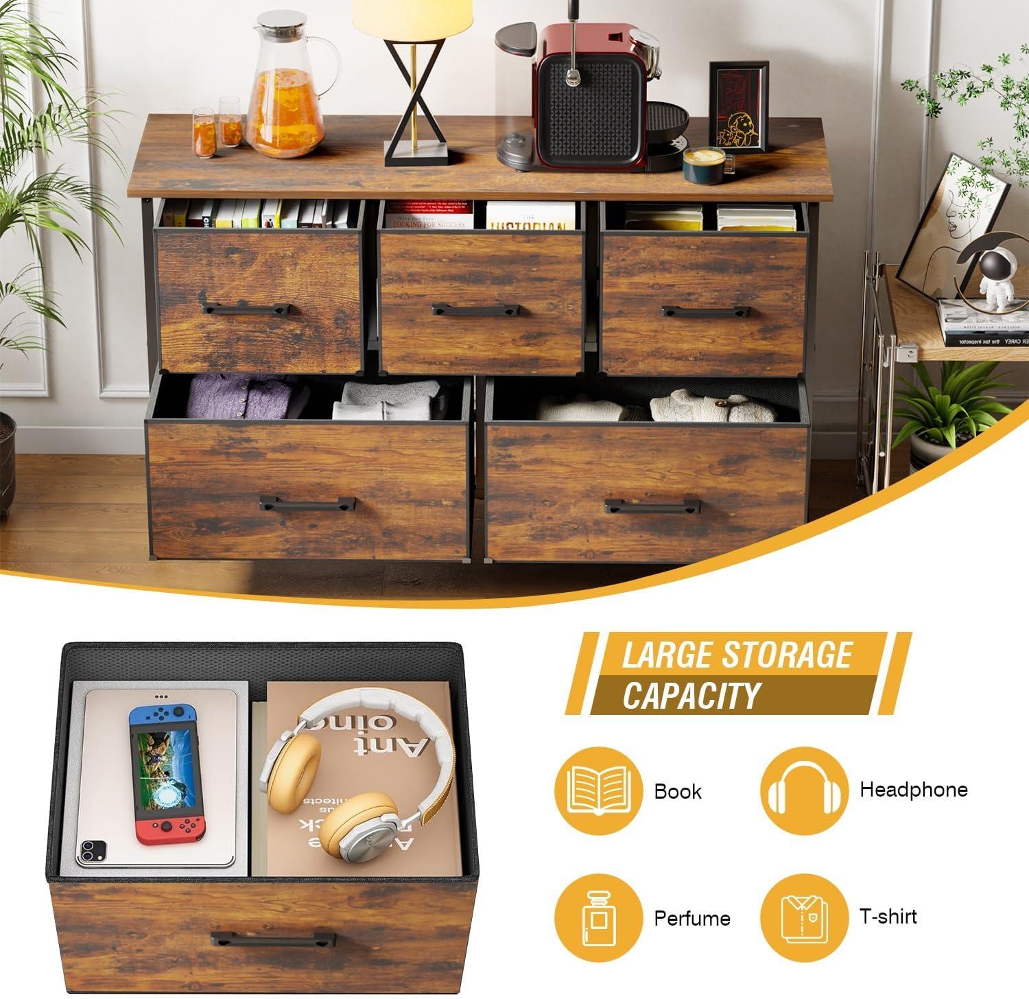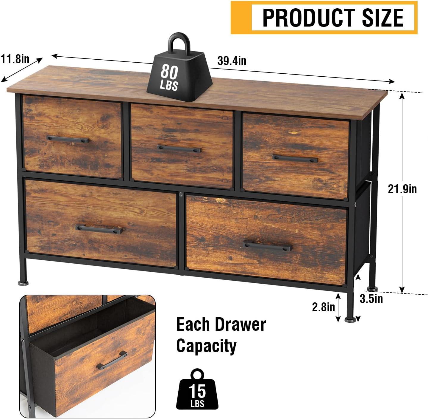 Space-Saving Solution:This full-size dresser with fabric bins is ideal for organizing clothes, magazines, or children's toys while optimizing space. Its wooden top supports up to 80 lbs, making it a sturdy alternative for a TV stand.