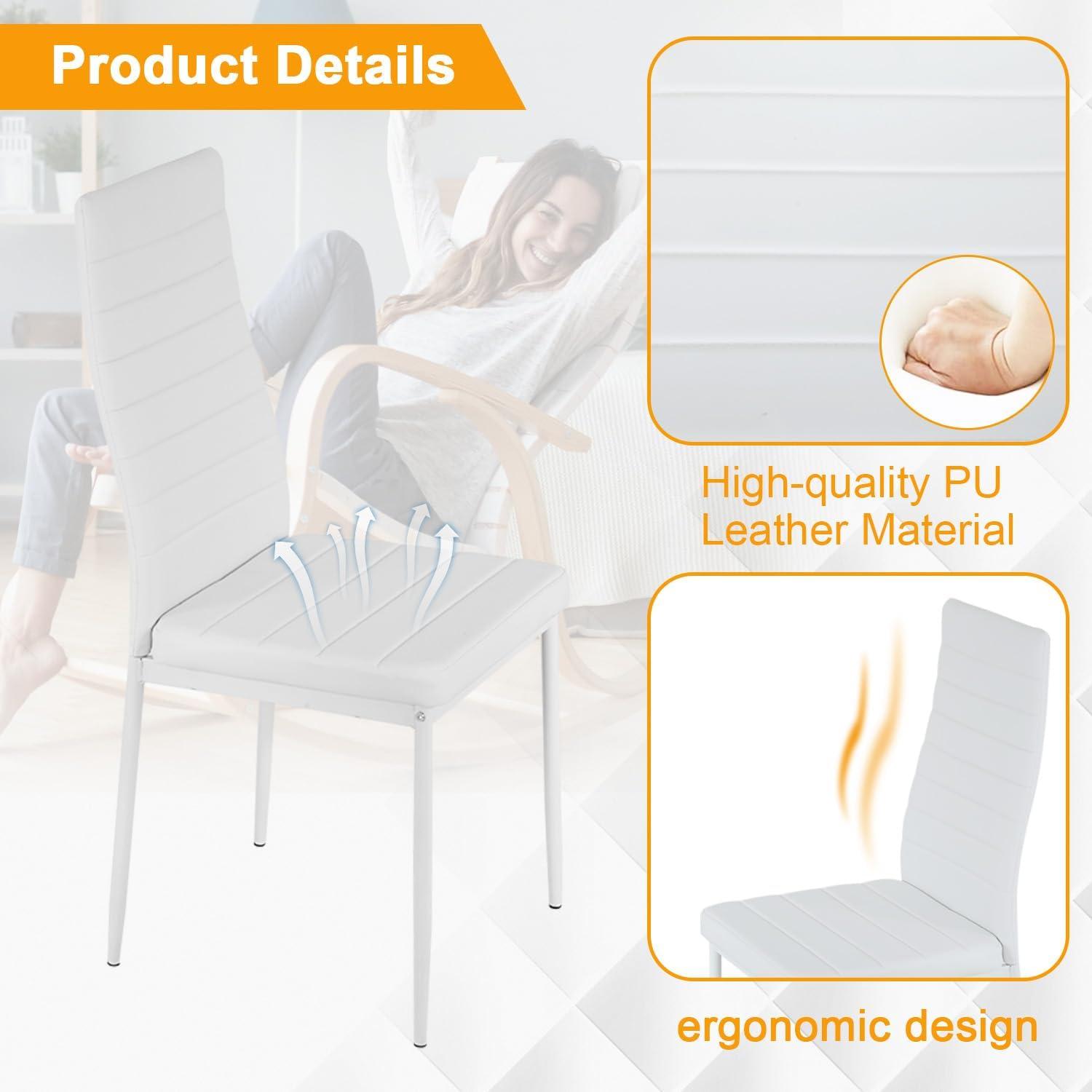 EASY TO CLEAN: The smooth glass tabletop and PU leather seats wipe clean quickly, making this dinner table for 4 easy to maintain, helping you keep your dining area fresh, tidy, and mess-free.