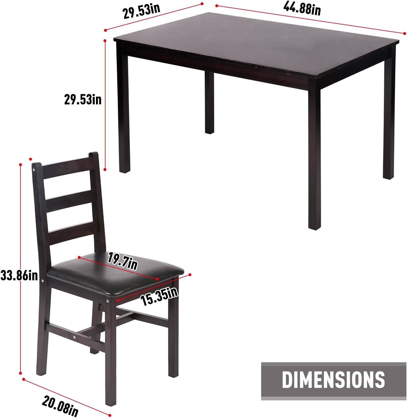 FDW | 5-Piece Solid Wood Dining Table Set for 4 | Brown | Pine Kitchen Table with Upholstered Chairs | Space-Saving Design | Smooth Easy-to-Clean Surface | for Dining Room, Apartment, Restaurant(set for 2)