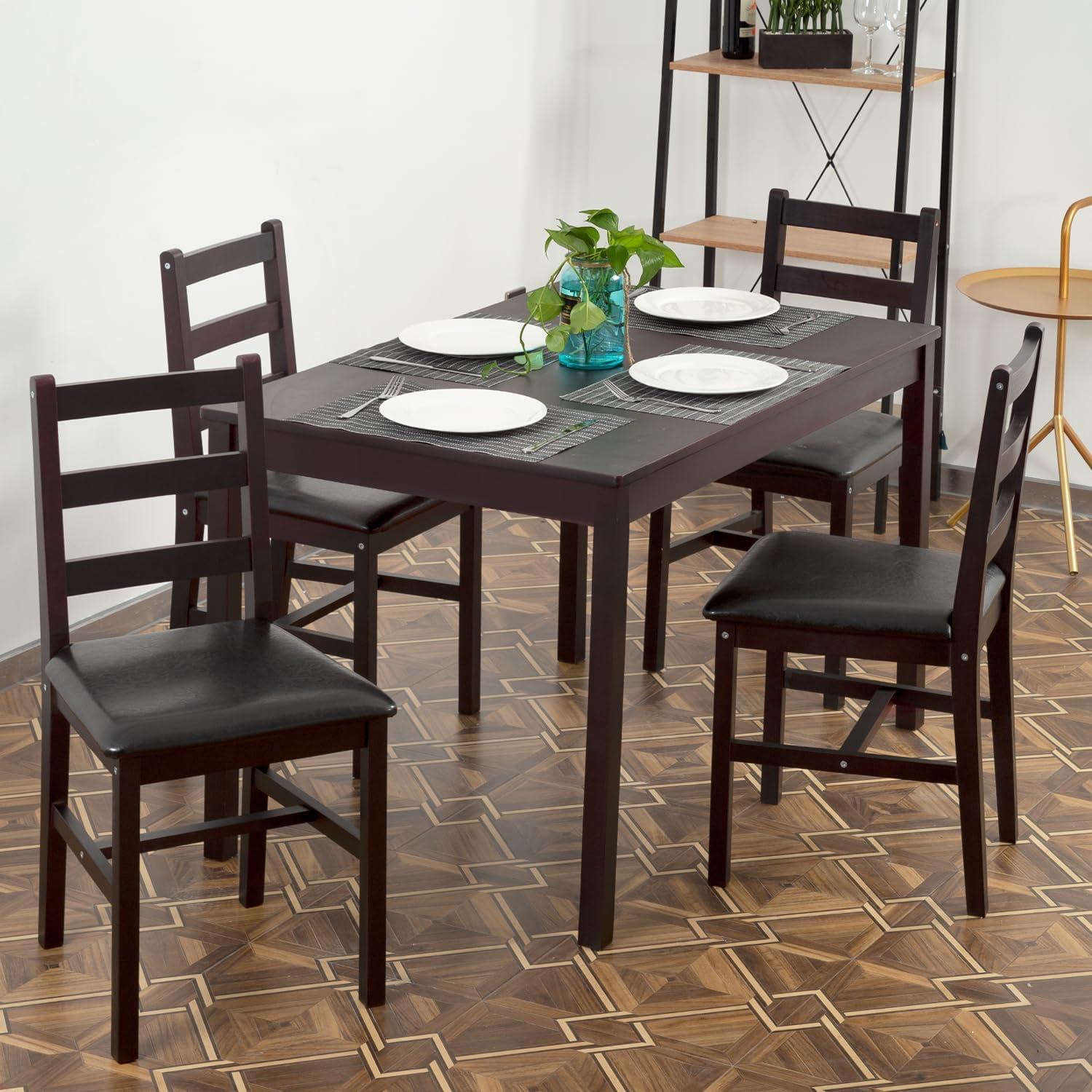 FDW | 5-Piece Solid Wood Dining Table Set for 4 | Brown | Pine Kitchen Table with Upholstered Chairs | Space-Saving Design | Smooth Easy-to-Clean Surface | for Dining Room, Apartment, Restaurant(set for 4)