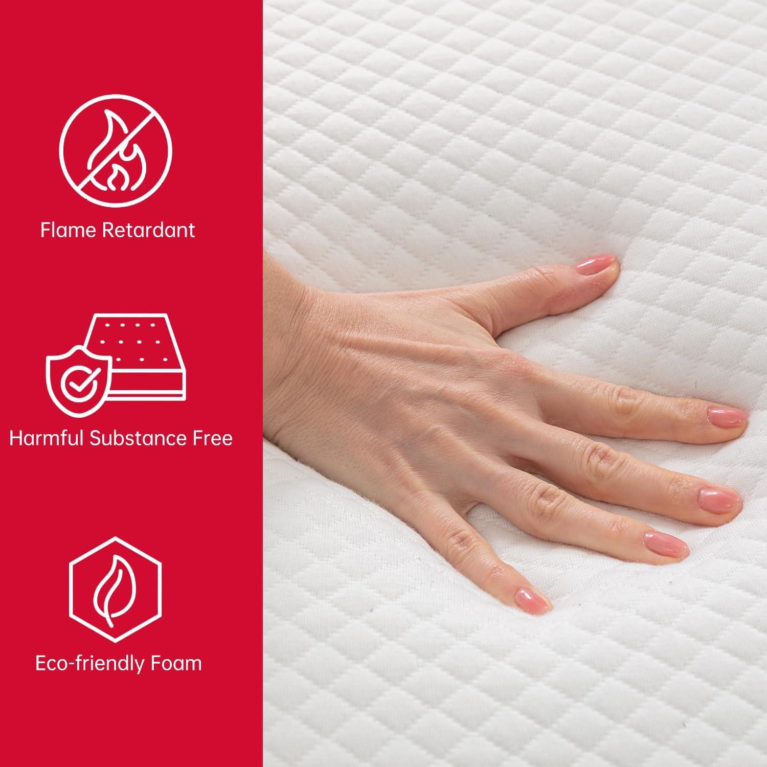 [Easy to Clean]It includes a soft hypoallergenic cover that can be washed for your convenience. The stress-relieving gel foam naturally draws heat away from your body, making your sleep more comfortable; Beautifully detailed four-sided covering with memory foam works with four-way stretching to optimize its compliance performance. The gel-infused memory foam keeps you cool during sleep, and the body-contouring memory foam reduces pressure points and aligns the spine properly.