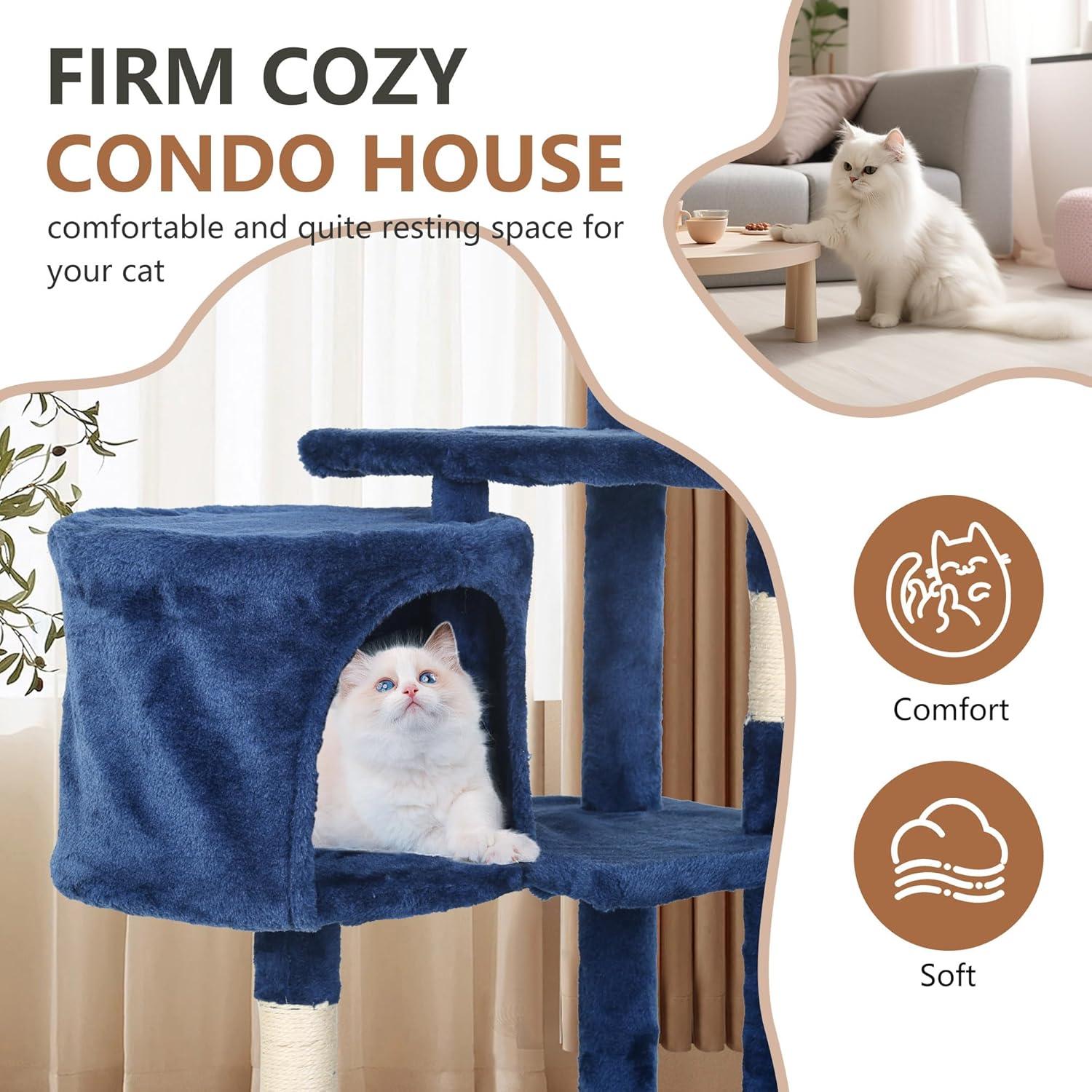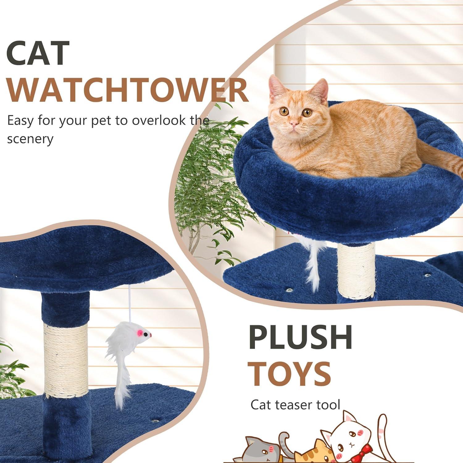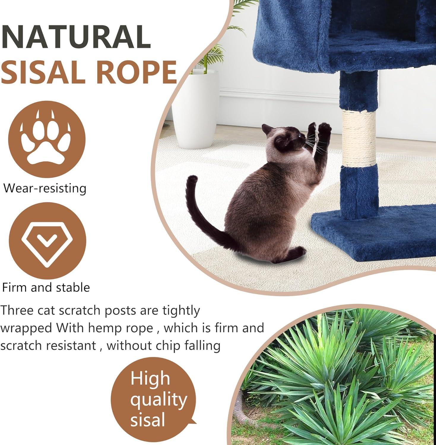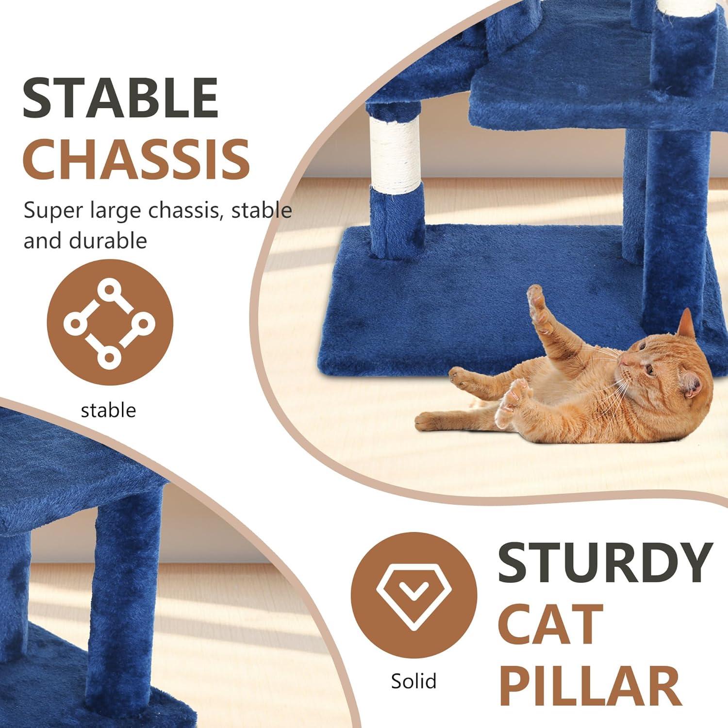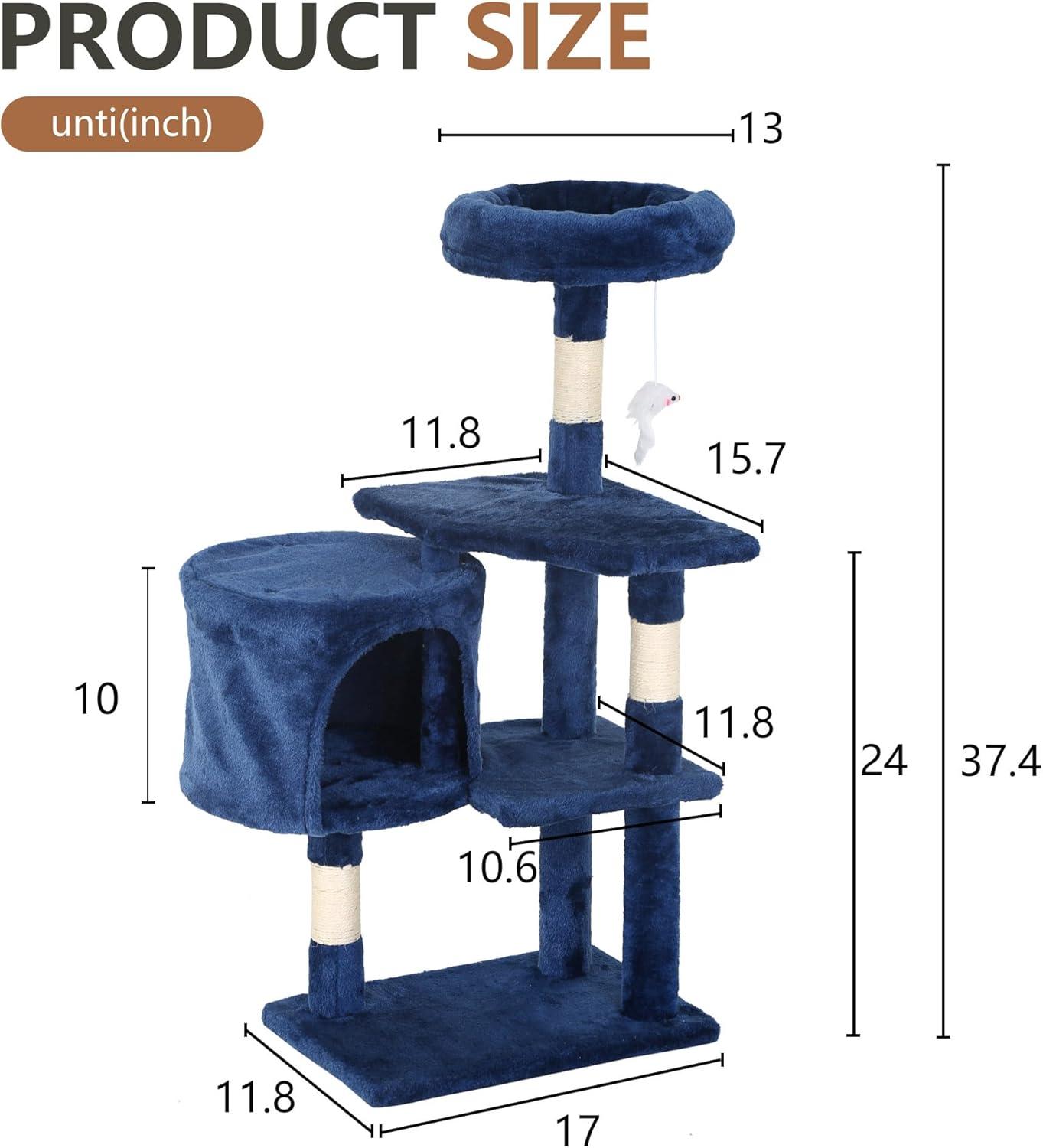 FDW Cat Tree 37 Inch Tall Cat Tower Kitten with Scratching Posts and Perches Indoor Activity Center for Cats, Navy Blue(Navy Blue)