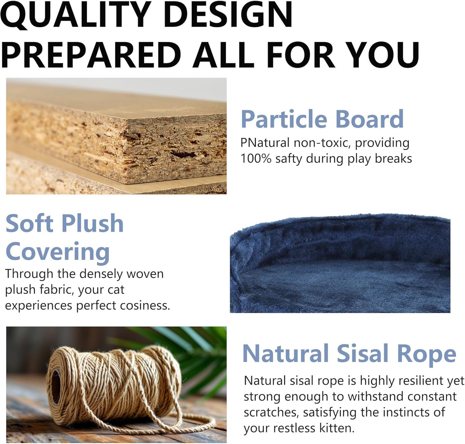 🐱 【Simple assembly】We understand that convenience is important to pet owners, which is why we made our cat tree simple to assemble in a matter of minutes. You can quickly provide your kitties a stimulating environment by following the simple setup instructions and using the available tools. Please feel free to contact us with any questions you may have about our cat tree, and we will respond to you within a day!