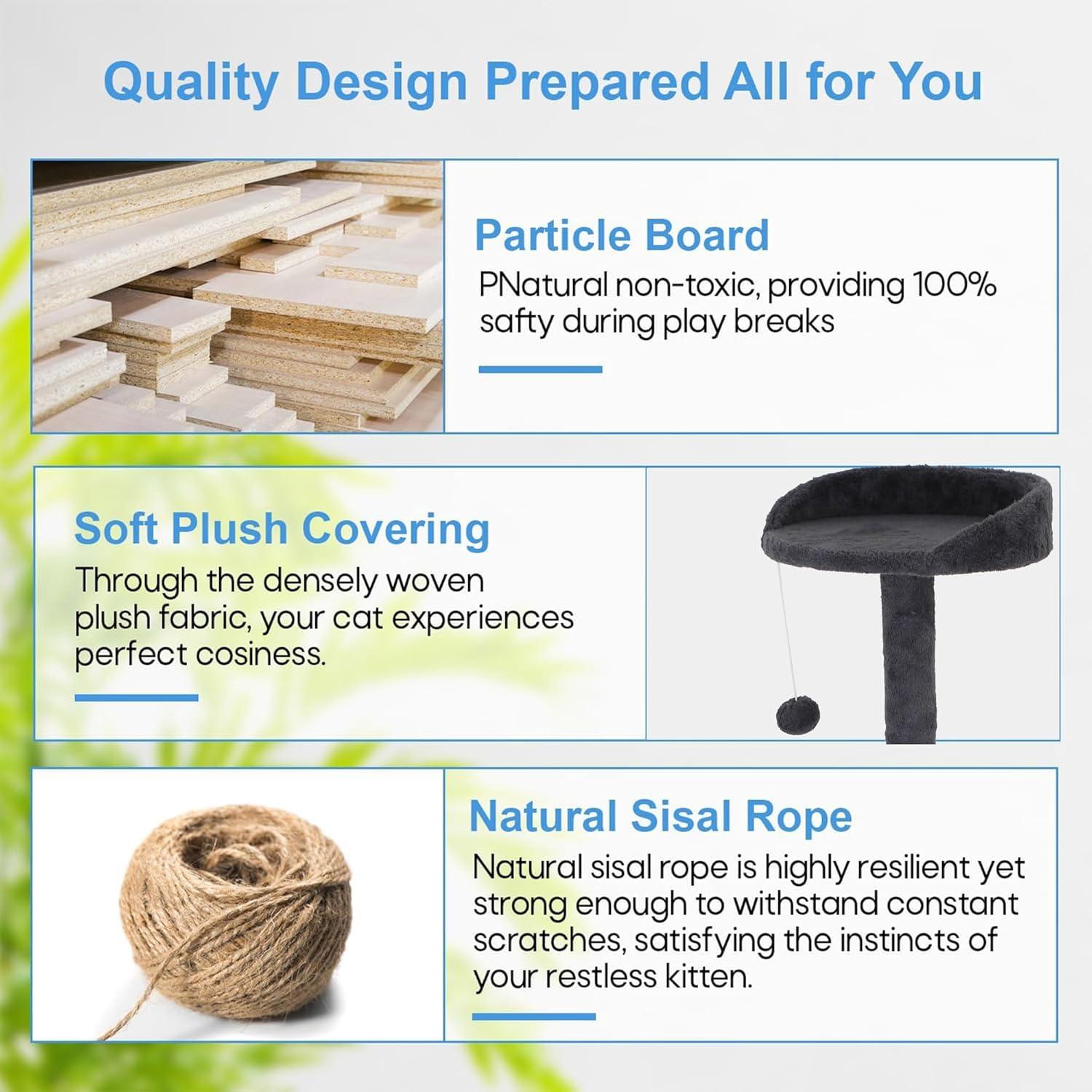🐱 【Simple assembly】We understand that convenience is important to pet owners, which is why we made our cat tree simple to assemble in a matter of minutes. You can quickly provide your kitties a stimulating environment by following the simple setup instructions and using the available tools. Please feel free to contact us with any questions you may have about our cat tree, and we will respond to you within a day!