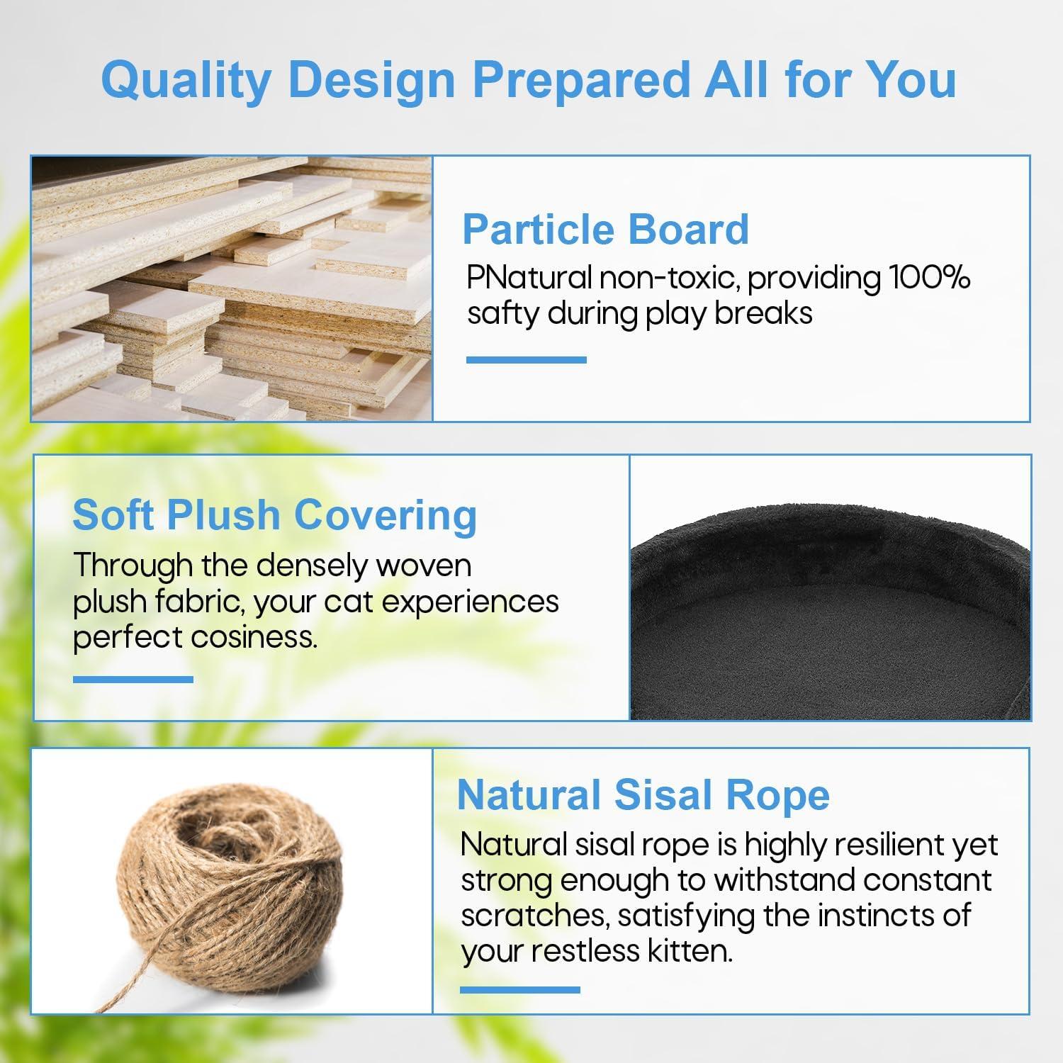 🐱 【Posts for Scratching Covered in Sisal 】These are scratching surfaces that are integrated into the framework. Cats love to bury their claws in sisal because it's a sturdy substance with a coarse texture. Our cat tree promotes healthy scratching habits and helps discourage cats from damaging furniture by offering dedicated spaces for them to scratch.