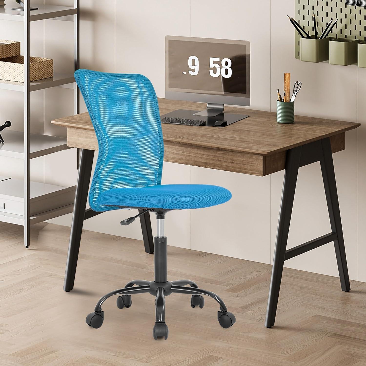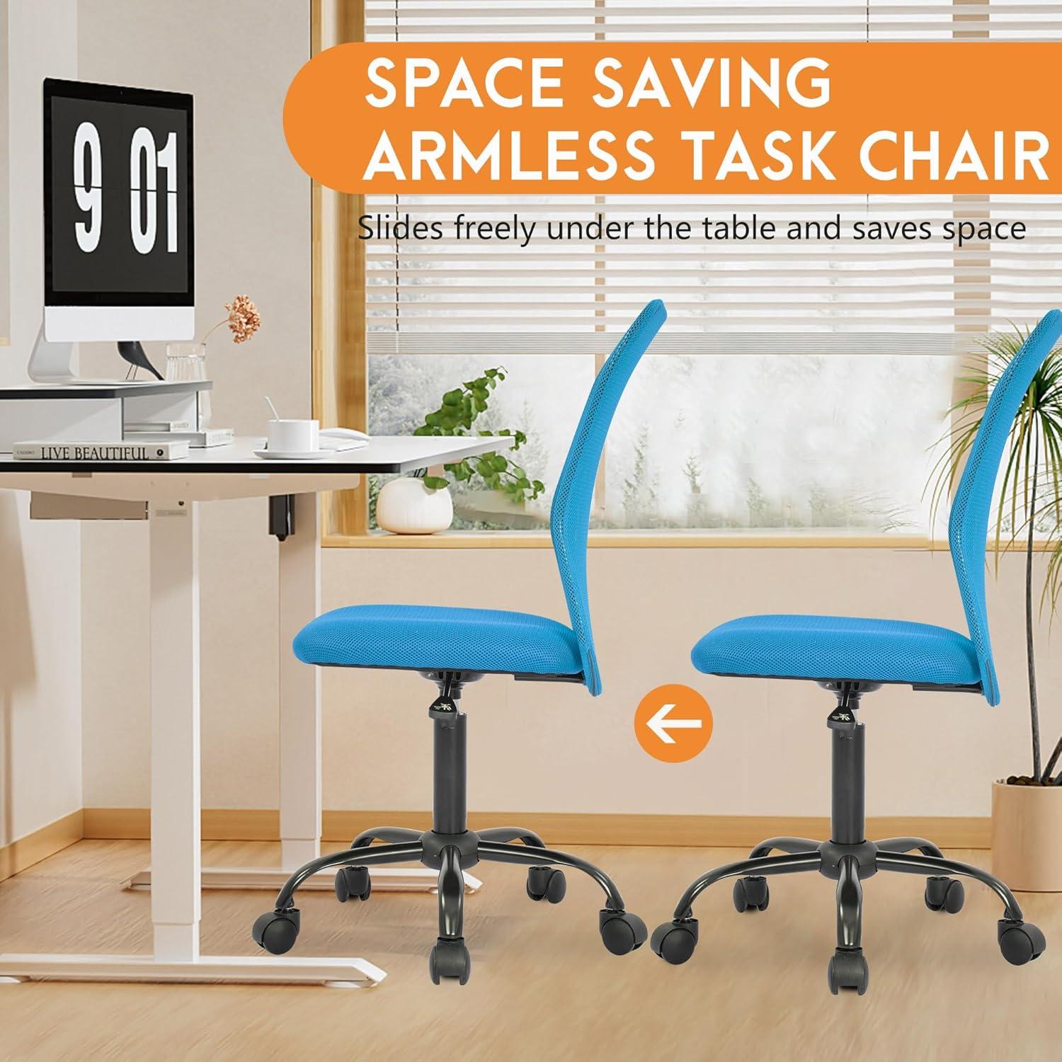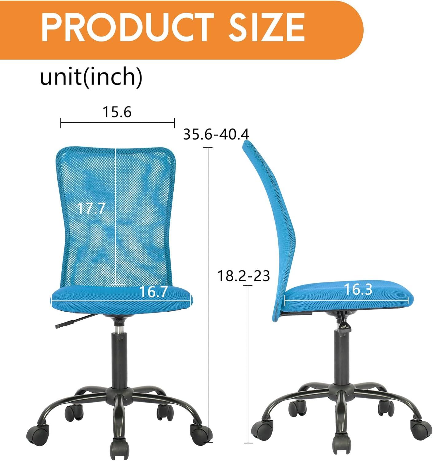 FDW Home Office Chair Mid Back Mesh Desk Chair Armless Computer Ergonomic Task Rolling Swivel Chair Back Support Adjustable Modern with Lumbar Support,Blue(Blue)