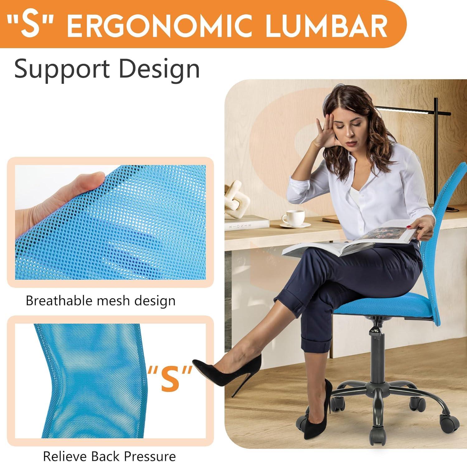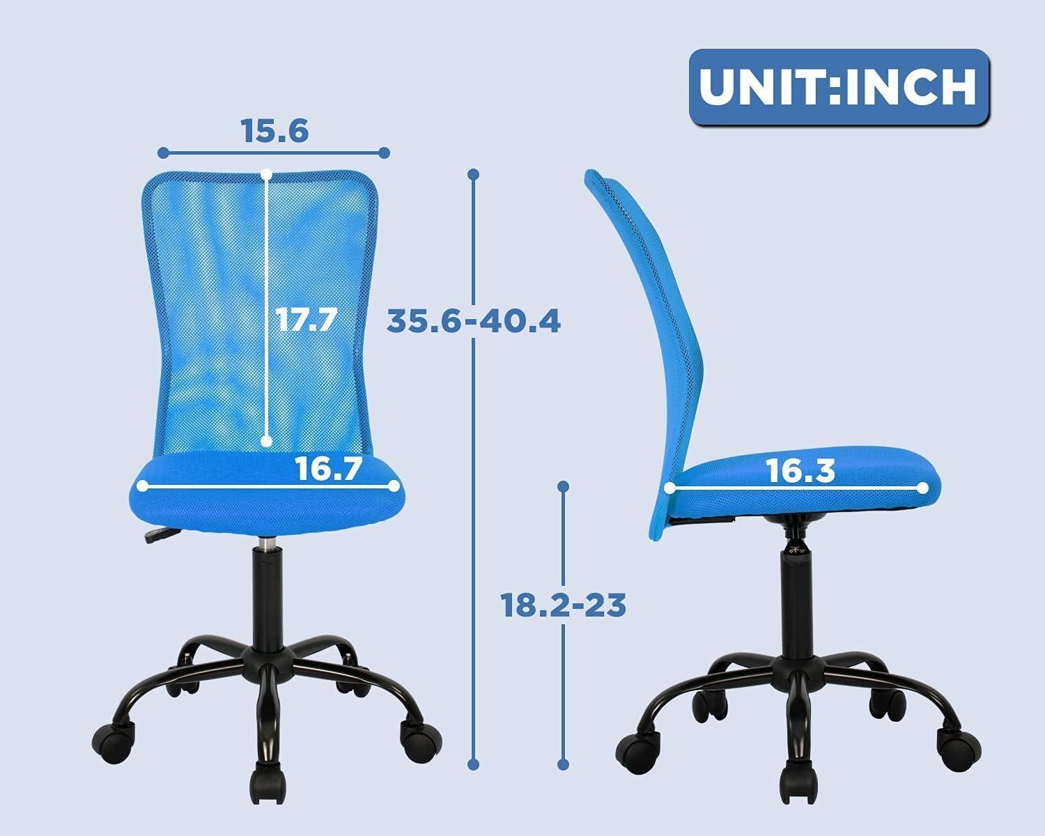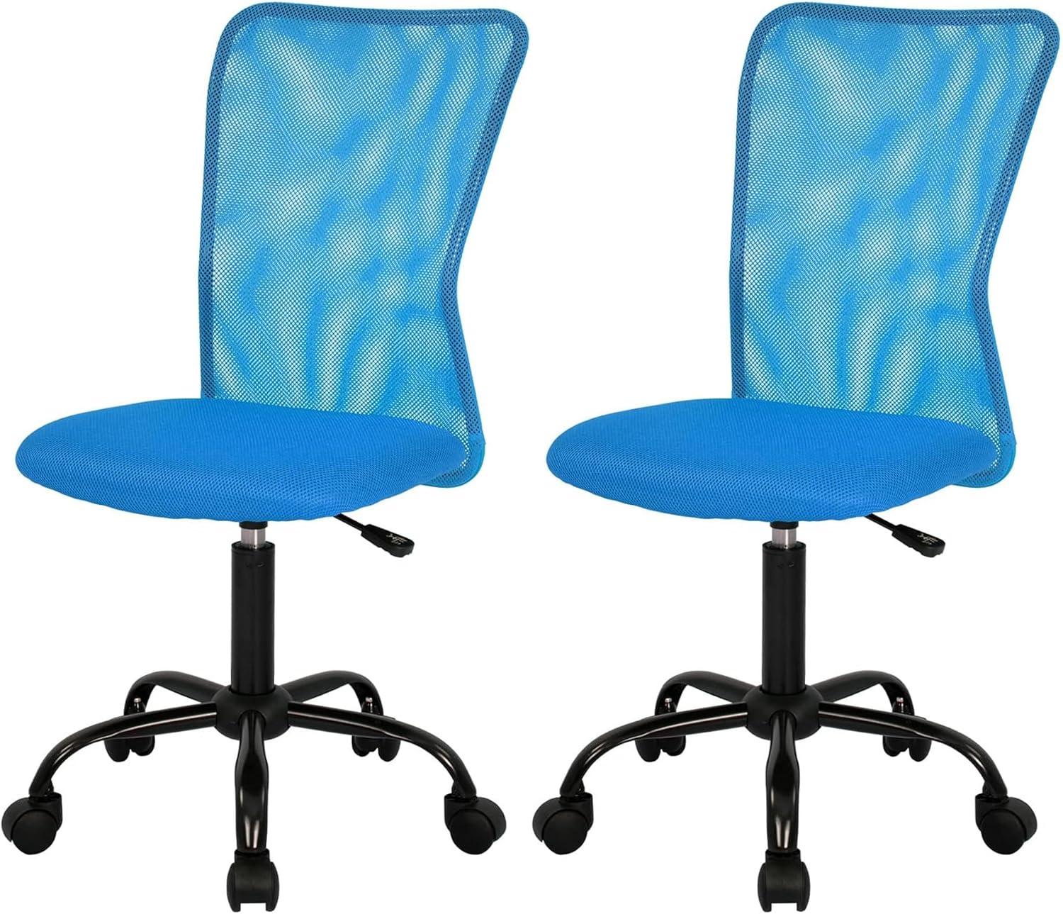 FDW Home Office Chair Mid Back Mesh Desk Chair Armless Computer Ergonomic Task Rolling Swivel Chair Back Support Adjustable Modern with Lumbar Support,Blue(Blue)