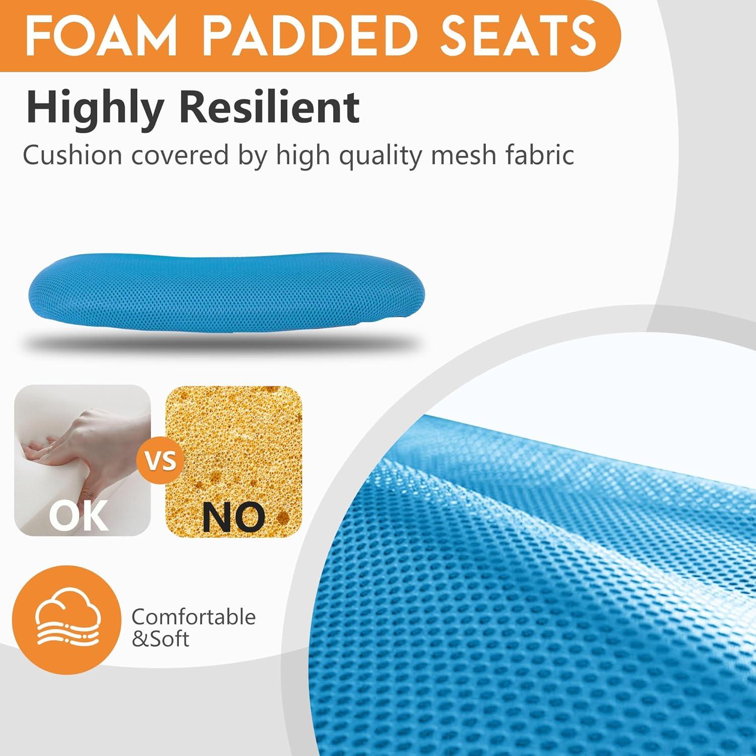 🎁【BREATHABLE SEAT】 – The padded mesh seat is thick and resilient. Made from premium quality high density thick sponge and a breathable mesh clothe, preventing body heat and keeping your hips and legs cool and sweat-free.