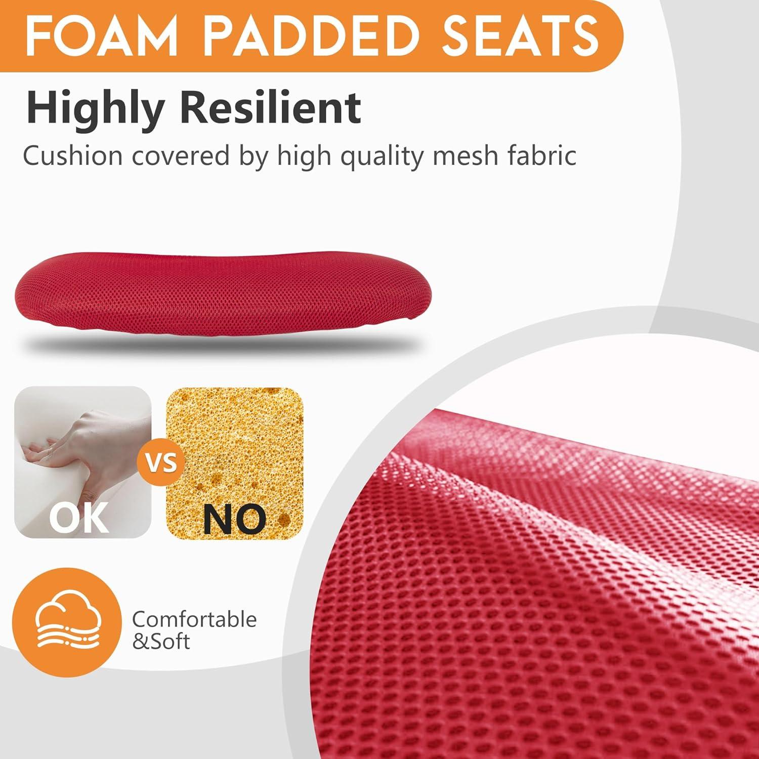 🎁【BREATHABLE SEAT】 – The padded mesh seat is thick and resilient. Made from premium quality high density thick sponge and a breathable mesh clothe, preventing body heat and keeping your hips and legs cool and sweat-free.