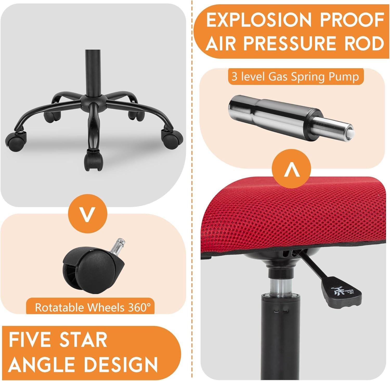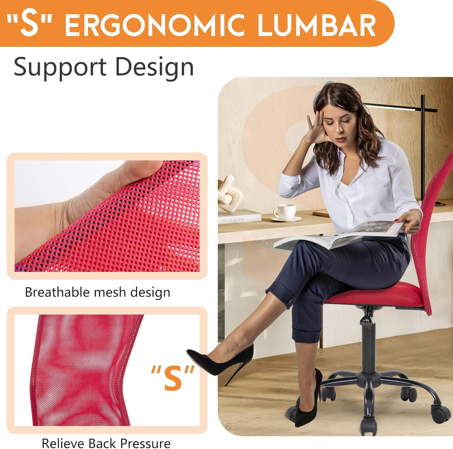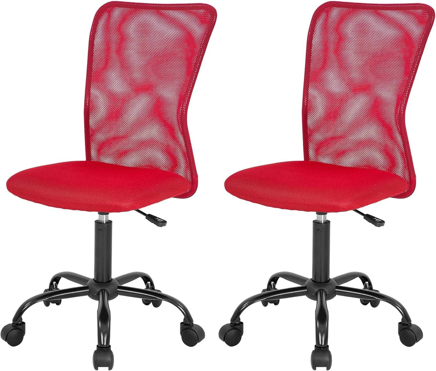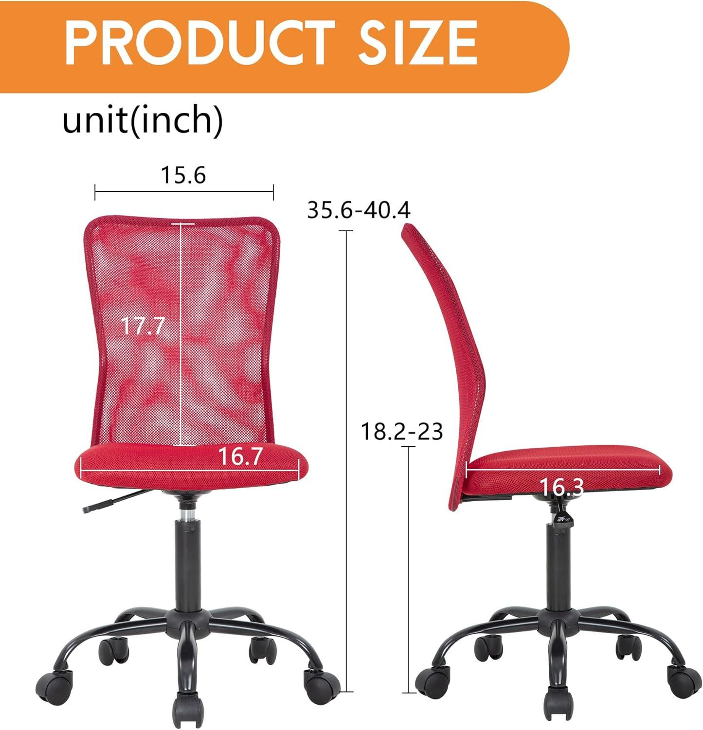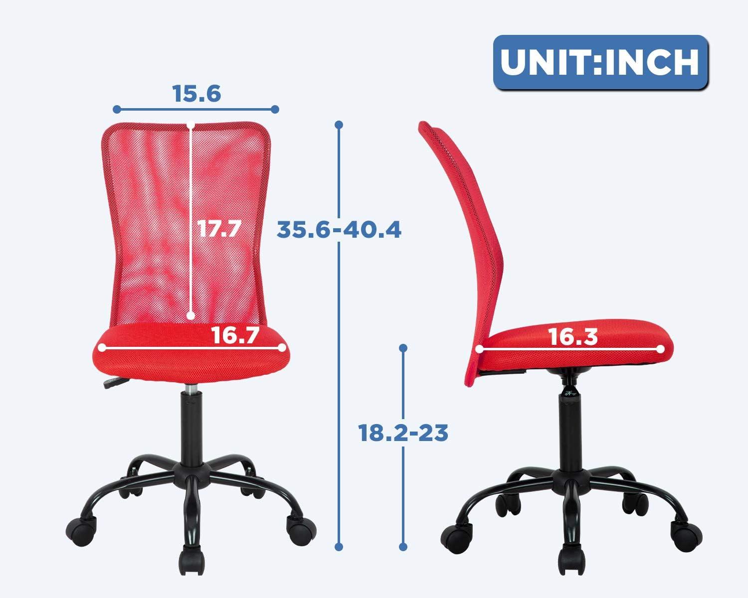 FDW Home Office Chair Mid Back Mesh Desk Chair Armless Computer Ergonomic Task Rolling Swivel Chair Back Support Adjustable Modern with Lumbar Support,Blue(Red)