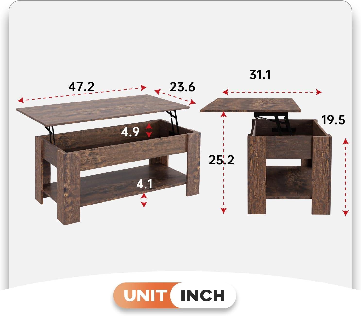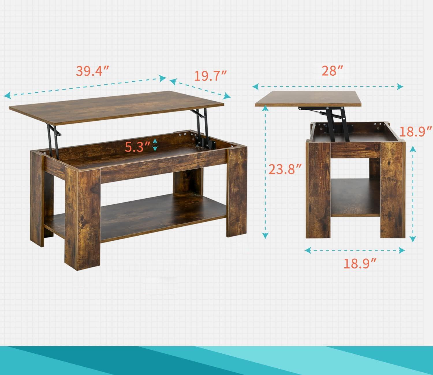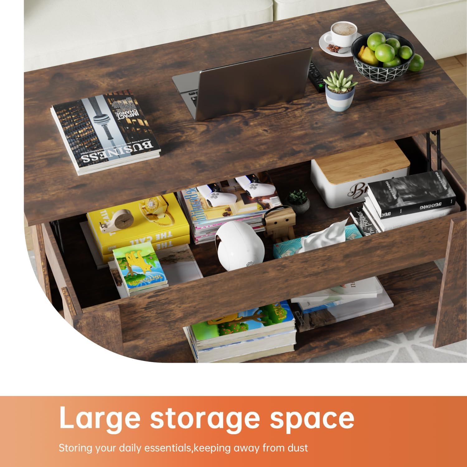 FDW Lift Top Coffee Table with Hidden Compartment and Storage Shelf Wooden Lift Tabletop for Home Living Room Reception Room Office,39.4",Brown(Brown)
