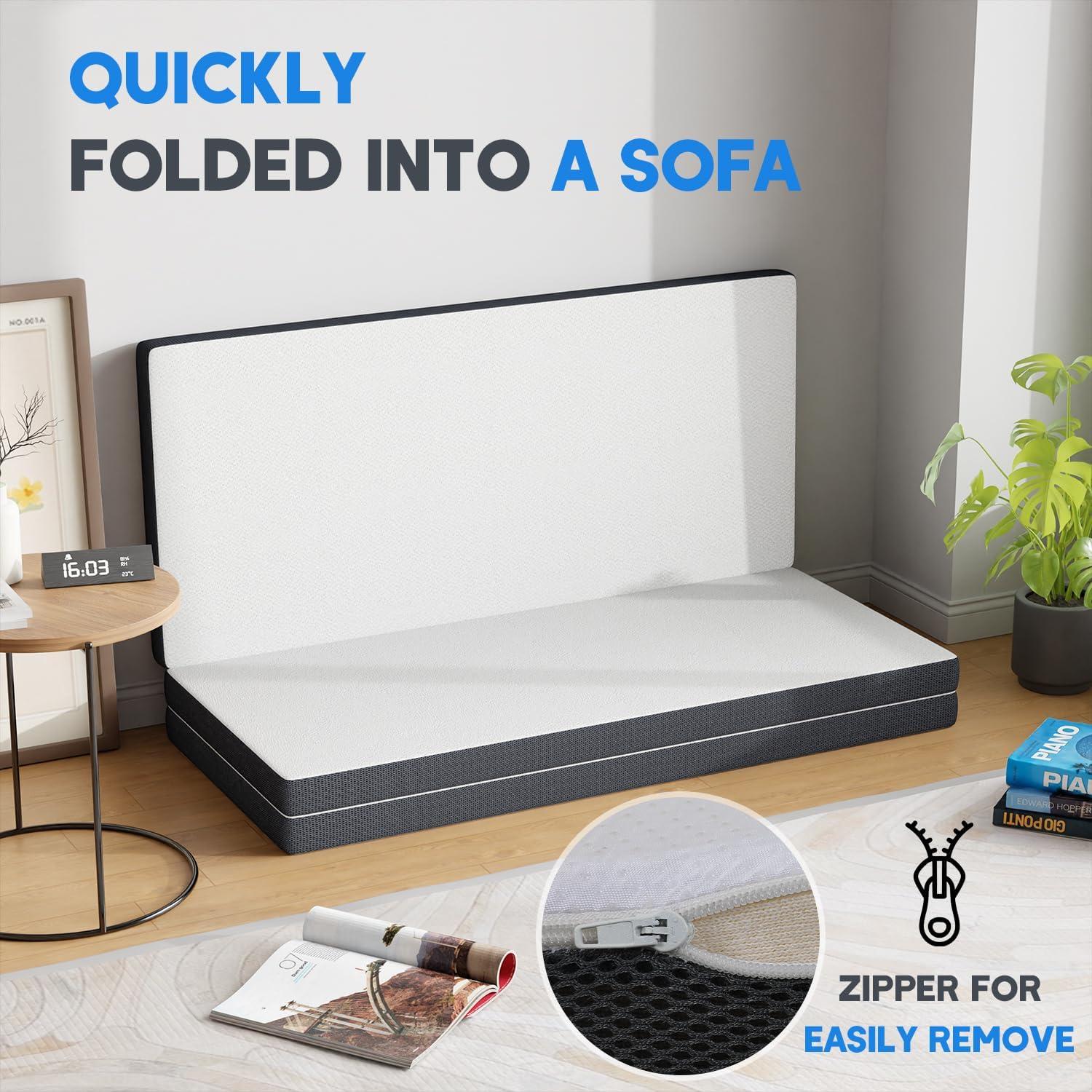 Convenient storage and easy cleaning: The foldable portable mattress is composed of three independent foam pieces, which is easy to carry. You can unfold and fold the mattress in a few seconds, and store it in a corner to save space when not in use. The mattress cover can be easily removed for cleaning, saving you time and energy.
