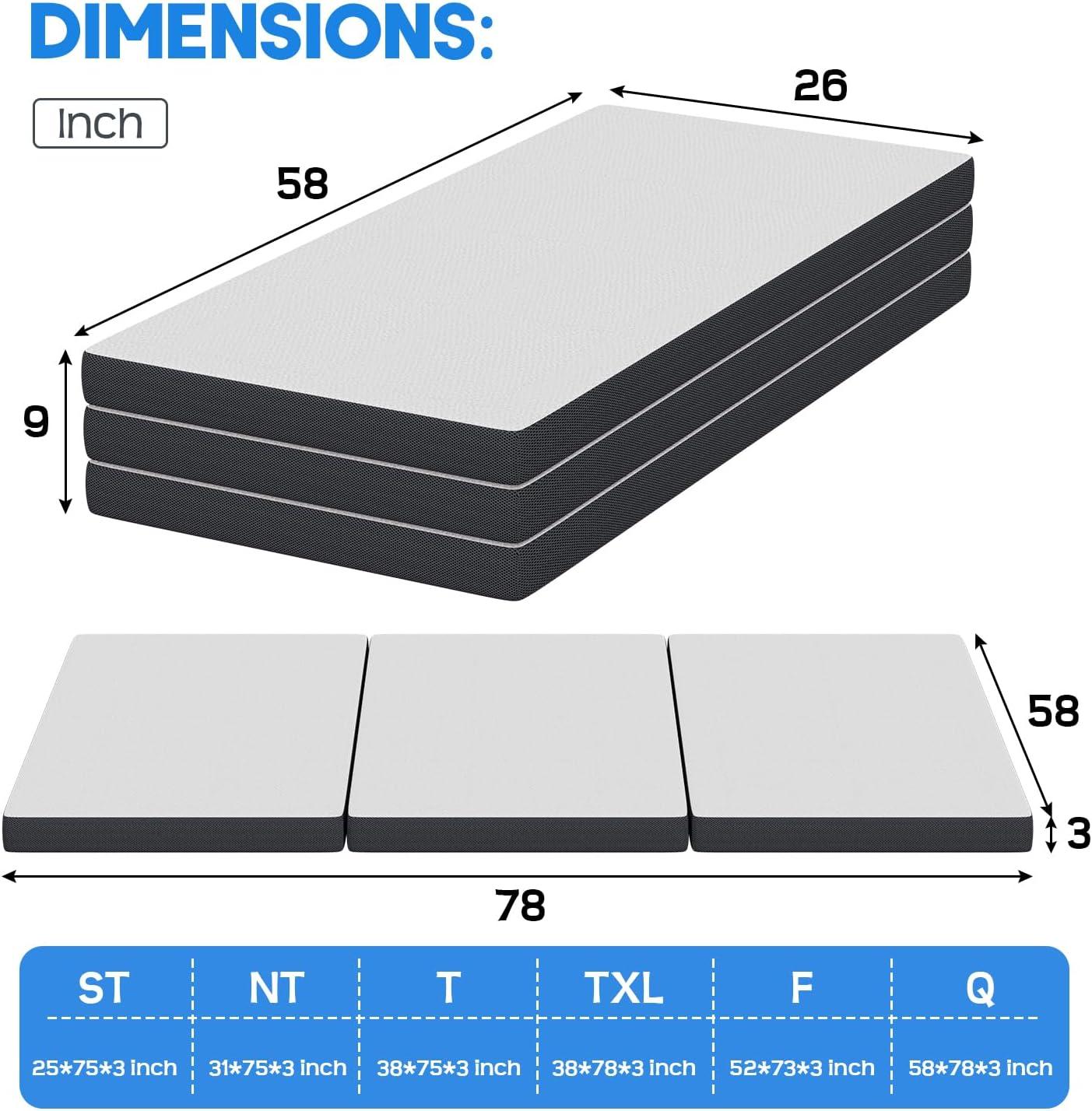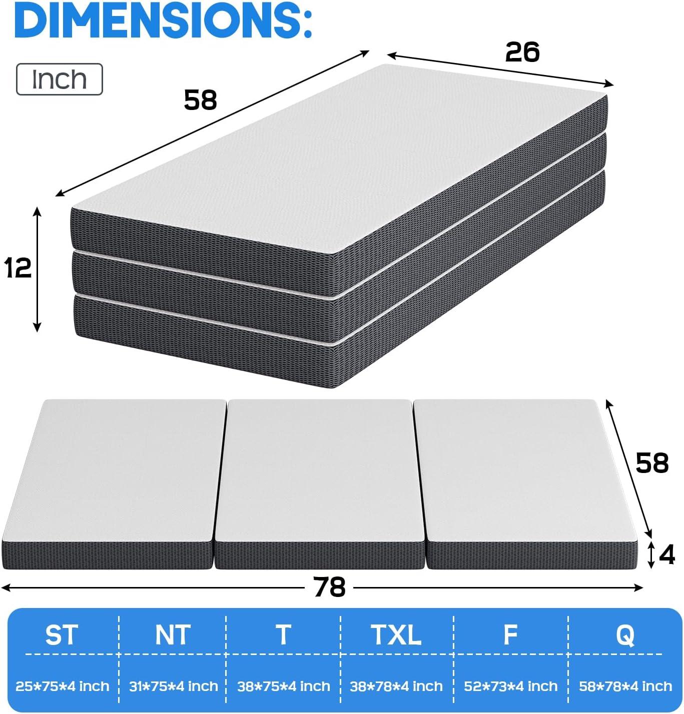 High quality Material:FDW's three fold mattress provides high-quality elasticity, providing comfortable support for your body. The gel memory foam keeps you cool all night long, reduces body pressure, and provides additional comfort and ergonomic support with a medium hardness touch. High quality materials and high-density foam ensure its service life. This mattress combines comfort, durability, and convenience, making it the ideal choice for anyone.
