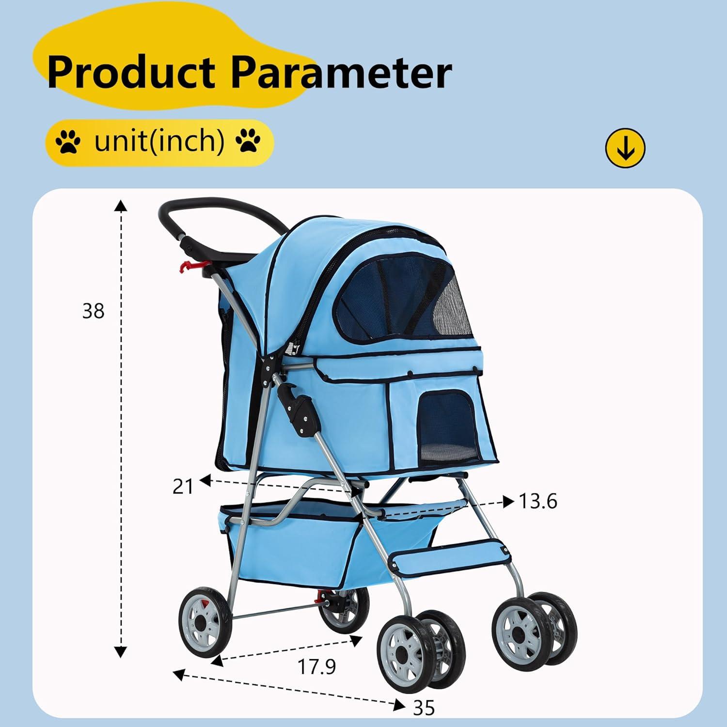 🐶【Simple to Put Together & Fold】 Assemble your pet stroller in minutes with the included manual. Effortlessly fold it for convenient handling and storage. Our pet stroller itself weighs 10 pounds, but has a load-bearing capacity of 33 pounds.The lightweight design ensures a hassle-free experience, perfect for delightful strolls with your feline friend. Whether it's a cozy cat chair or a jogging companion for your dog, our versatile pet stroller has you covered.
