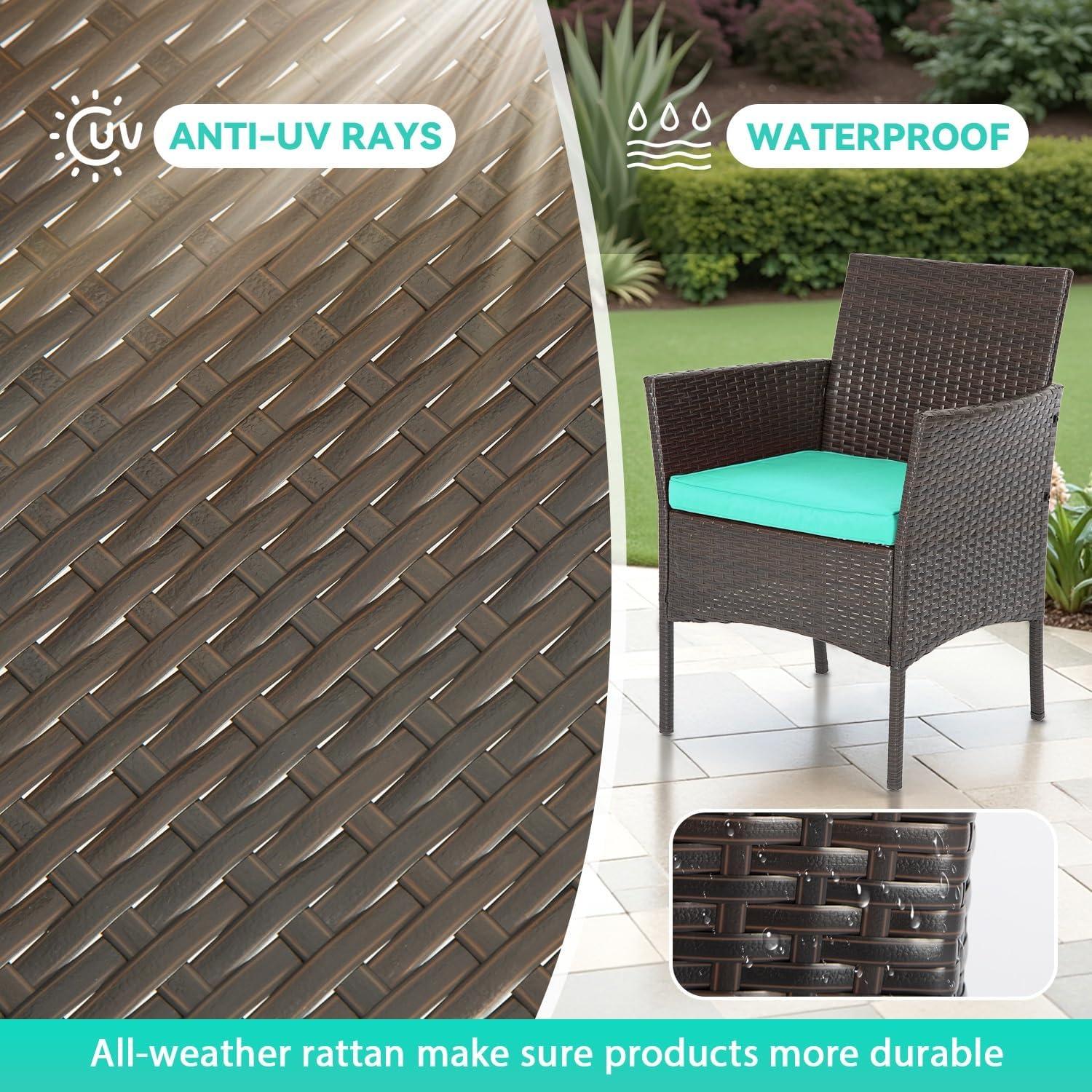 ❤ High Quality : This patio furniture set is made with a powder-coated steel frame and all-weather PE rattan wicker for a comfortable experience.The wicker of the Outdoor furniture set is sturdy but also very light. Each chair can hold up to 200 lbs weight capacity.